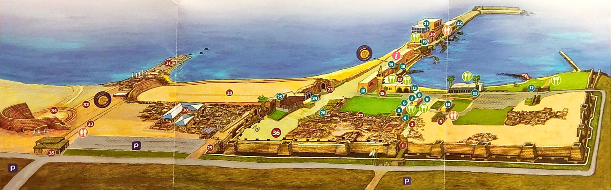 Kawałek dalej na południe, na cyplu odnajdziemy miejsce w którym znajdował się Pałac w którym rezydował sam Poncjusz Piłat (świadczy o tym odnaleziona w ruinach inskrypcja)
