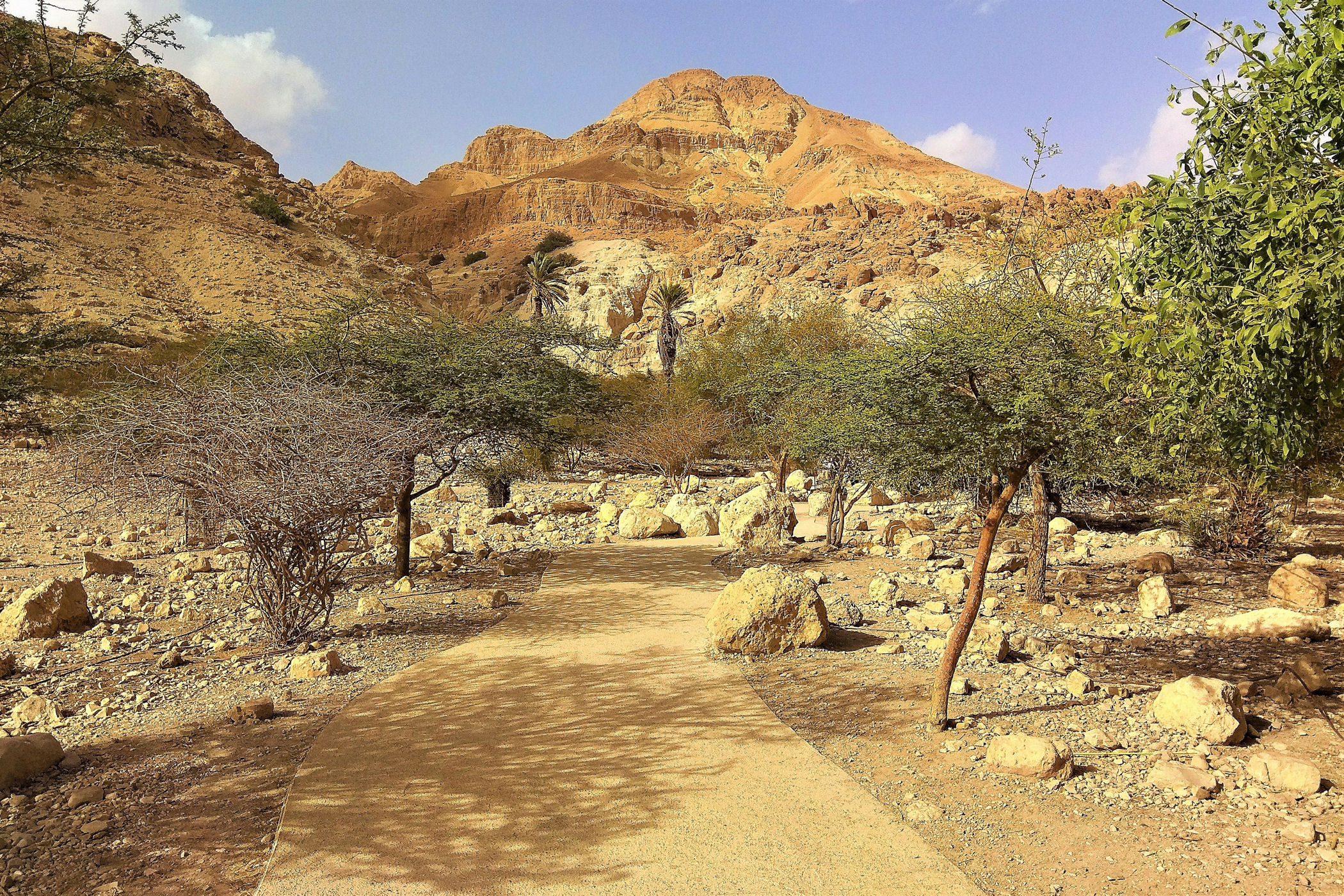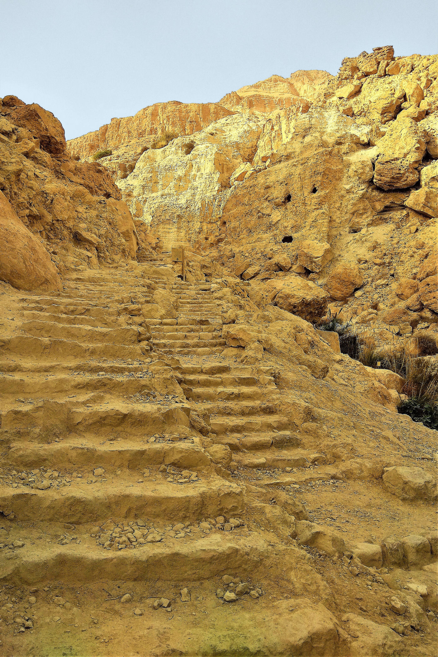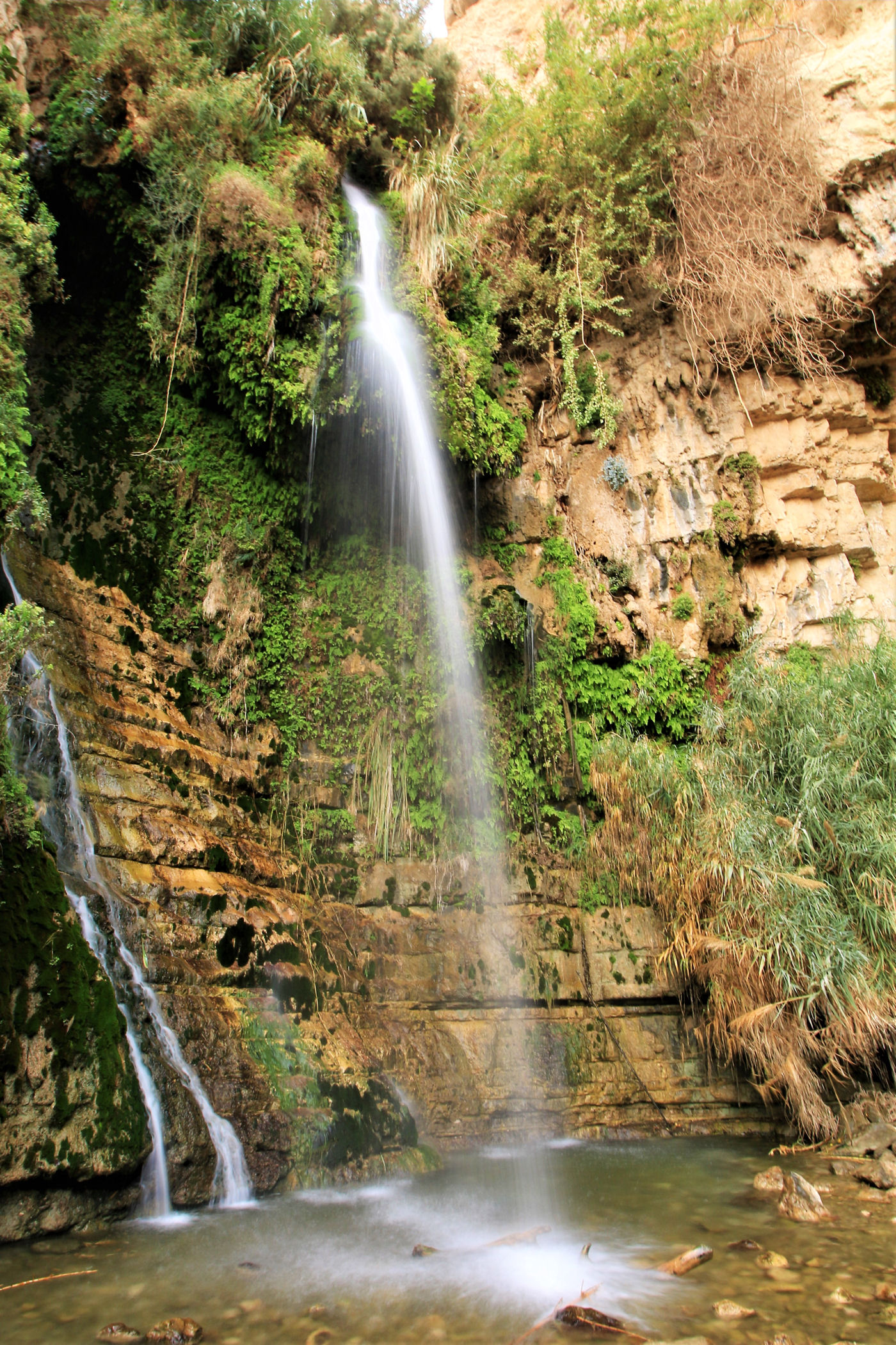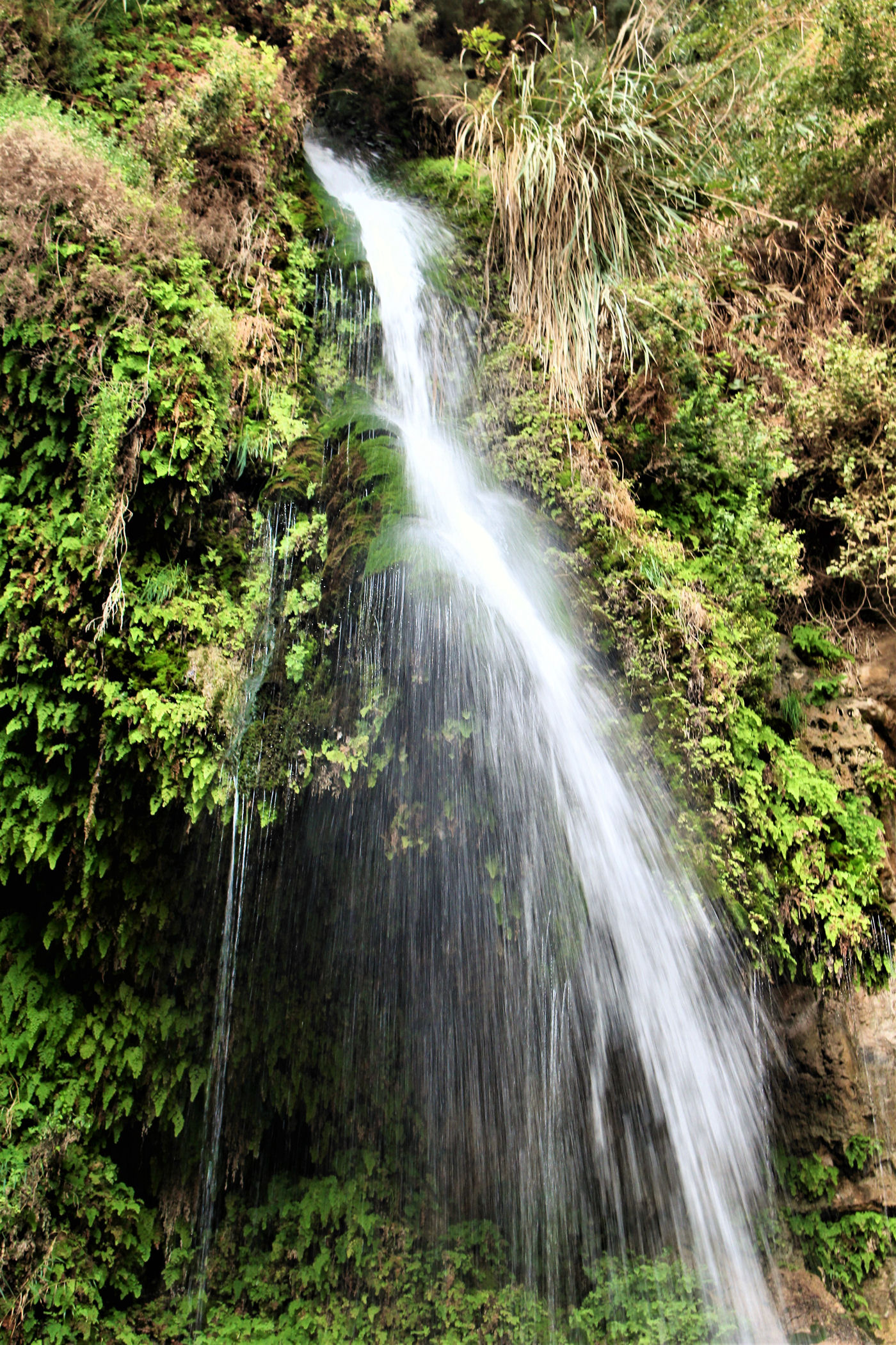 Najkrótszy i najpopularniejszy szlak prowadzi do Kanionu Wadi David , którym zawędrujemy do Wodospadu Dawida. Górna część kanionu dostępna jest dzięki stromej ścieżce prowadzącej wysoko ponad urwiskiem. Do górnej części wodospadu prowadzą metalowe klamry zamocowane na przewieszonej skałce . Niestety z powodów , które opisałam poniżej ( pod wpisem o faunie ) nie wpuszczono nas już na ten szlak.