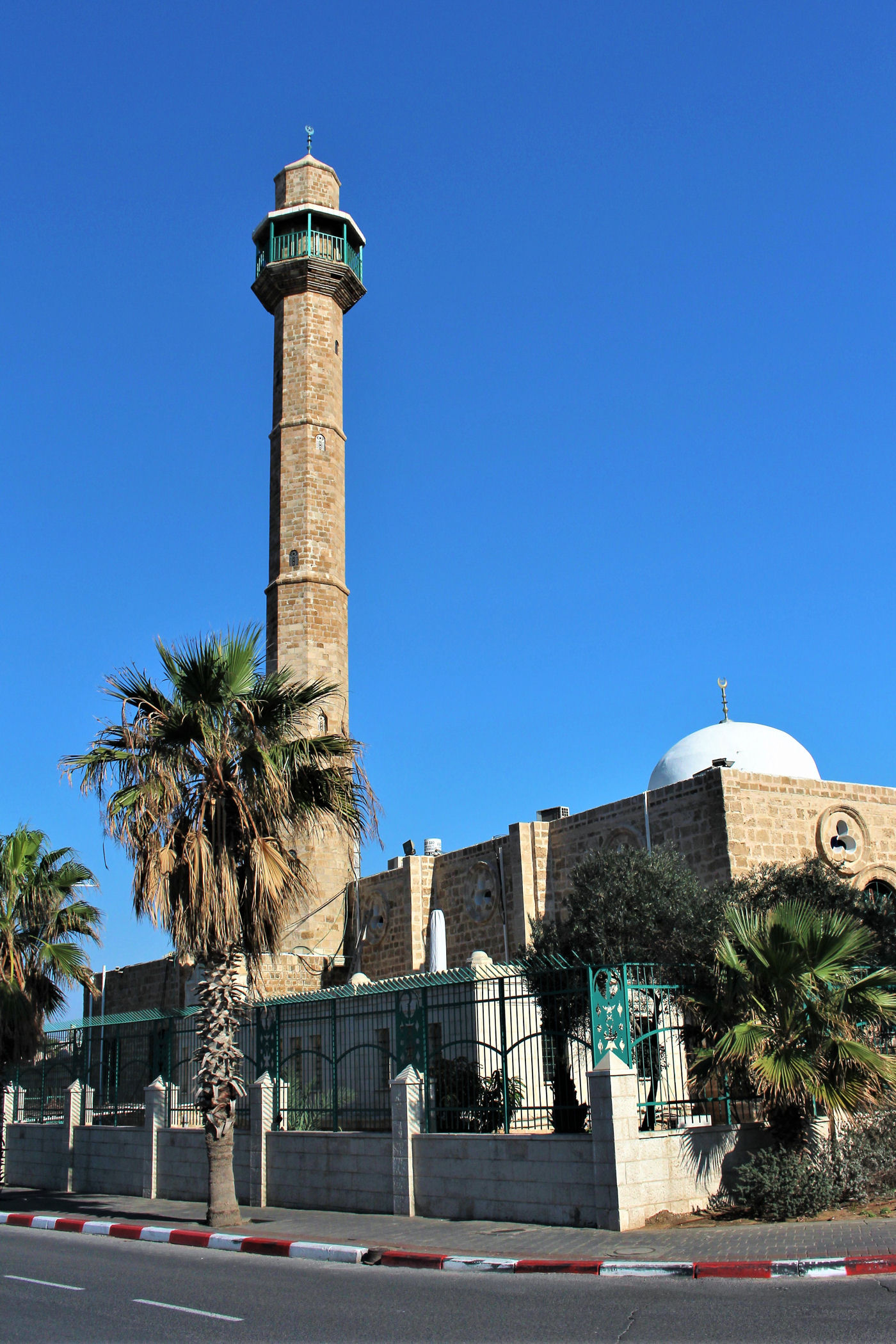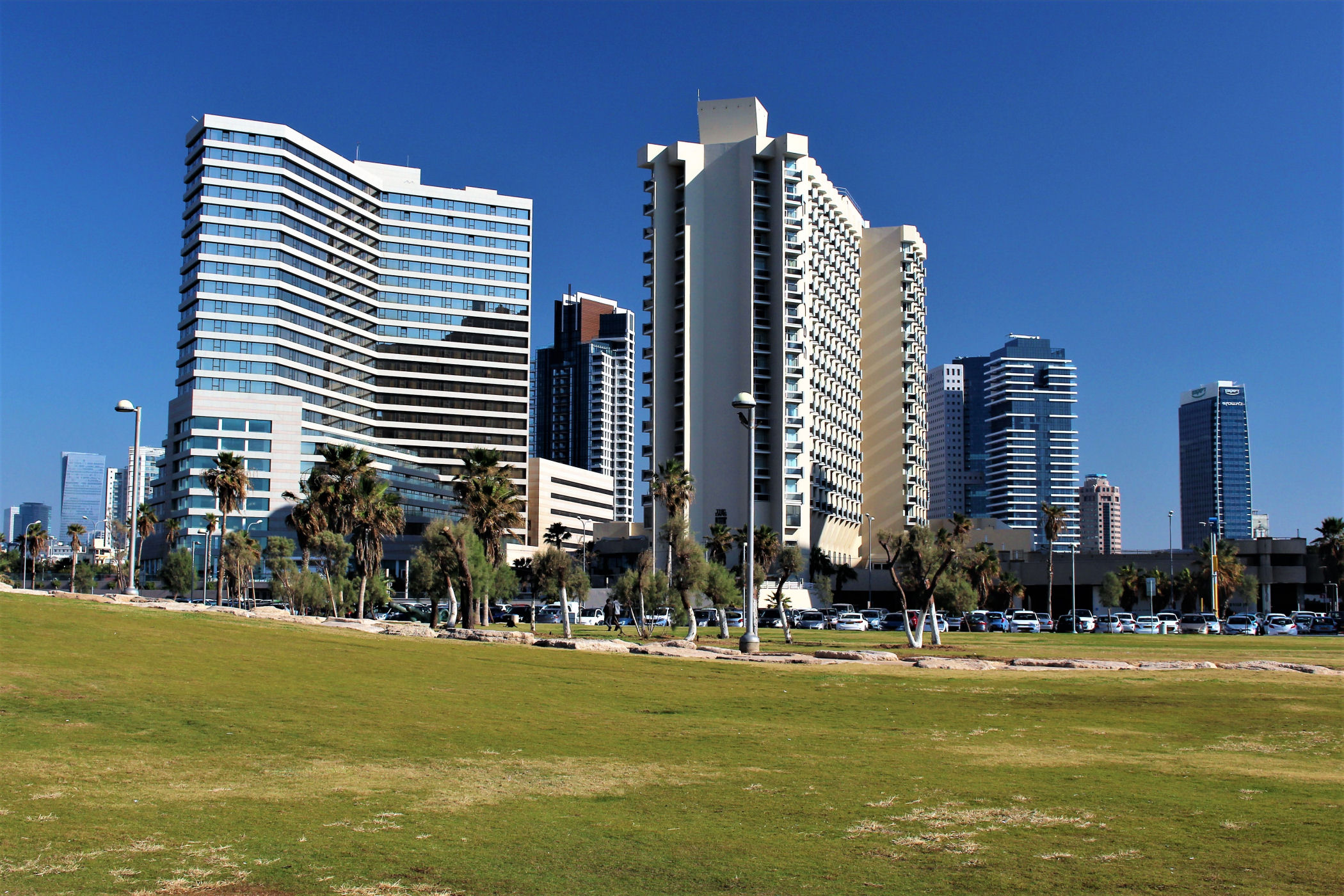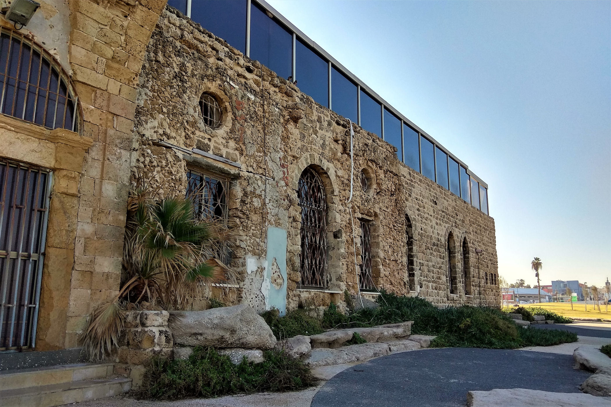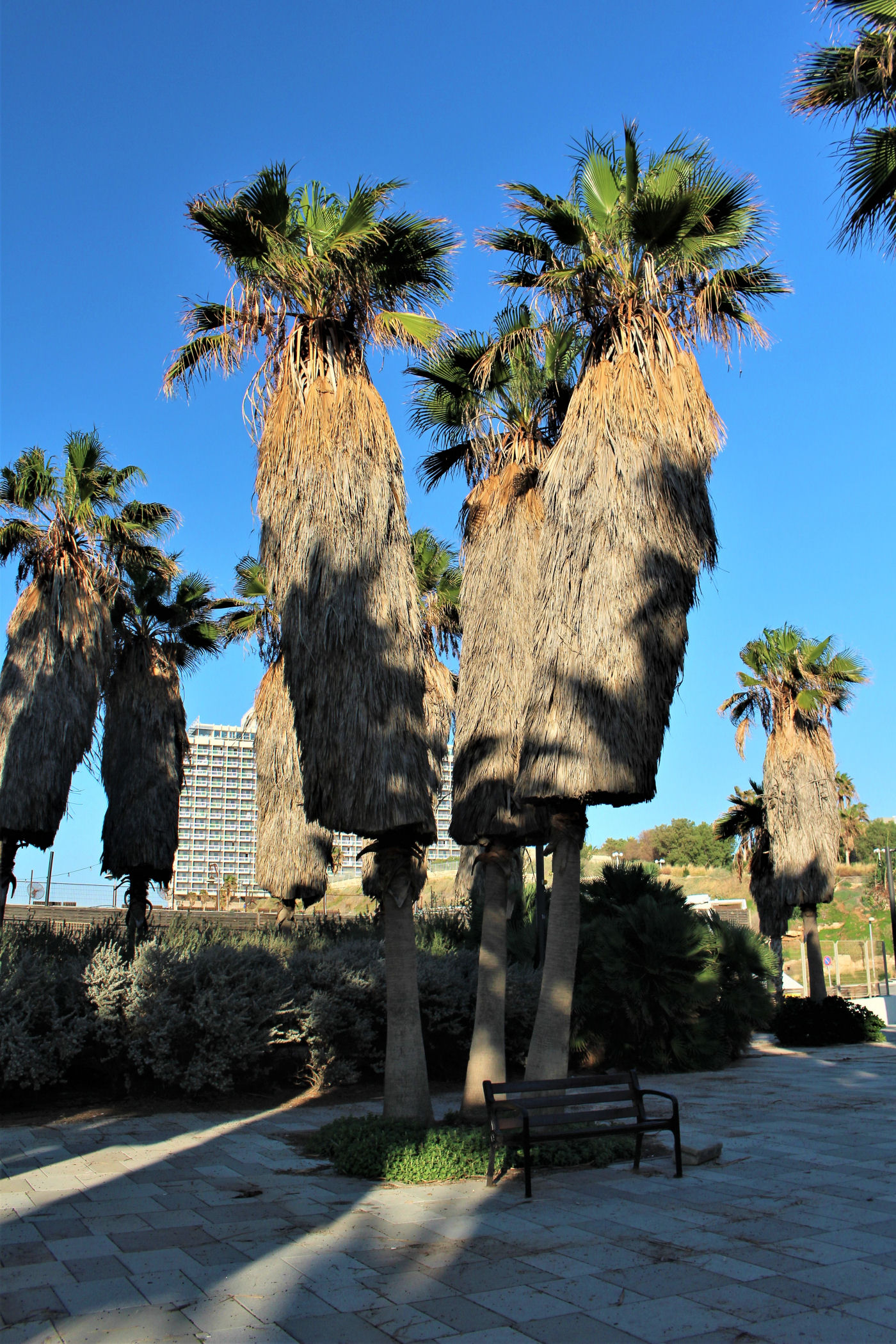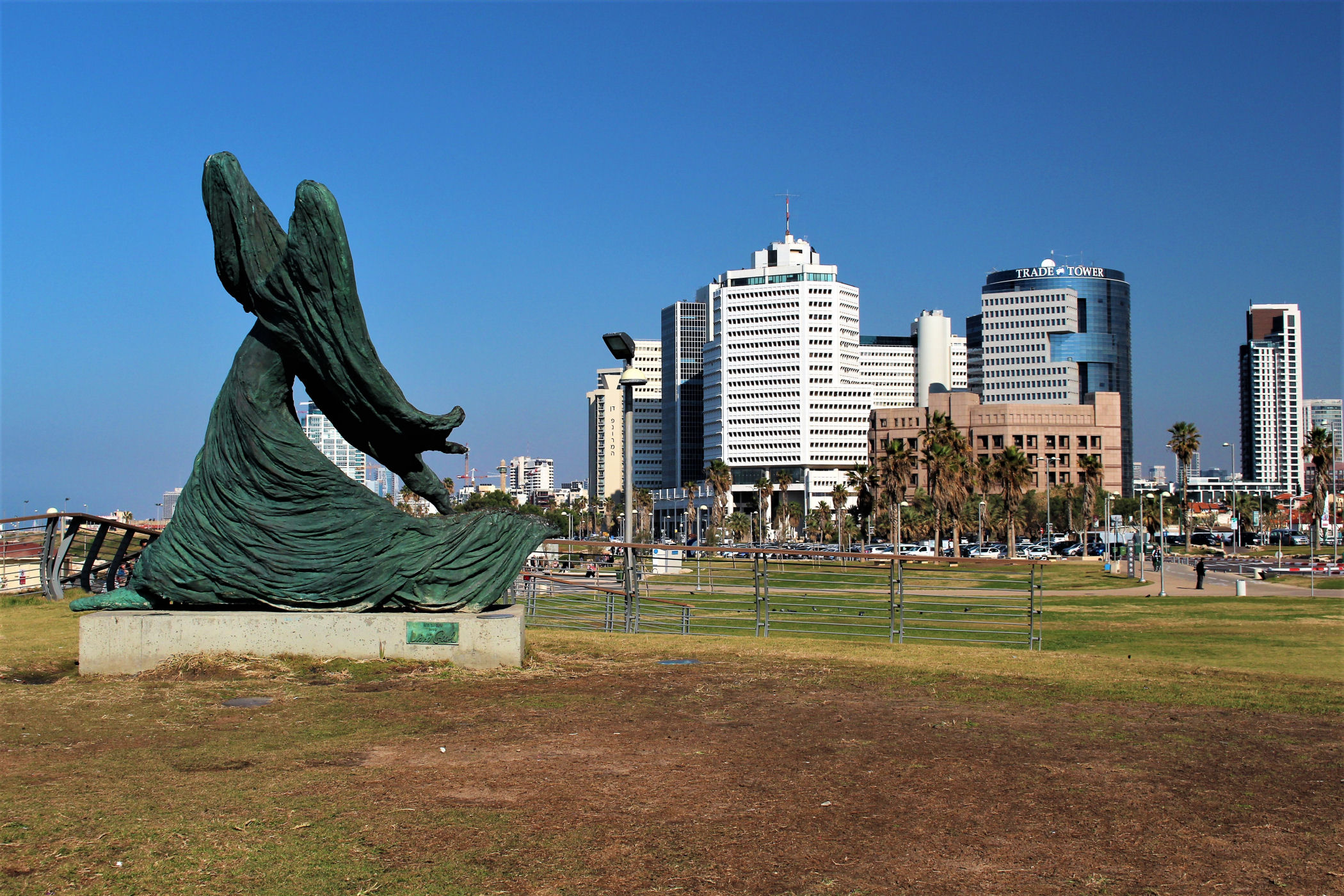 W okolicy nieistniejącego już delfinarium kończą się plaże, a zaczyna park z piękną promenadą wzdłuż wybrzeża. Przez kolejne kilkaset metrów idziemy wzdłuż porośniętego trawami terenu z nielicznymi palmami drzewami tamaryszkowymi we wschodniej części parku. Wcześniej znajdowało się w tym miejscu arabskie osiedle Menaszijja, czyli niegdysiejsza północna część Jafy.