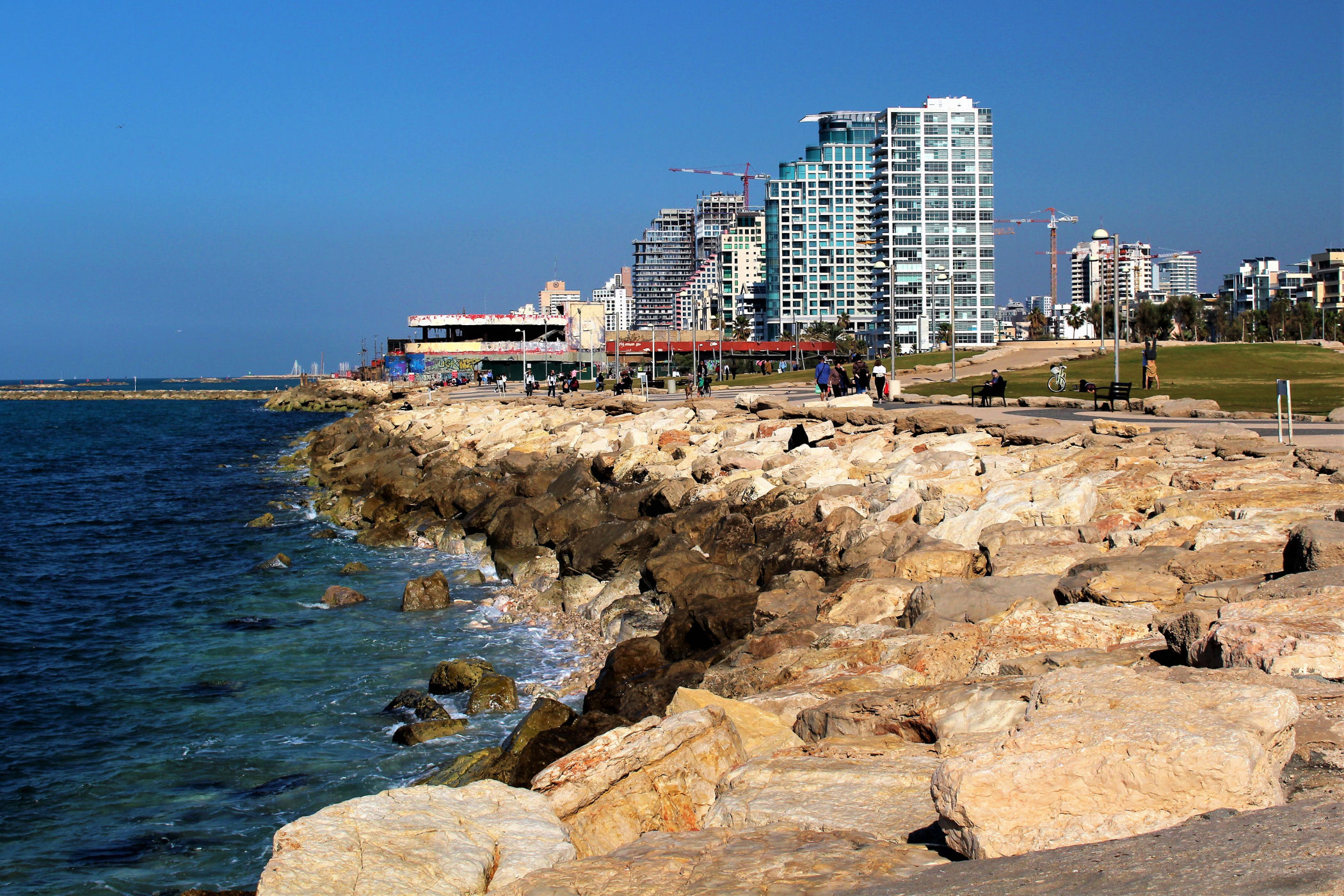 Wybrzeże Tel Awiwu ciągnie się wzdłuż całego miasta na długości prawie 10 kilometrów. Piękne promenady, plaże, porty, czy parki, to wszystko odnajdziemy wędrując wzdłuż wybrzeża tego pięknego, nowoczesnego miasta.