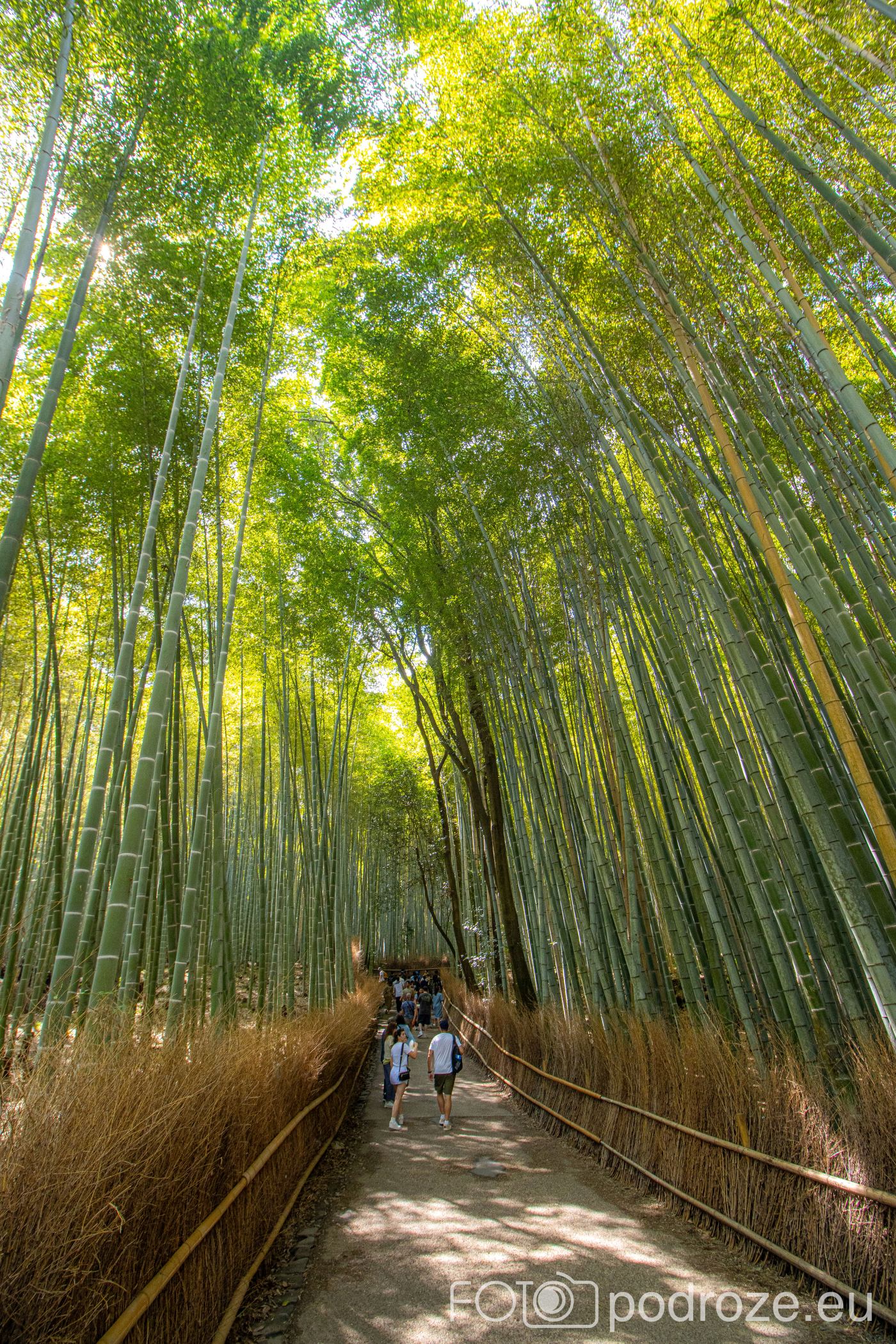 Przez słynny las bambusowy prowadzi jedna główna ścieżka, która wyznacza trasę spaceru dla odwiedzających. Dzięki temu ruch turystów jest uporządkowany, a sama natura może pozostawać nienaruszona. Wysokie bambusy rosną gęsto po obu stronach alejki, a między nimi ustawiono płotki z trzciny, które delikatnie oddzielają zwiedzających od roślin, chroniąc je przed zadeptaniem.