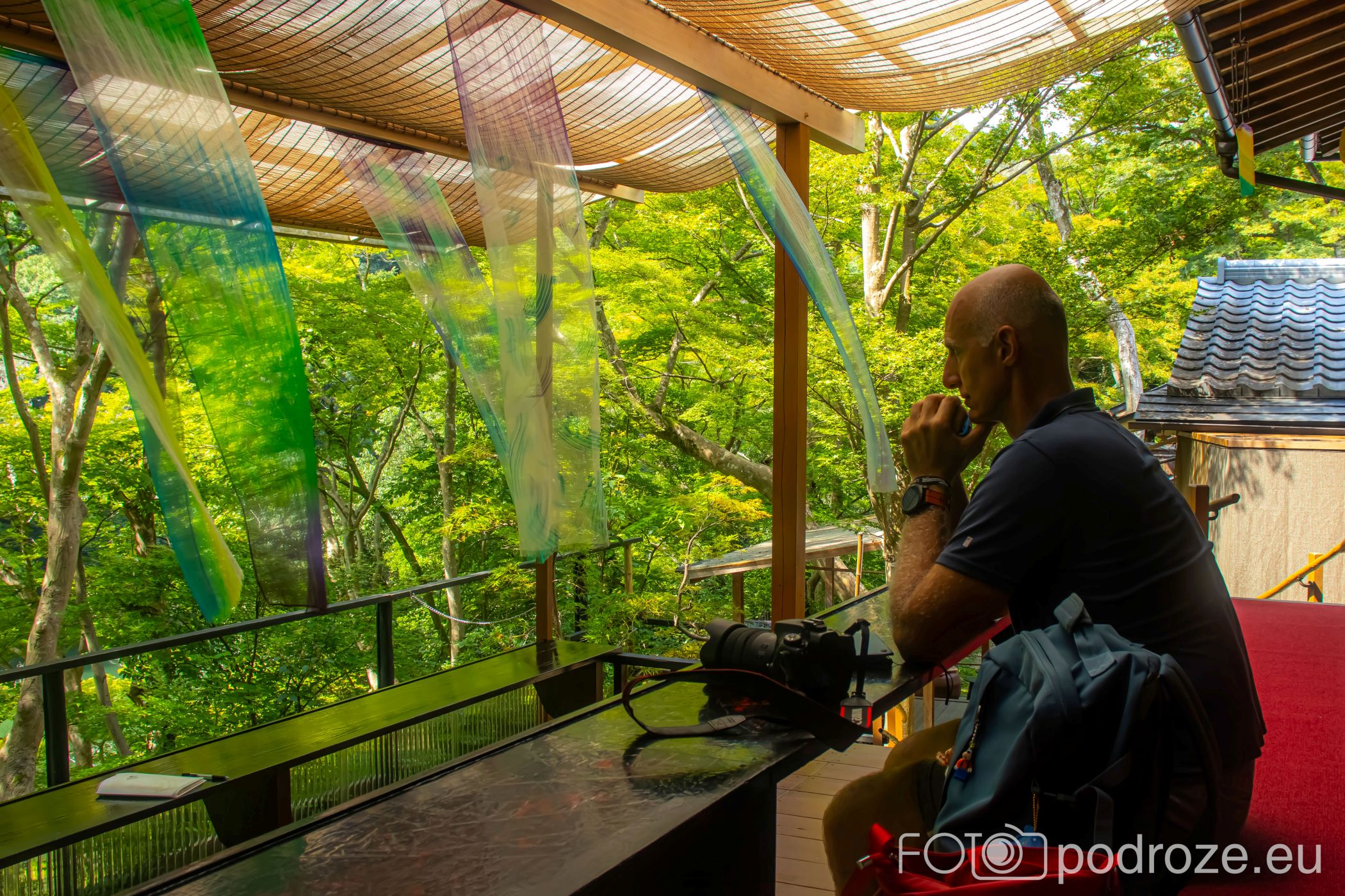 - UWAGI DODATKOWE: Przy wejściu zdejmujesz buty, wewnątrz są podłogi tatami i przestrzenie do medytacji/ciszy. Zalecana jest cisza i rozmowy (jeśli w ogóle) szeptem. Często można tu zamówić matchę lub lekkie przekąski (na tarasie lub w ogrodzie), co dodatkowo wzbogaca doświadczenie.
