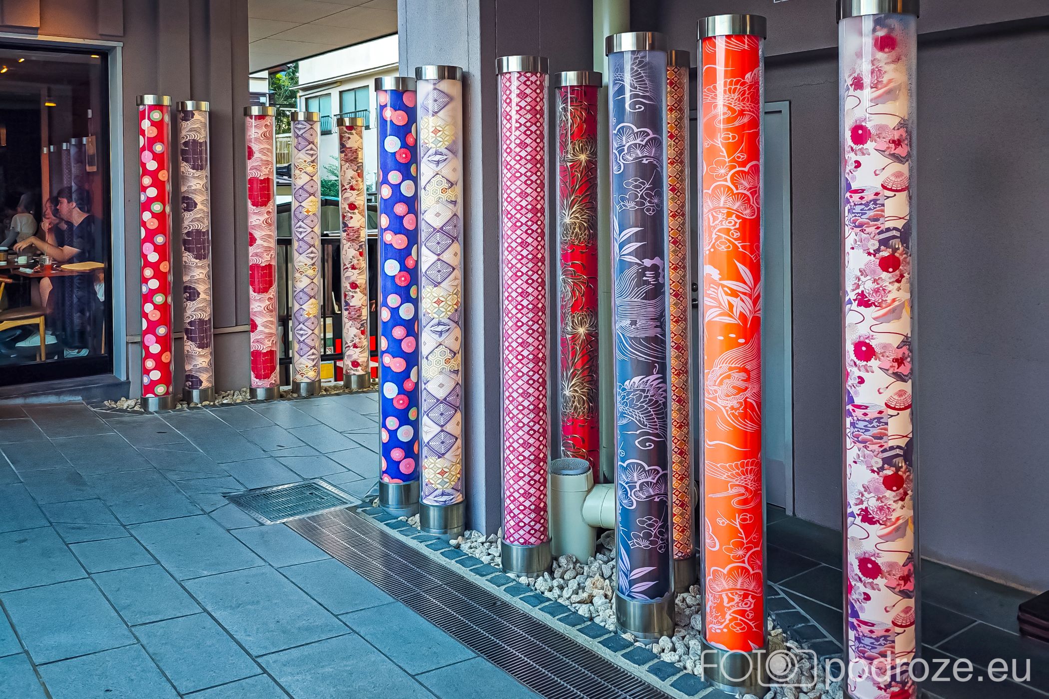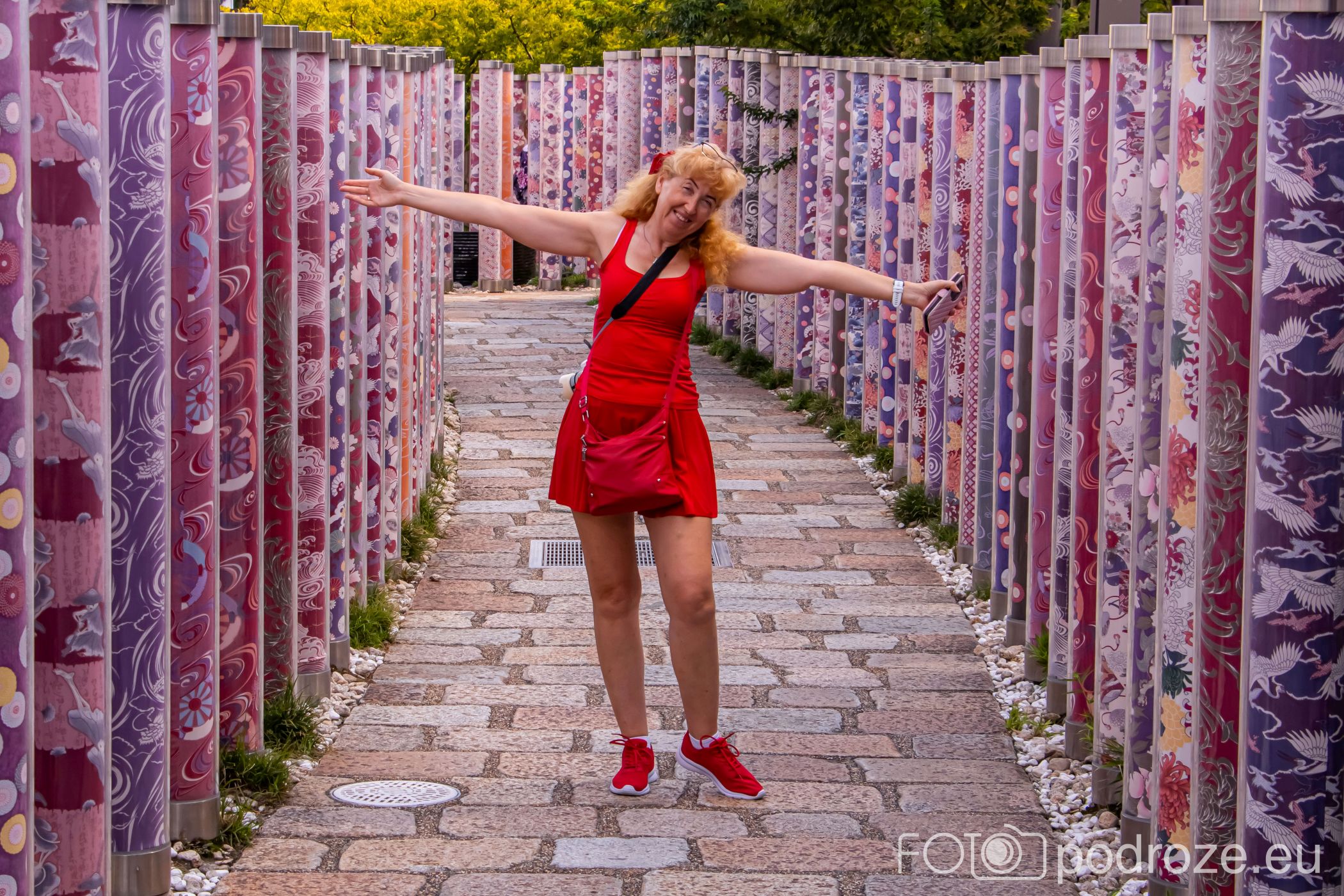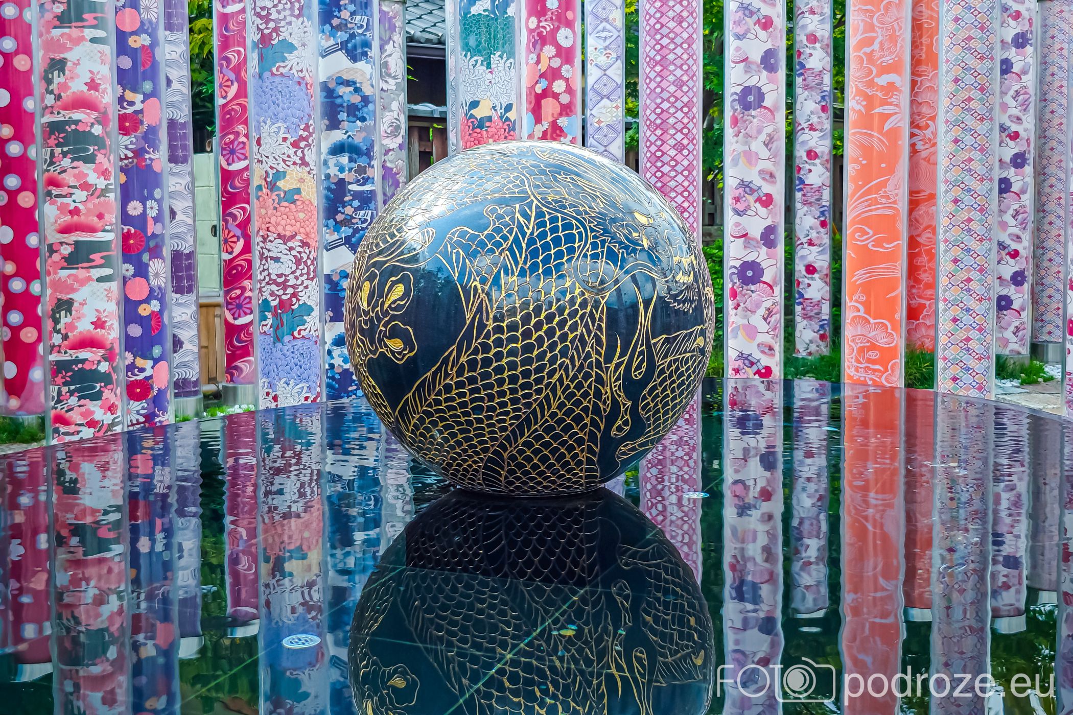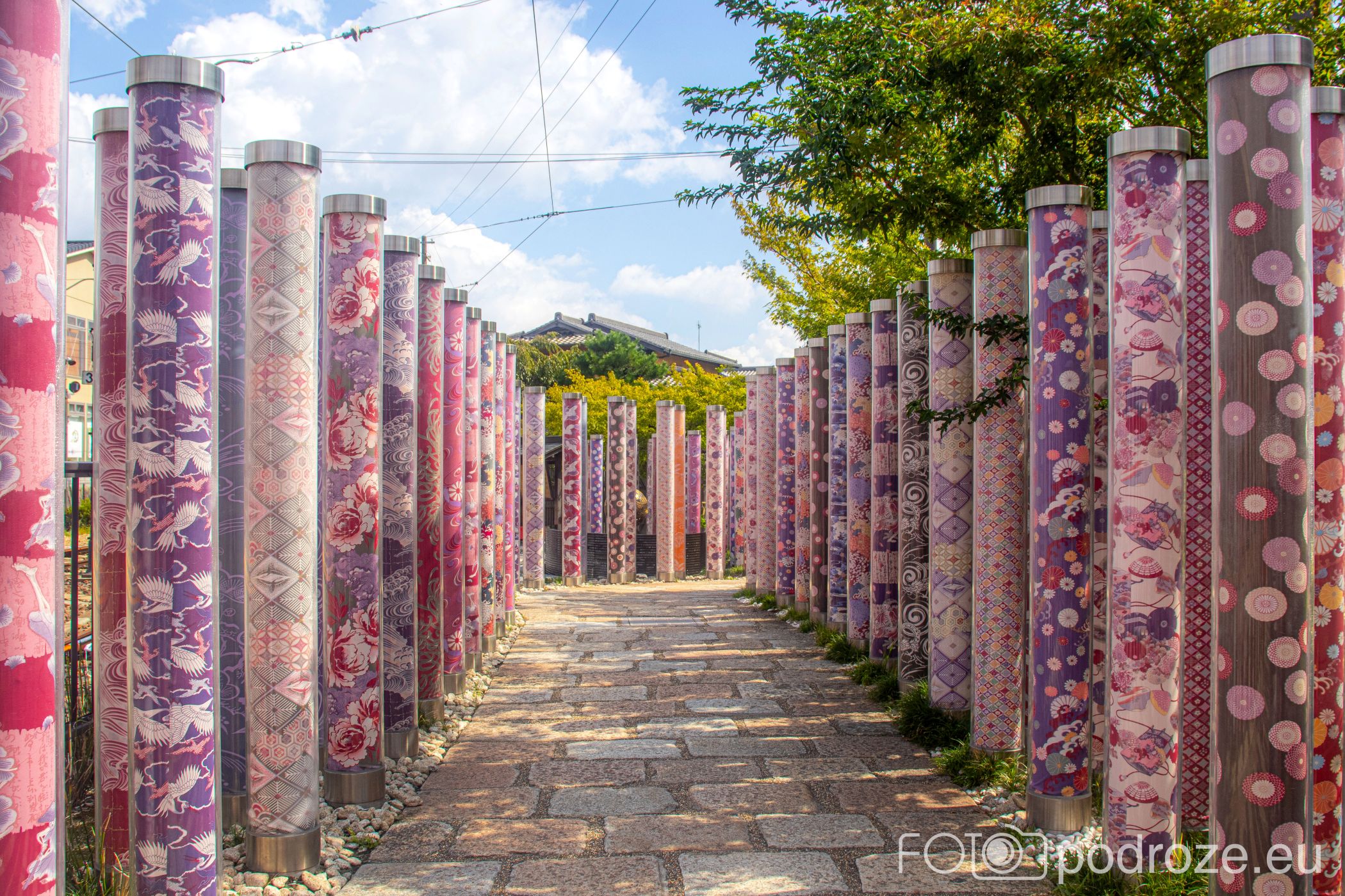 Do tej dzielnicy warto dotrzeć pociągiem jeszcze z innego powodu. Na stacji końcowej znajduje się bowiem Kimono Forest. To jedna z najbardziej fotogenicznych atrakcji Arashiyamy. Instalacja składa się z ponad 600 podświetlanych 2-metrowych kolumn, z których każda ozdobiona jest innym wzorem tradycyjnego kimona kyō-yūzen, czyli charakterystycznego stylu barwienia tkanin z Kioto. W ciągu dnia zachwycają detalami oraz kolorami, natomiast po zmroku zamieniają się w magiczny, świetlny las. W samym centrum instalacji znajduje się niewielki „smoczy staw” (Ryū no Atago no Ike), który według lokalnych wierzeń ma przynosić szczęście i oczyszczenie.