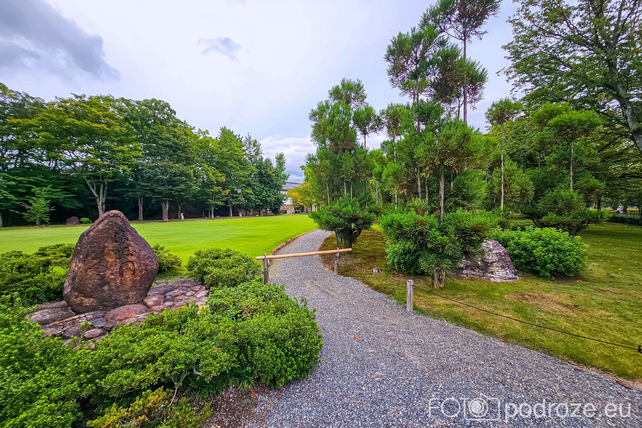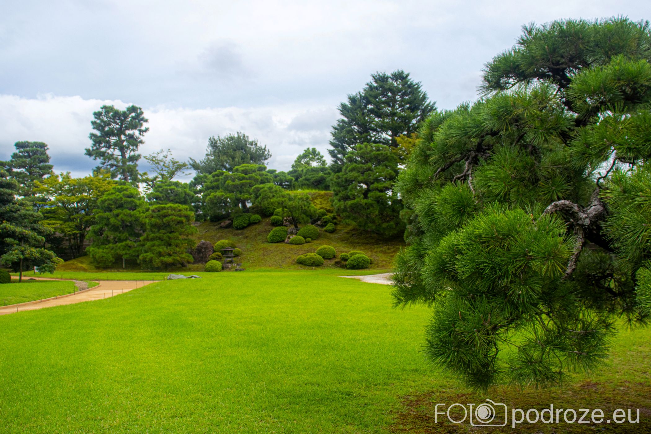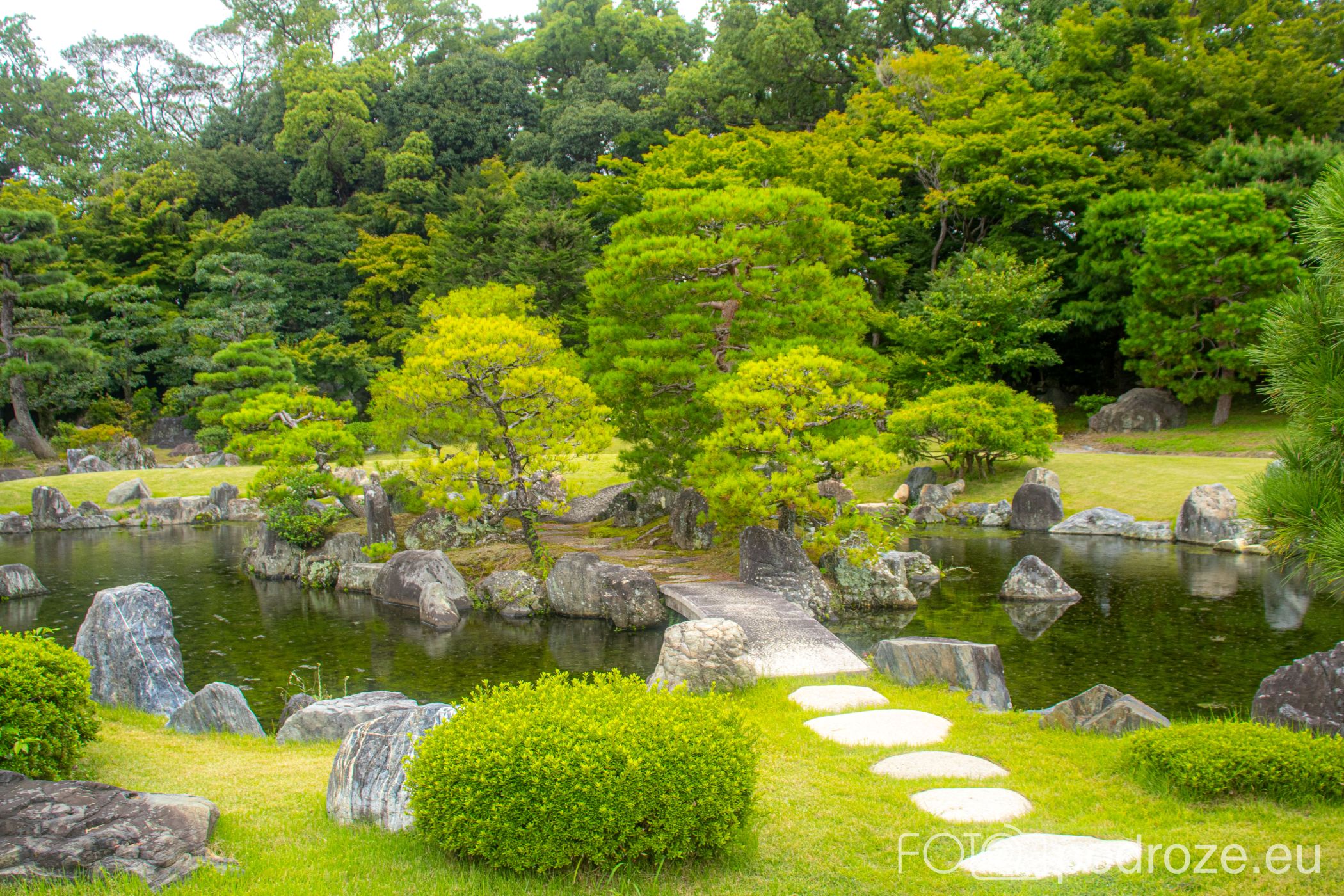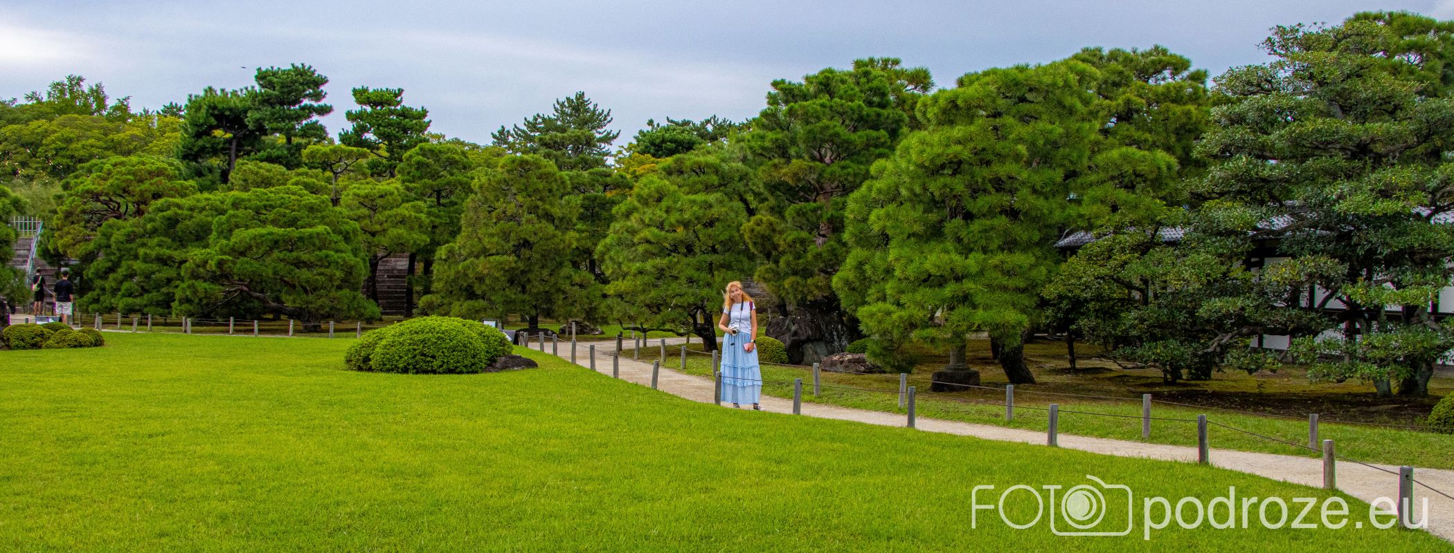 Od południowej strony pałacu znajduje się klasyczny ogród spacerowy z epoki Edo. Staw z wyspami, kamienne mostki i starannie formowane sosny tworzą tu malowniczy krajobraz przez cały rok.