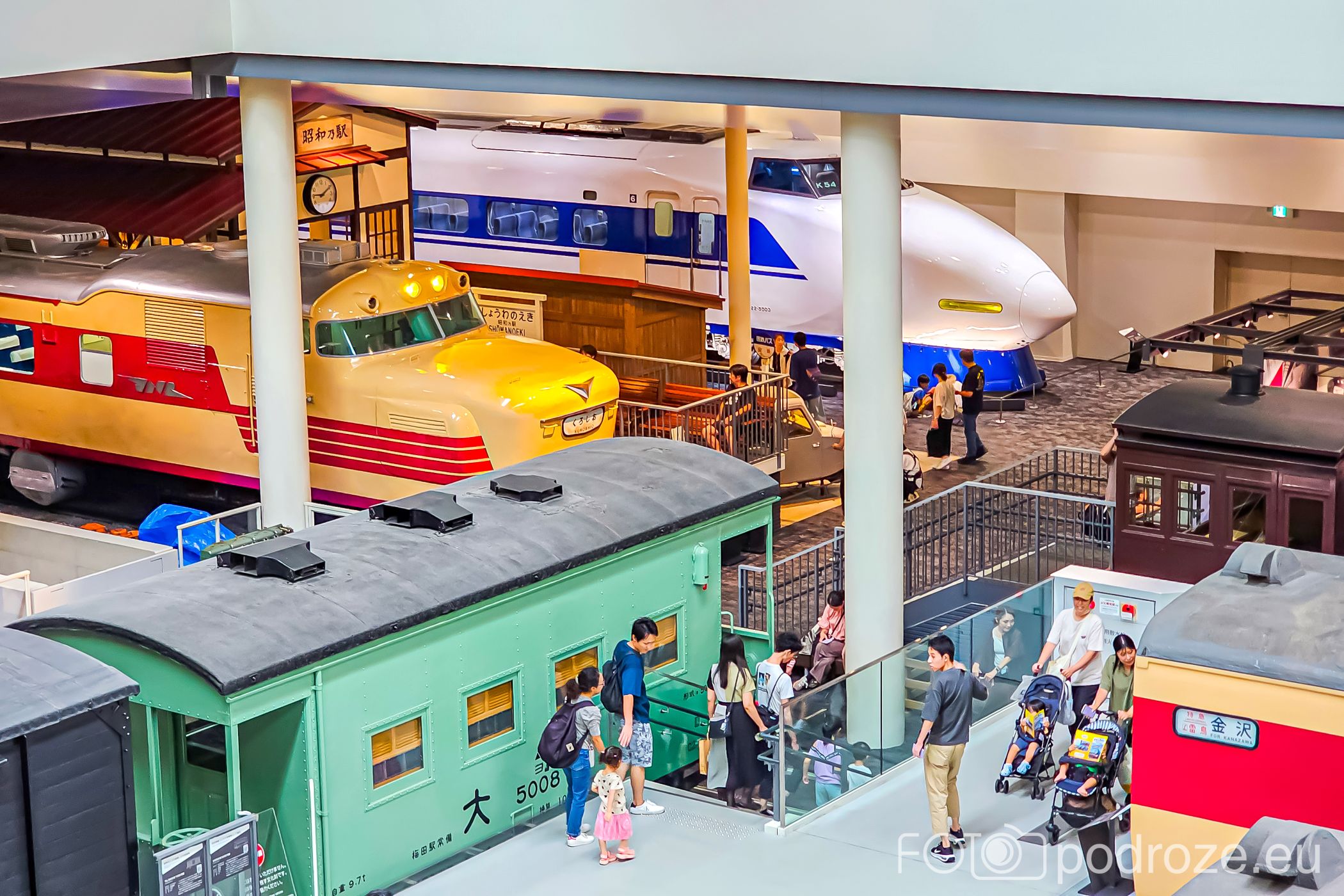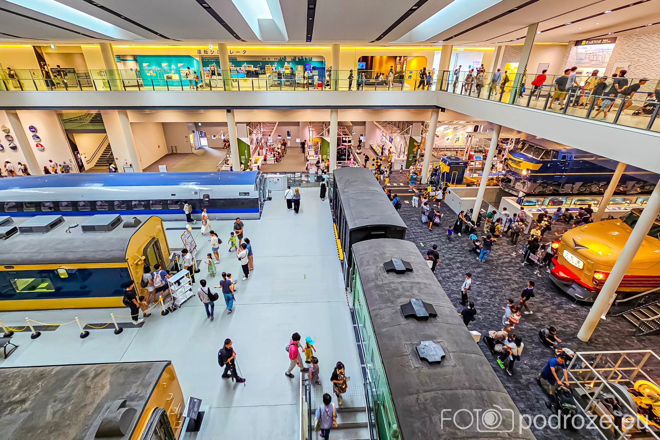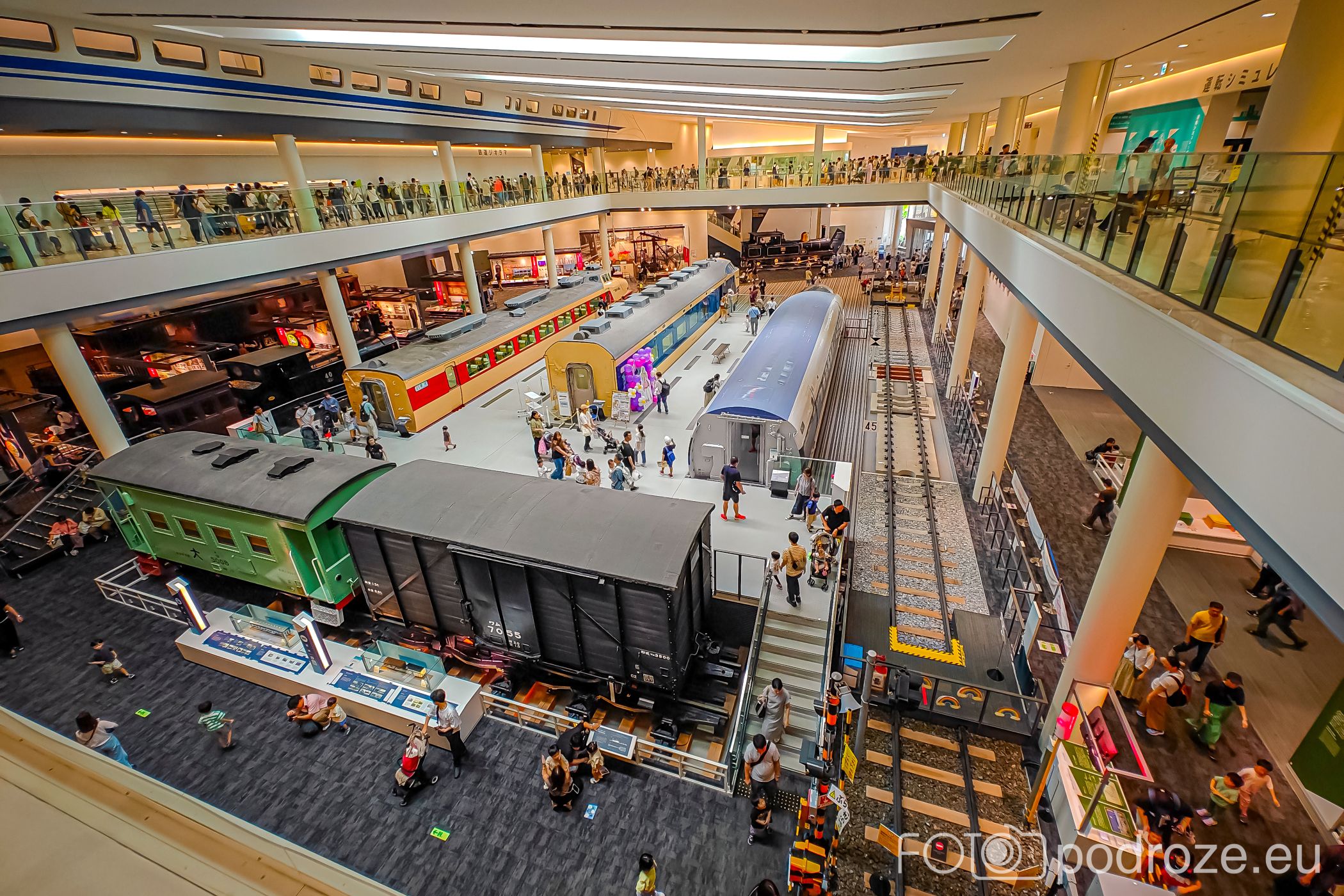Największe wrażenie robi imponująca hala z autentycznymi składami: od zabytkowych lokomotyw parowych, przez pierwsze japońskie pociągi elektryczne, aż po legendarny shinkansen serii 0. Można wejść do wybranych wagonów i zobaczyć, jak wyglądały wnętrza dawnych pociągów pasażerskich. Na tym poziomie znajdują się również interaktywne ekspozycje wyjaśniające rozwój kolei w Japonii.