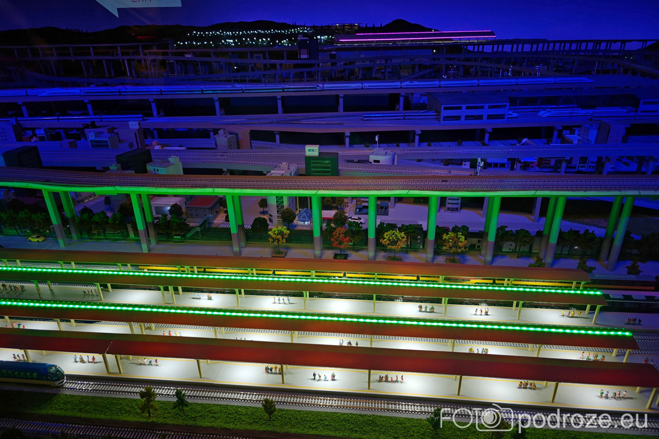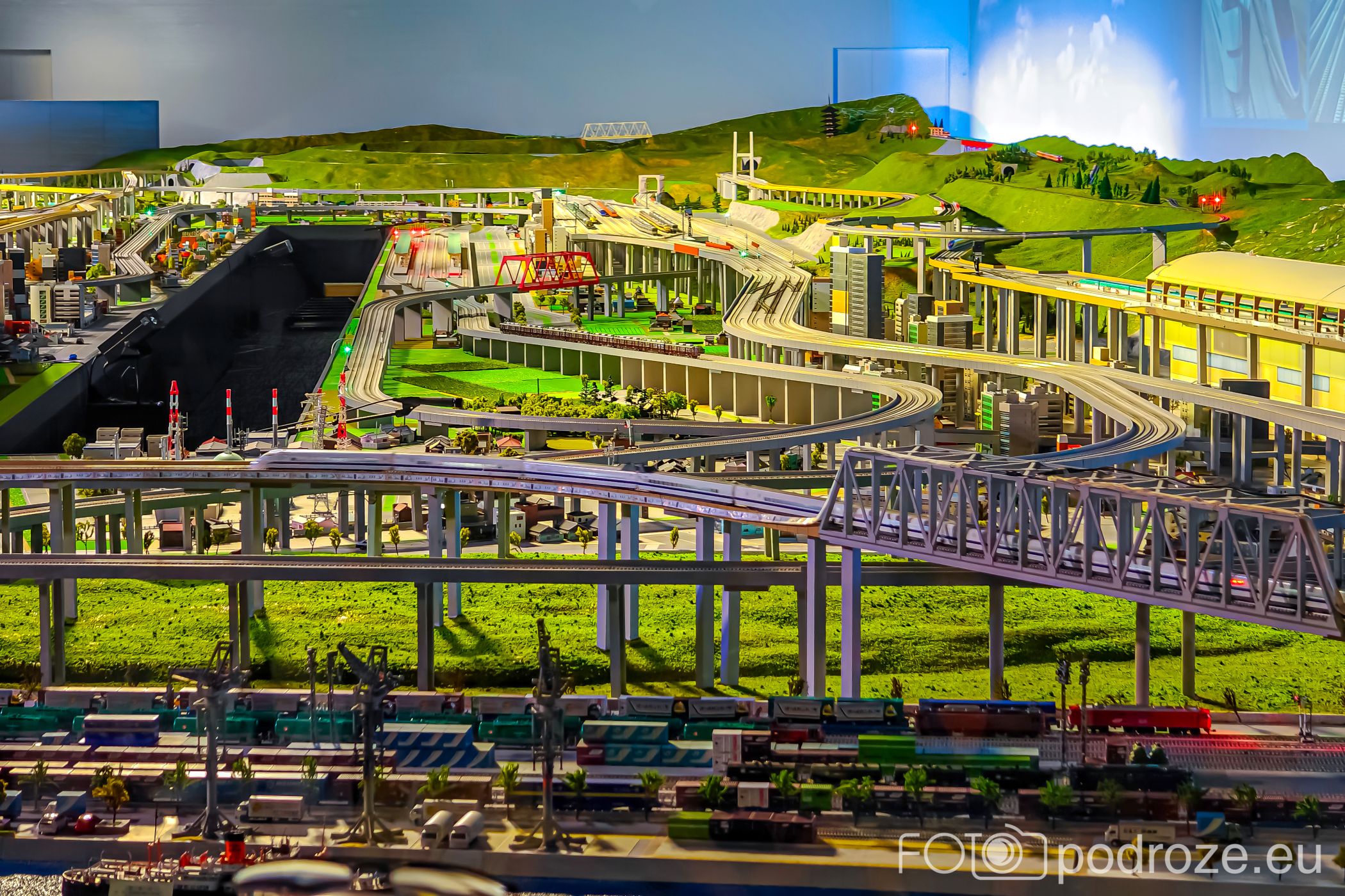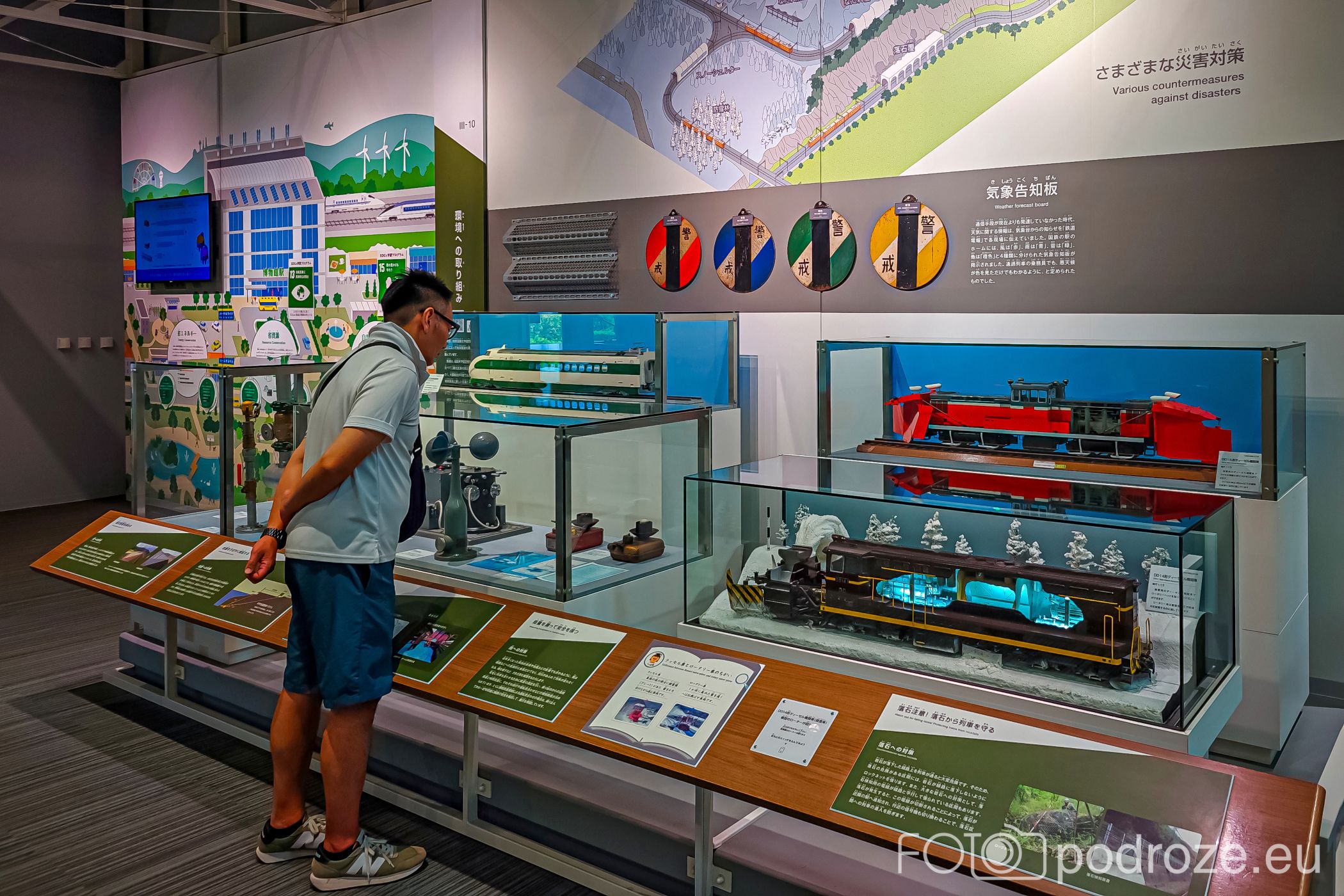 Wjeżdżamy schodami ruchomymi na górę. Piętro to przestrzeń bardziej interaktywna, głównie dla rodzin z dziećmi. Znajdują się tu symulatory jazdy pociągiem, makiety kolejowe oraz wystawy tłumaczące zasady działania torów, sygnalizacji i systemów bezpieczeństwa. Ogromna makieta z miniaturowymi pociągami prezentuje ruch kolejowy w różnych regionach Japonii. Niestety lektorka na pokazie mówi tylko w języku japońskim.