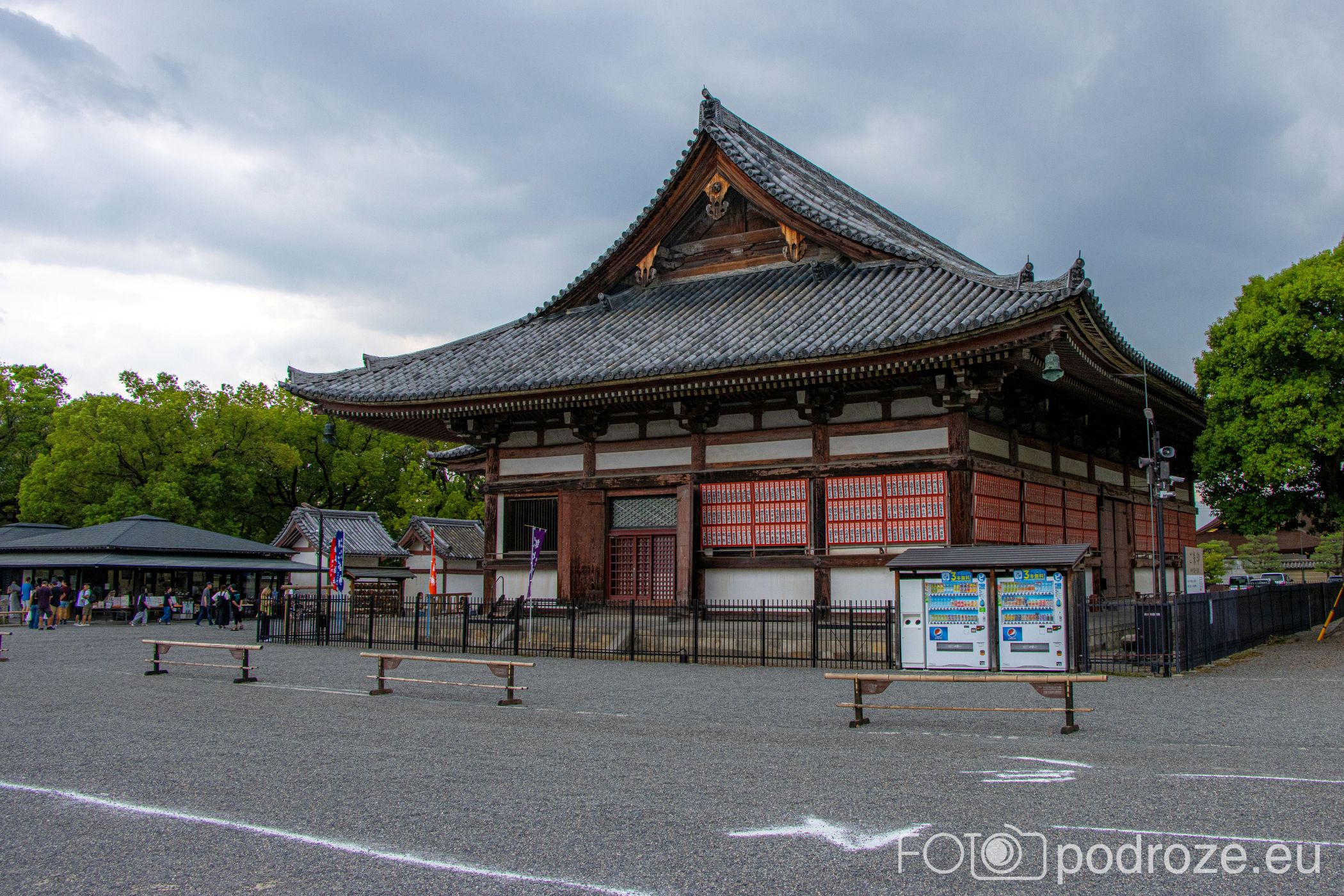 Na tą świątynię nie wystarczyło nam czasu, ale warto o niej wspomnieć, tym bardziej, że cały kompleks widać było wyraźnie z wieży. Higashi Hongan-ji to także jeden z najważniejszych i największych buddyjskich kompleksów świątynnych w Kioto. Został założony w 1602 roku jako centrum odłamu Jōdo Shinshū i odgrywał kluczową rolę w religijnym i społecznym życiu miasta. Świątynia zachwyca monumentalną architekturą, w tym ogromną Salą Głównej Modlitwy (Goei-dō) – jedną z największych drewnianych konstrukcji w Japonii. Otoczona jest spokojnymi ogrodami i mniejszymi budynkami, które tworzą harmonijną przestrzeń do medytacji i ceremonii. Higashi Hongan-ji jest także miejscem licznych wydarzeń religijnych i kulturalnych, dzięki czemu można tu poczuć zarówno duchowy, jak i historyczny klimat Kioto.