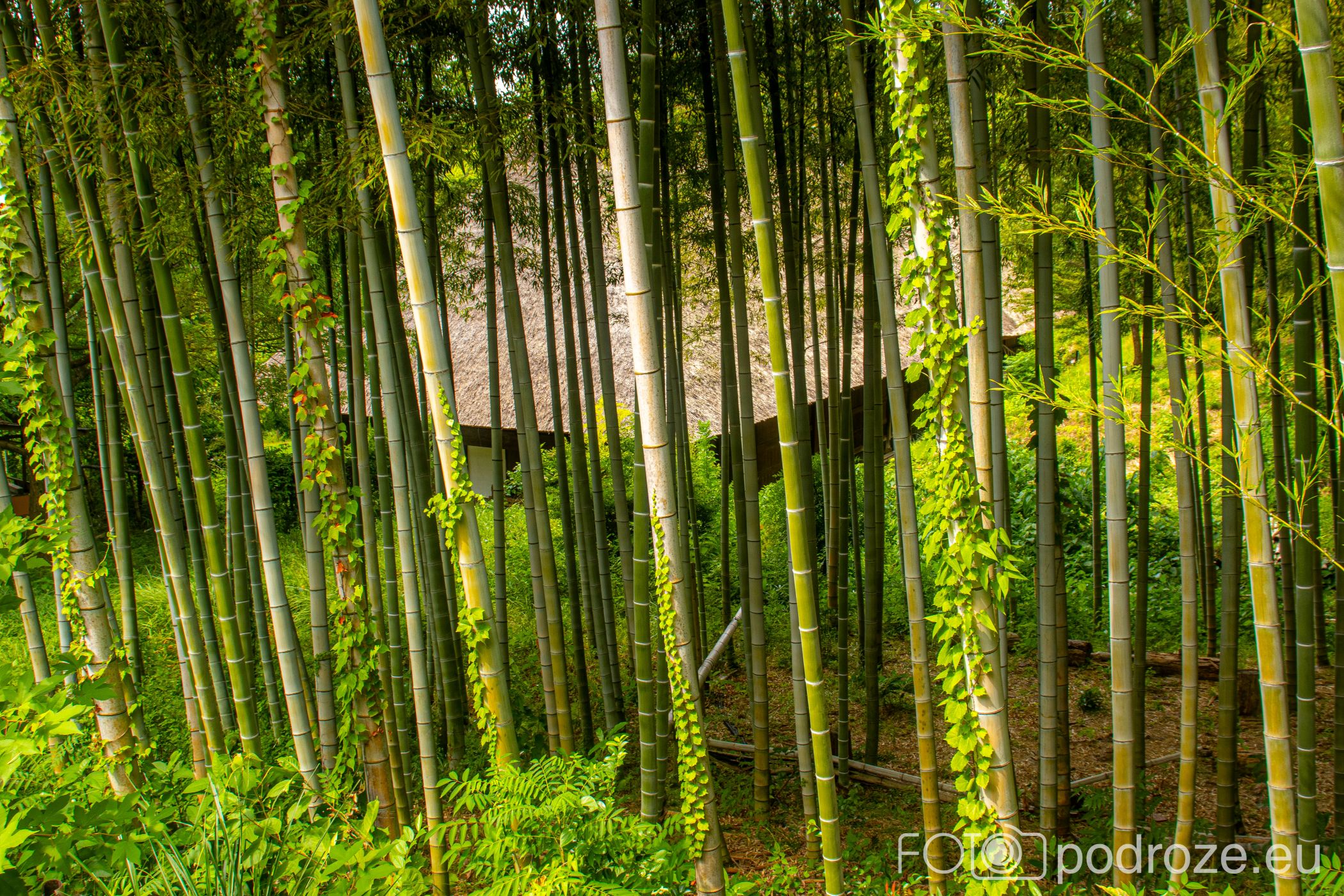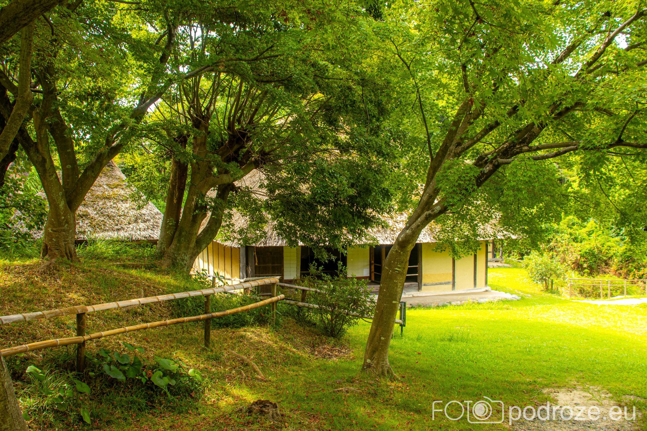 Zabudowa skansenu została harmonijnie wpisana w zielone otoczenie, które jest integralną częścią całej ekspozycji. Między domami rosną zagajniki bambusowe, drzewa liściaste oraz rodzime gatunki roślin, dzięki czemu spacer po muzeum przypomina wędrówkę po dawnej japońskiej wsi. Zieleń nie jest tu tylko tłem, ale elementem budującym autentyczną atmosferę miejsca. Wokół domów posadzono rośliny, które rzeczywiście występowały w tradycyjnych osadach: krzewy, trawy i drzewa użytkowe. Dzięki temu łatwiej zrozumieć, jak blisko natury funkcjonowało dawne japońskie życie codzienne. Zmieniające się pory roku nadają skansenowi zupełnie inny charakter. Wiosną dominuje świeża zieleń, latem teren staje się gęsty i zacieniony, a jesienią liście tworzą ciepłą, stonowaną kolorystykę. To sprawia, że muzeum jest atrakcyjne o każdej porze roku i zachęca do spokojnego, niespiesznego zwiedzania.