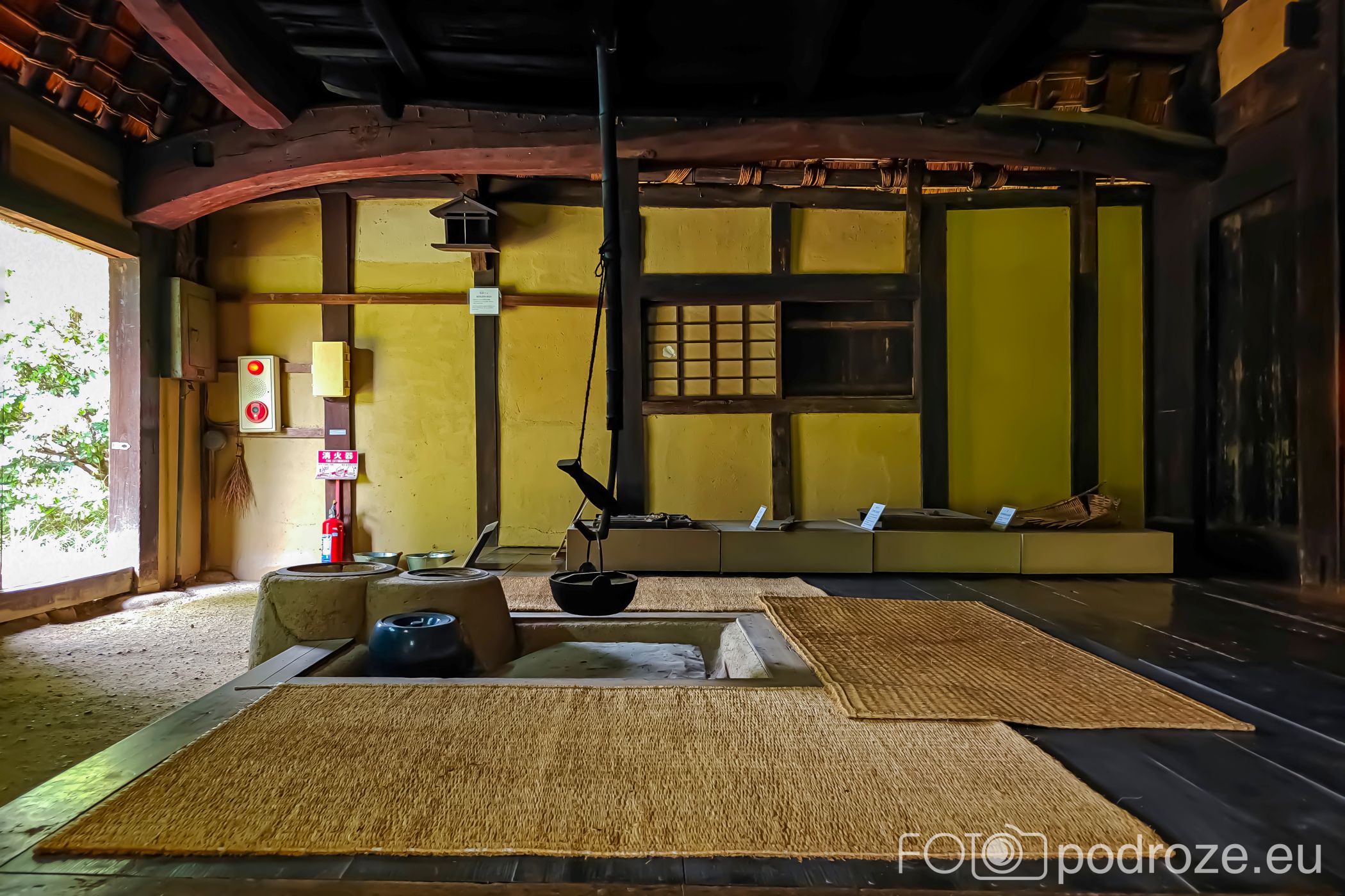 Wnętrza domów są w pełni urządzone. Można zobaczyć podłogi tatami, przesuwne drzwi shōji, paleniska irori oraz proste meble codziennego użytku. Dzięki temu łatwiej zrozumieć, jak wyglądało życie rodzin w dawnej Japonii i jak funkcjonowały tradycyjne domostwa.