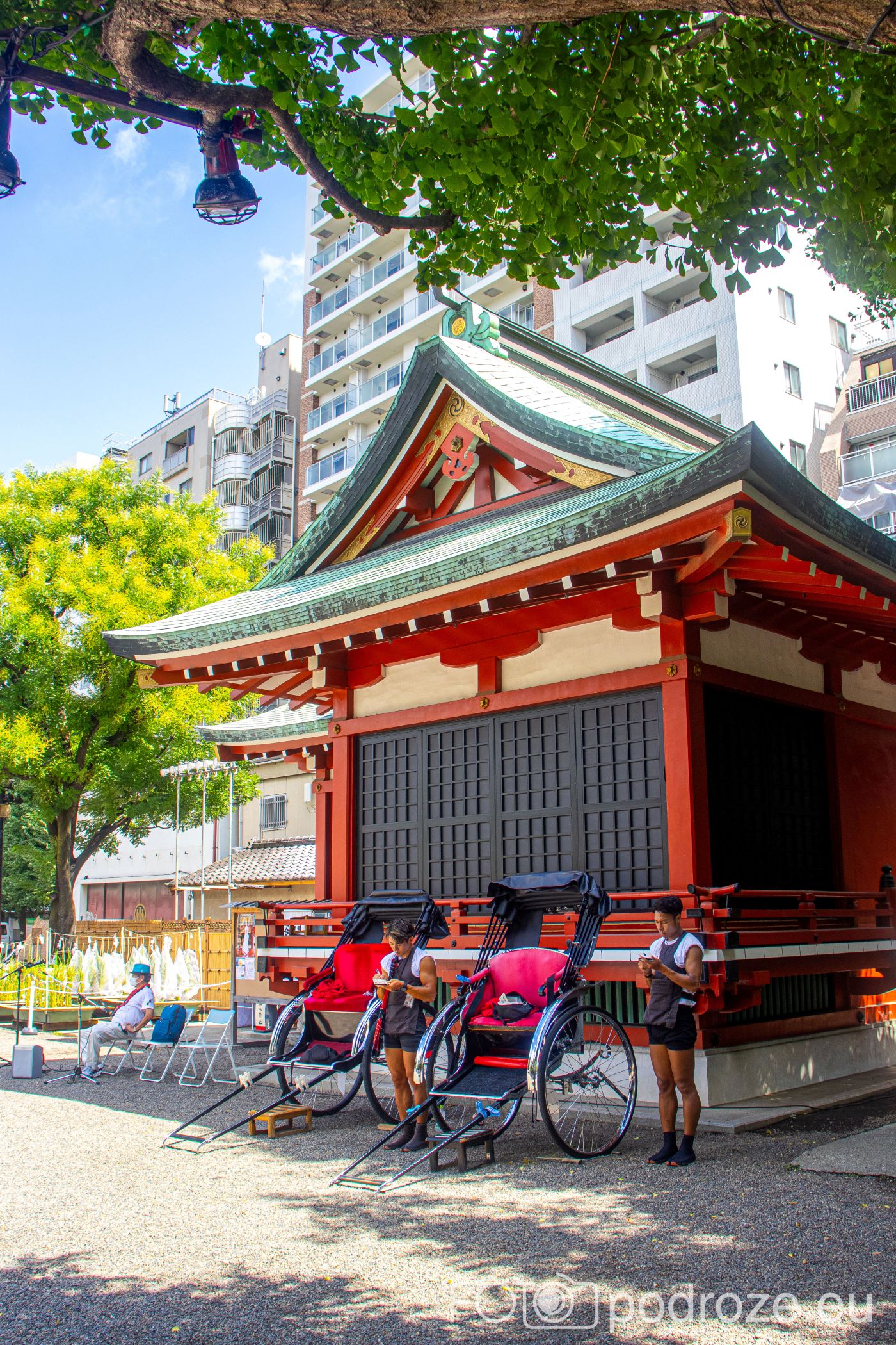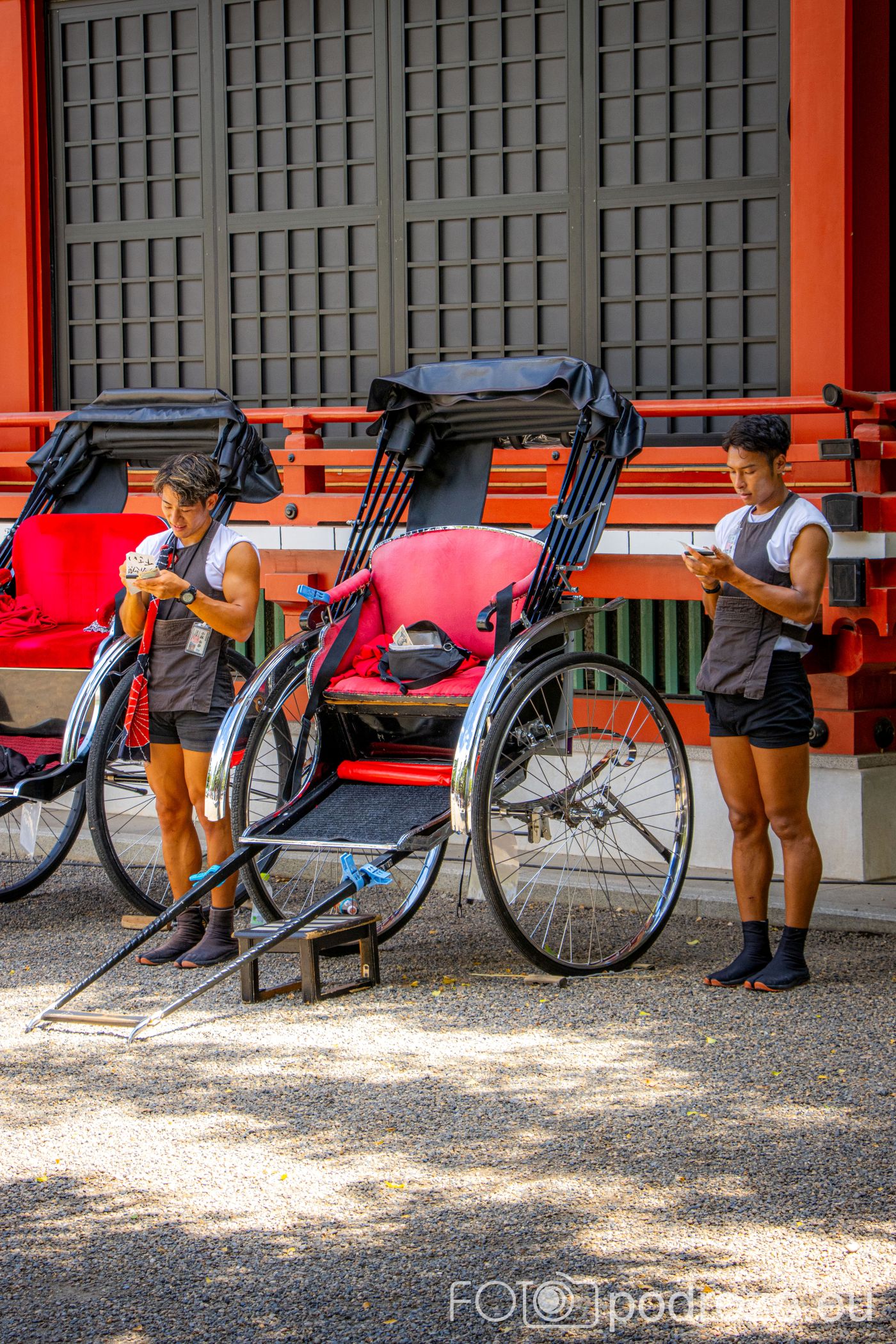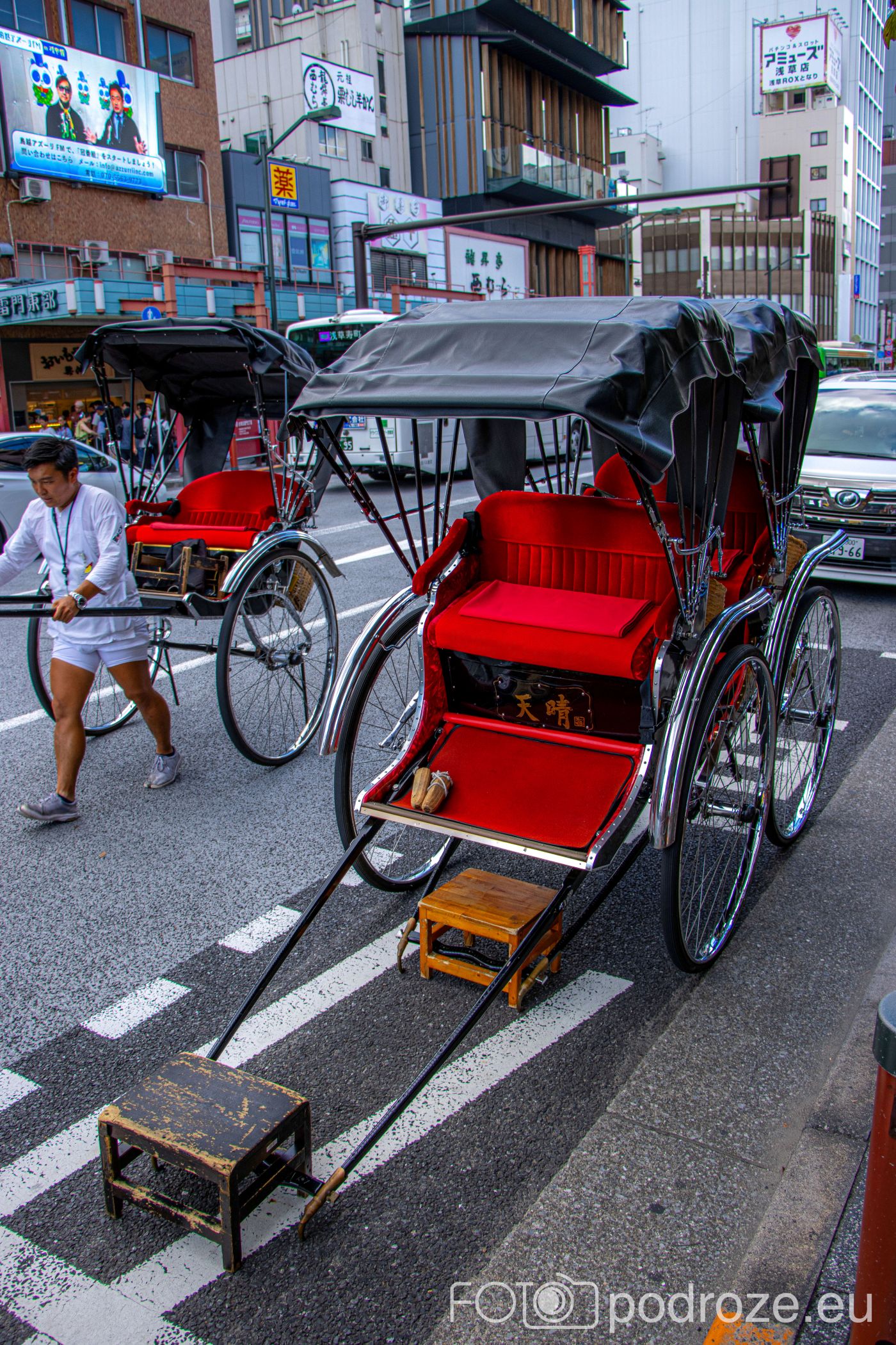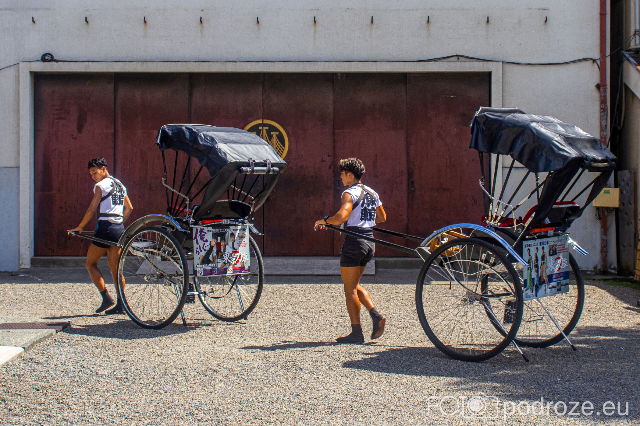 To właśnie w tym miejscu stykamy się po raz pierwszy z niezwykłym zjawiskiem. To jak się okazuje popularna atrakcja w Japonii, czyli riksze ciągnięte przez młodych mężczyzn. Turyści mogą w nich przejechać się po najważniejszych ulicach dzielnicy, podziwiając okolice w wygodny i tradycyjny sposób.