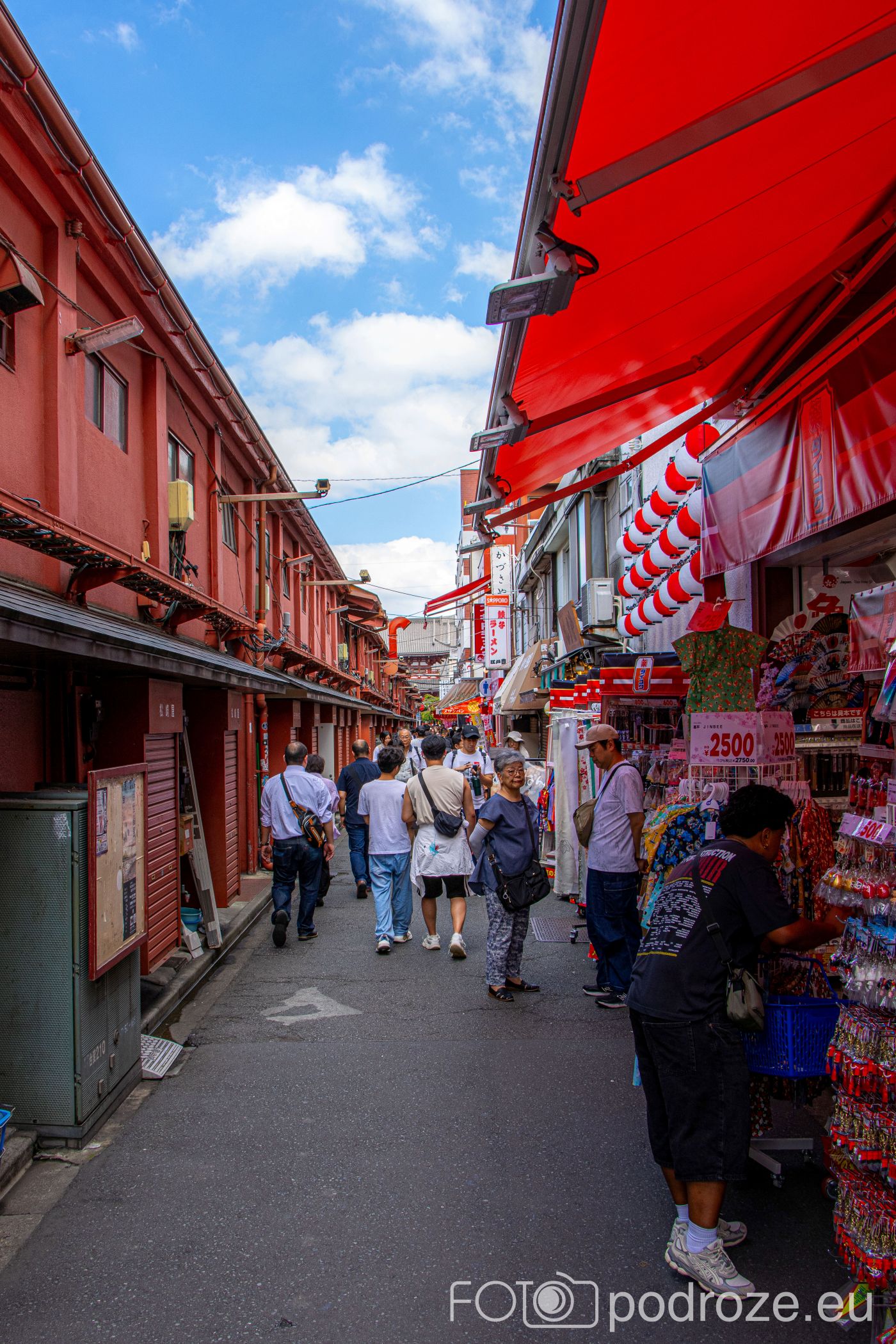 Za bramą rozciąga się Nakamise-dōri, czyli kilkusetmetrowa ulica prowadząca wprost do głównej hali świątyni. To jedna z najstarszych ulic handlowych w Japonii, pełna straganów z tradycyjnymi słodyczami, wachlarzami, yukatami i pamiątkami praz amuletami ochronnymi omamori. Ulica jest tak zatłoczona, że ciężko nią przejść.