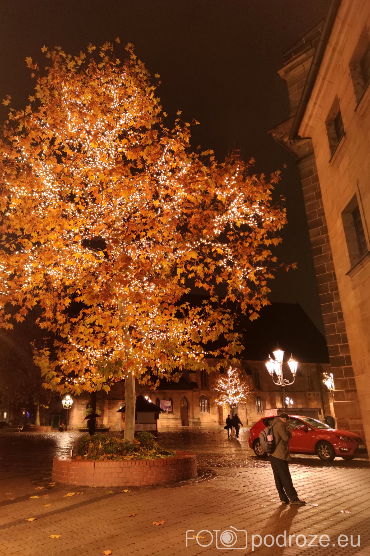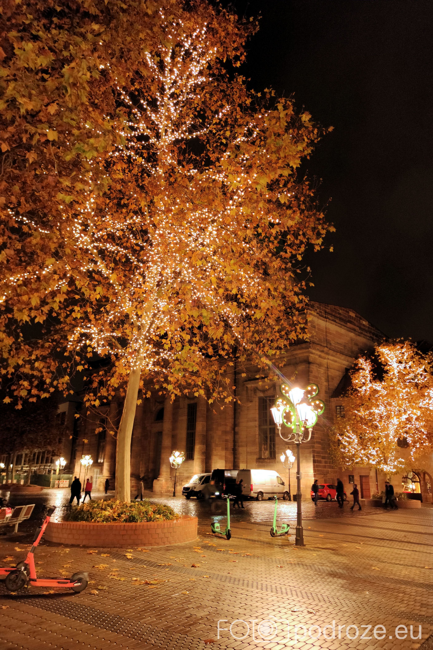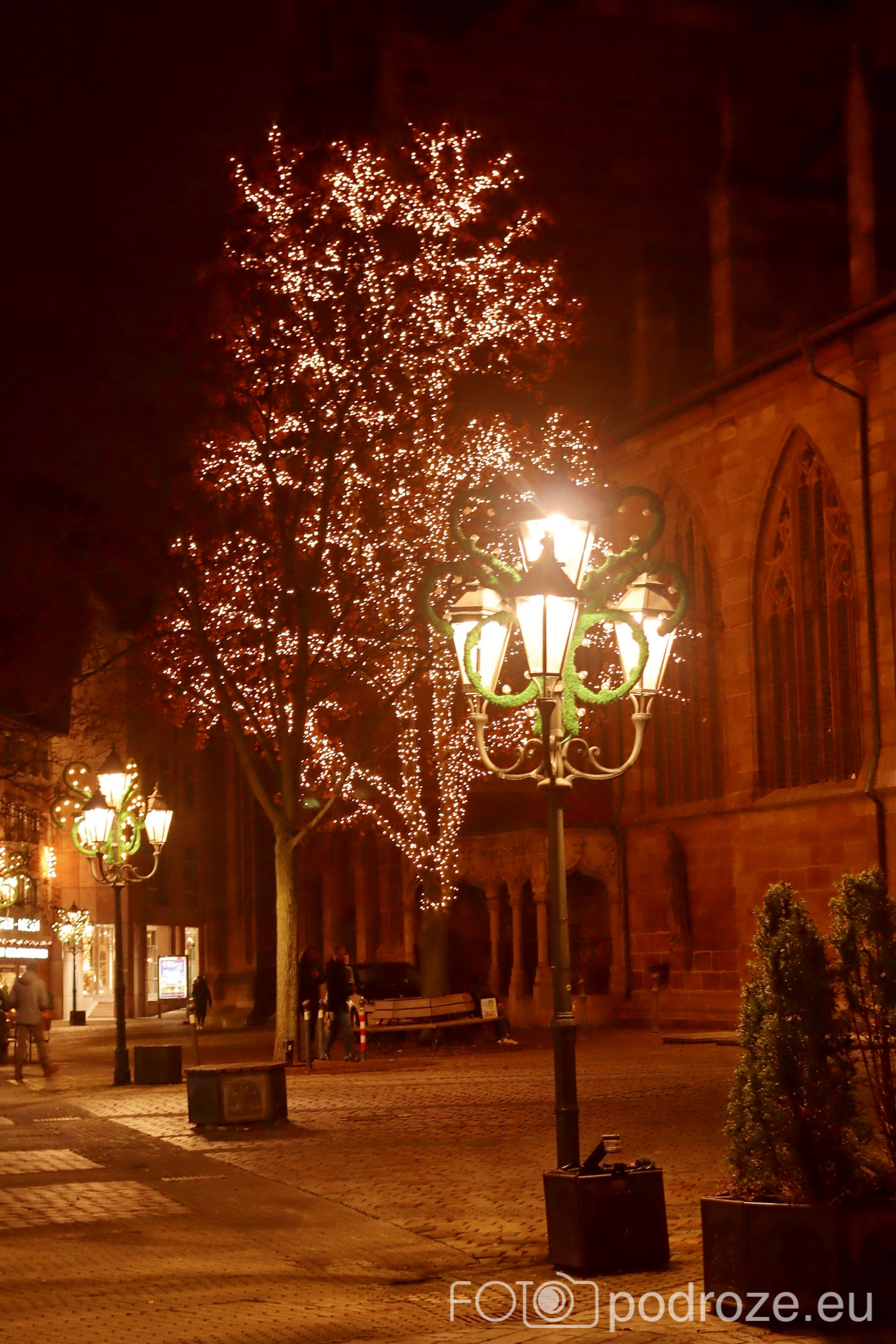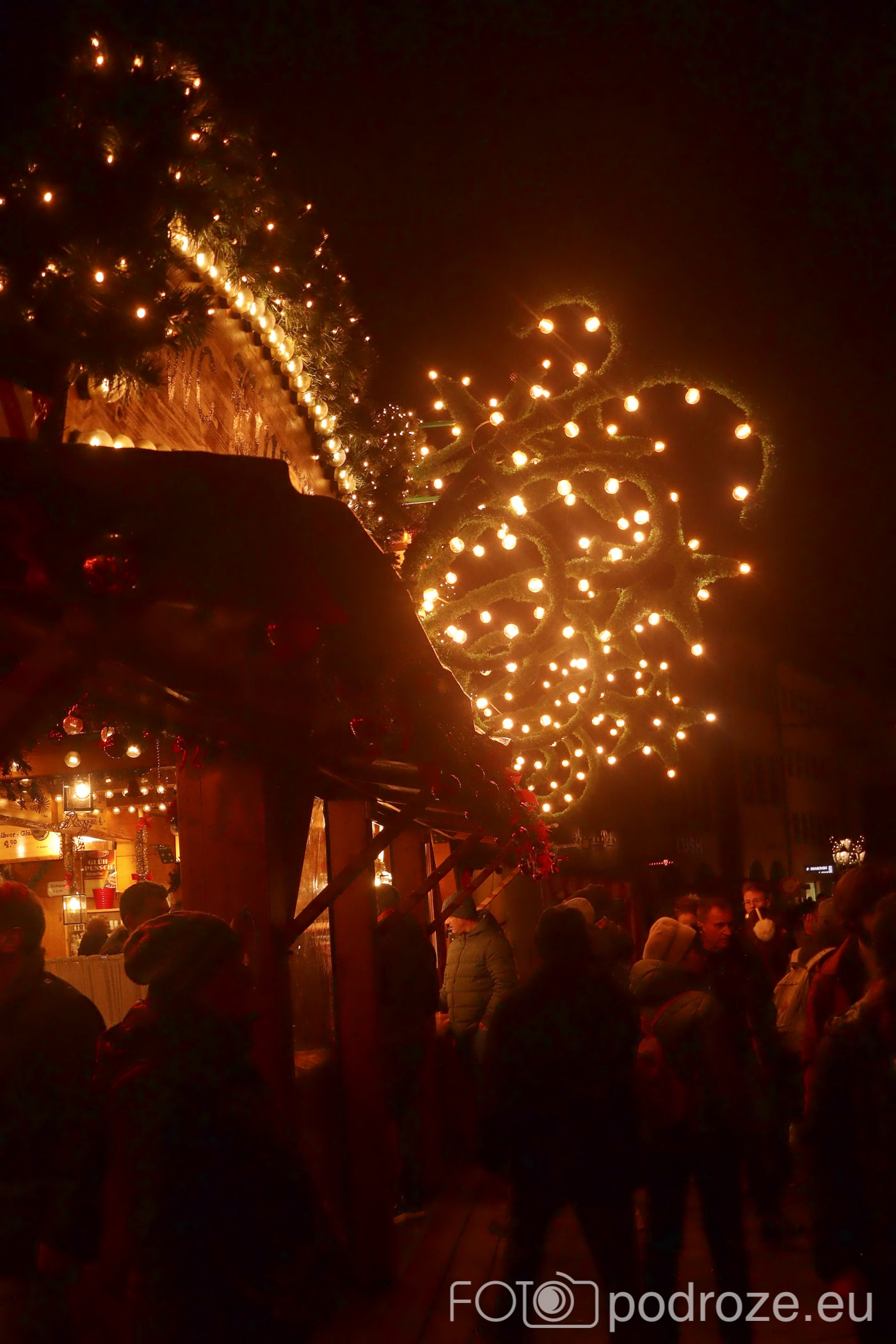 Jak każde miasto , nie tylko rejon w którym rozłożony jest jarmark przyozdobione jest światełkami. Niemieckie miasta wyraźnie jednak w tym roku oszczędzają energię. Wiele podświetleń zabytkowych budynków zostało wyłączonych. Za to ulice rozświetlają kolorowe drzewa, a wyglądają magicznie z jesiennymi jeszcze liśćmi. Główna ulica miasta prowadząca nas z Dziedzińca Rzeźników do głównego placu ma jeszcze swoje oświetlenie nad arterią . Przy murach Starego Miasta stoi jeszcze kilka choinek.