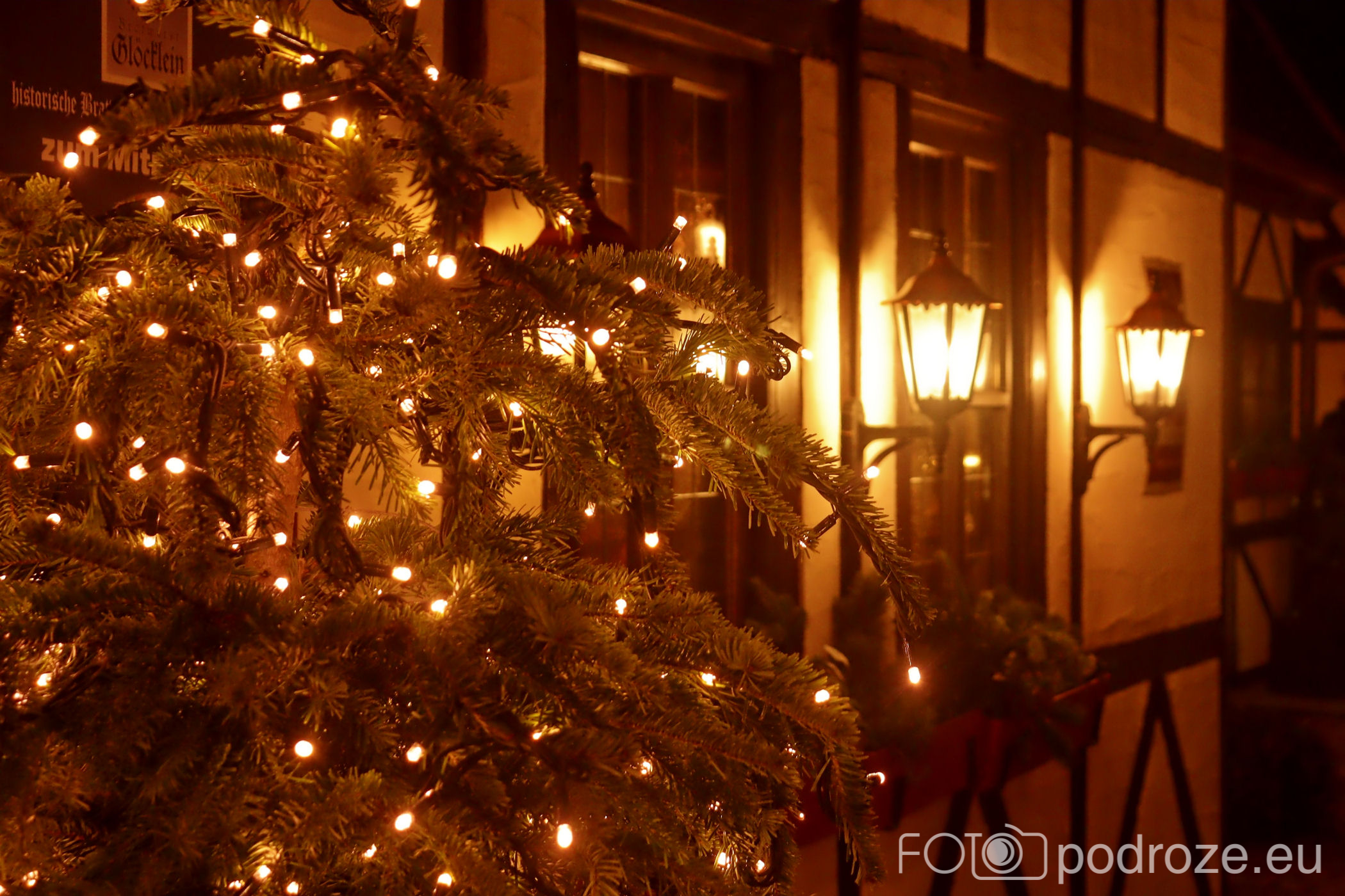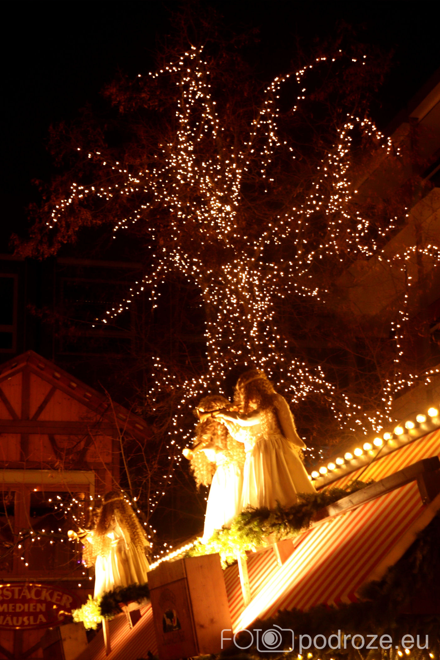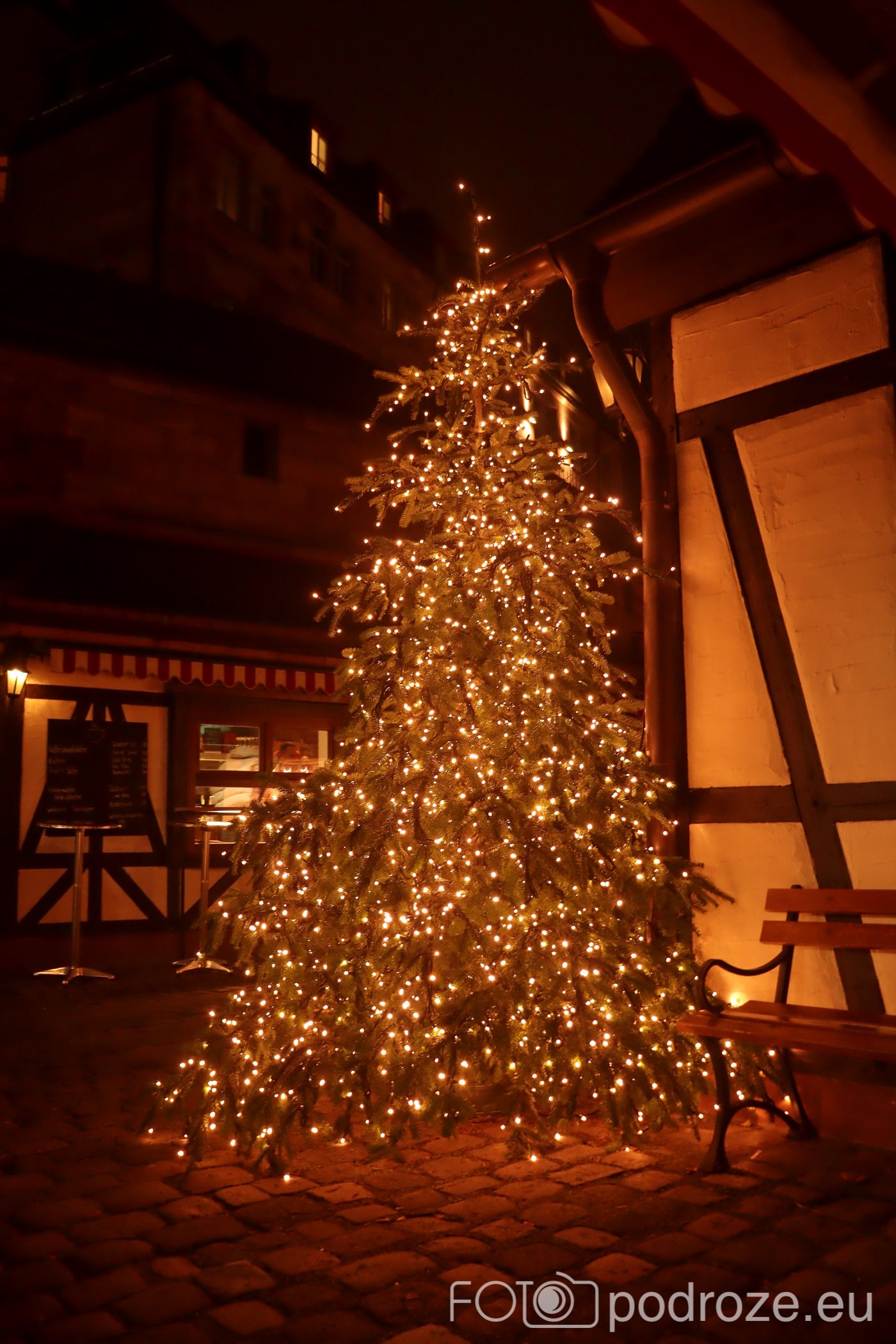 Jak każde miasto , nie tylko rejon w którym rozłożony jest jarmark przyozdobione jest światełkami. Niemieckie miasta wyraźnie jednak w tym roku oszczędzają energię. Wiele podświetleń zabytkowych budynków zostało wyłączonych. Za to ulice rozświetlają kolorowe drzewa, a wyglądają magicznie z jesiennymi jeszcze liśćmi. Główna ulica miasta prowadząca nas z Dziedzińca Rzeźników do głównego placu ma jeszcze swoje oświetlenie nad arterią . Przy murach Starego Miasta stoi jeszcze kilka choinek.