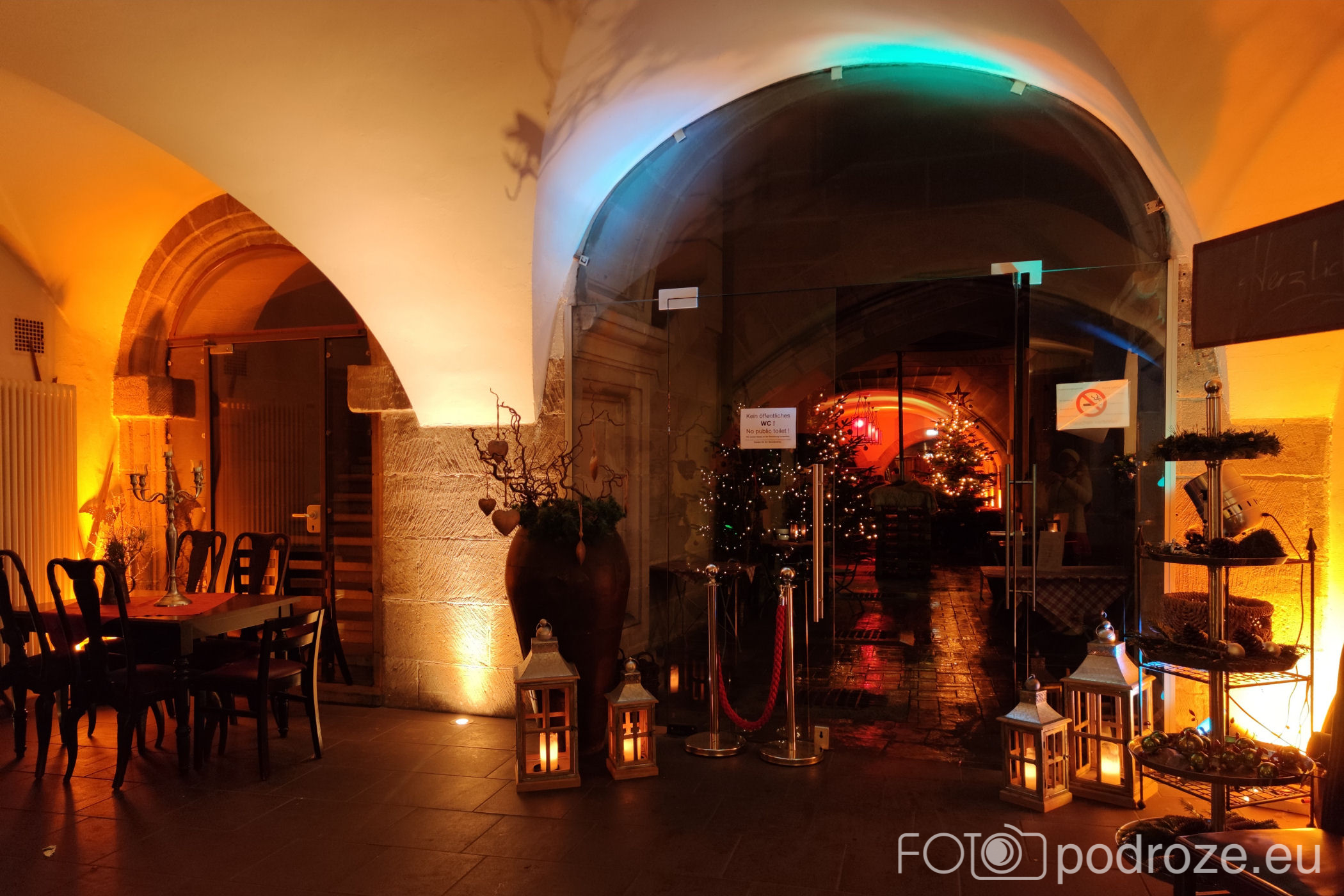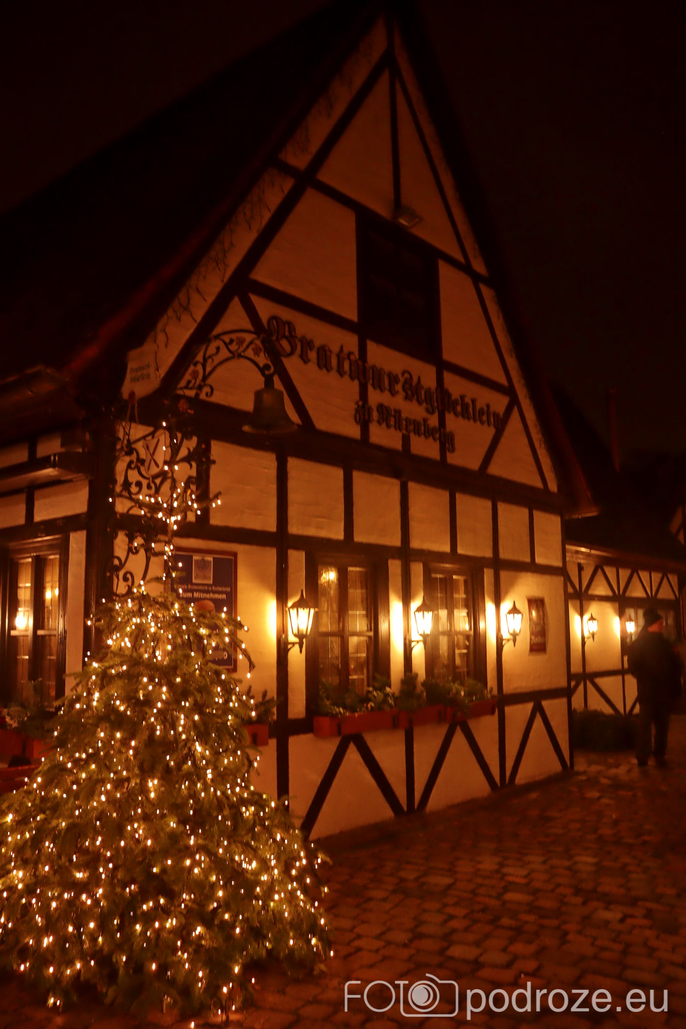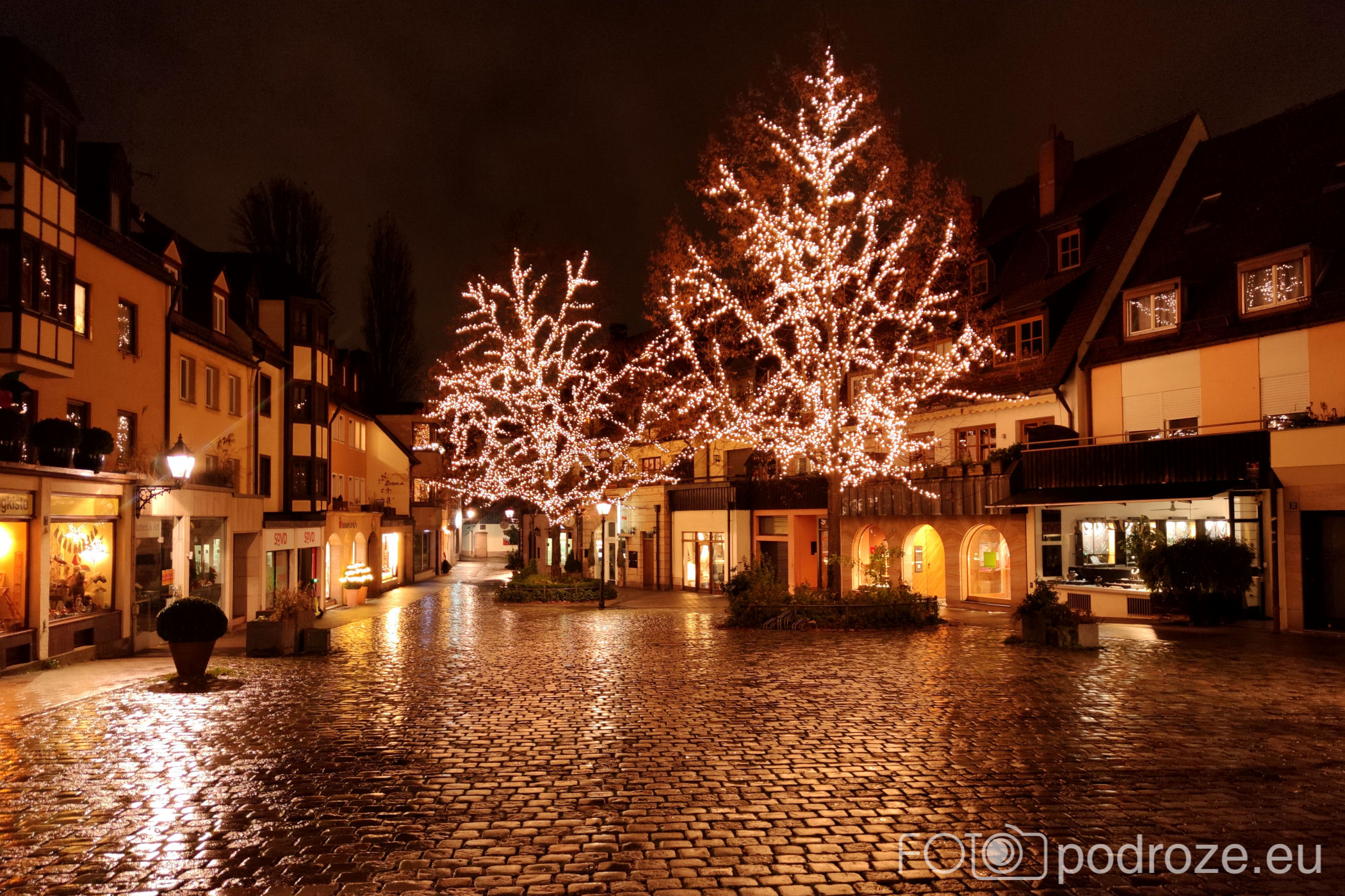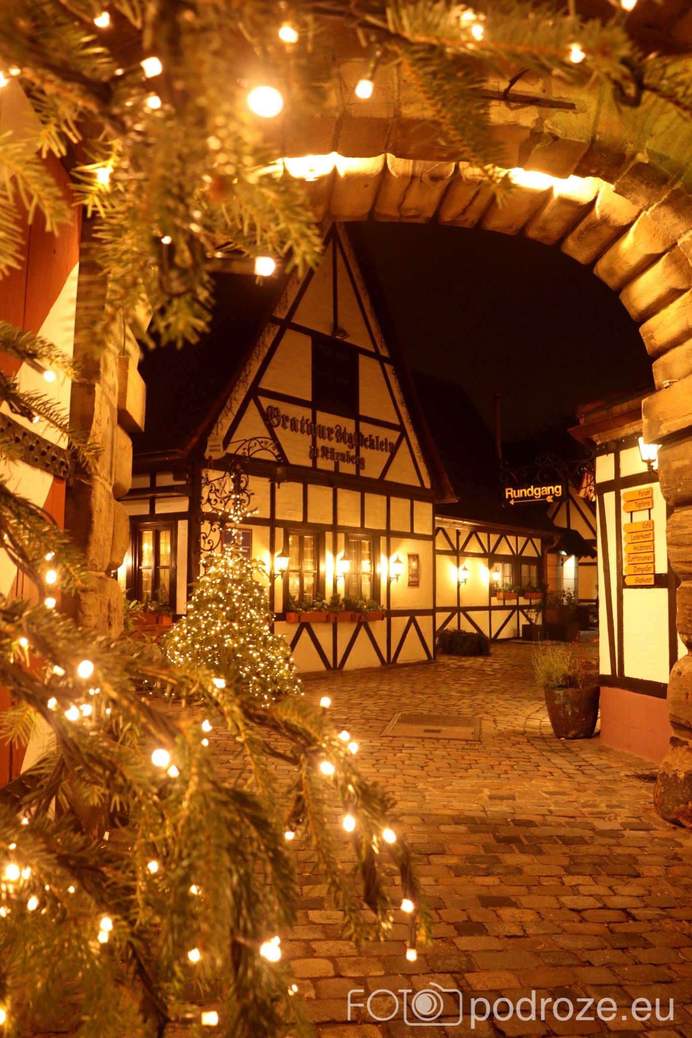Jak każde miasto , nie tylko rejon w którym rozłożony jest jarmark przyozdobione jest światełkami. Niemieckie miasta wyraźnie jednak w tym roku oszczędzają energię. Wiele podświetleń zabytkowych budynków zostało wyłączonych. Za to ulice rozświetlają kolorowe drzewa, a wyglądają magicznie z jesiennymi jeszcze liśćmi. Główna ulica miasta prowadząca nas z Dziedzińca Rzeźników do głównego placu ma jeszcze swoje oświetlenie nad arterią . Przy murach Starego Miasta stoi jeszcze kilka choinek.