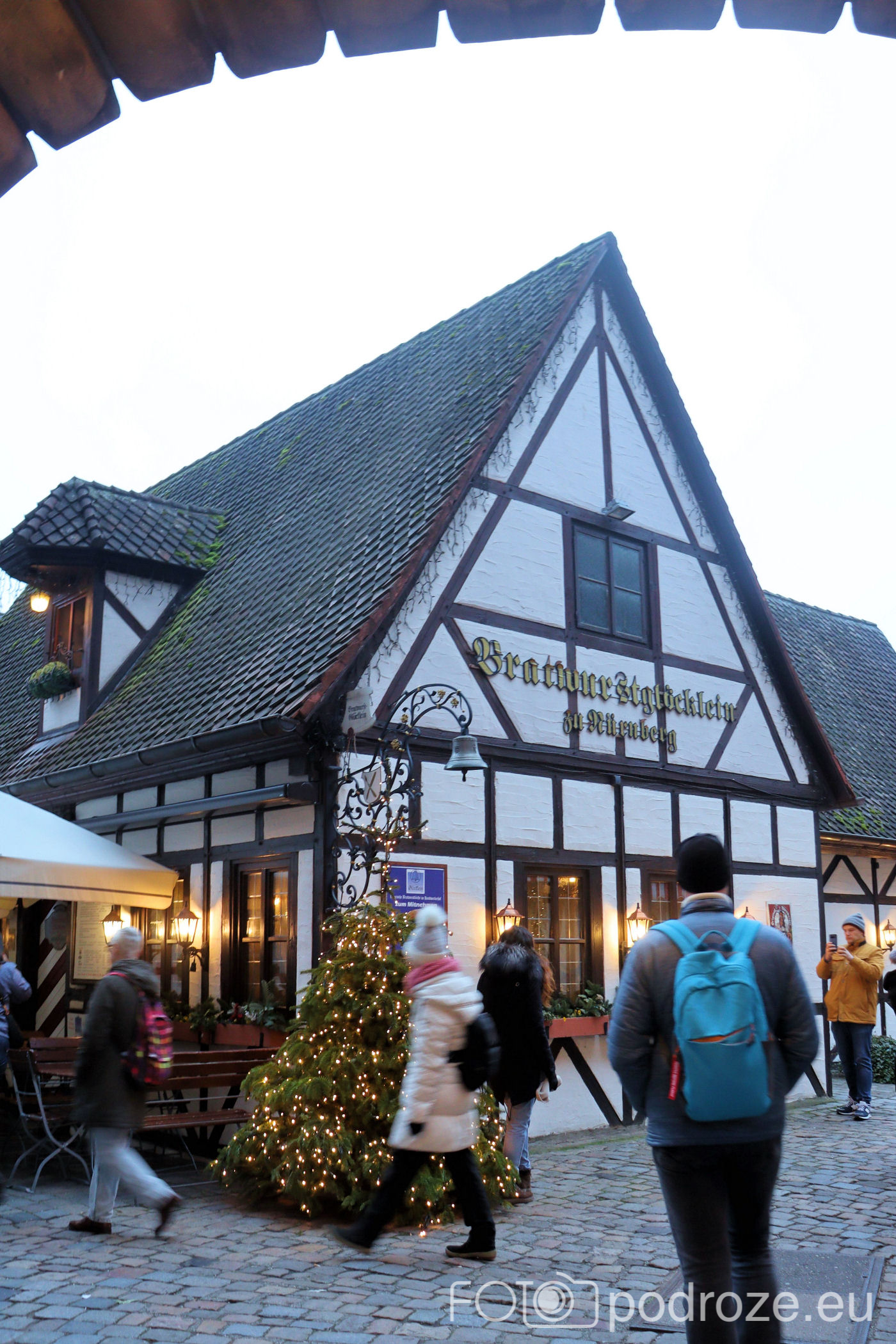 Właściwe części jarmarku już pokazałam powyżej, ale jest jeszcze jedno miejsce w Norymberdze o którym z racji niesamowitej świątecznej atmosfery i klimatu, nie sposób nie napisać. Handwerkerhof Nuremberg to średniowieczna uliczka handlowa z małymi sklepami sprzedającymi tradycyjne wyroby i rustykalnymi restauracjami. Ukryta za bramami murów obronnych pomiędzy wieżą Frauentorturm, a bramą Frauentor stanowi prawdziwą perełkę całego miasta. W dzień wygląda klimatycznie nawet w tak pochmurny dzień na jaki my trafiliśmy.