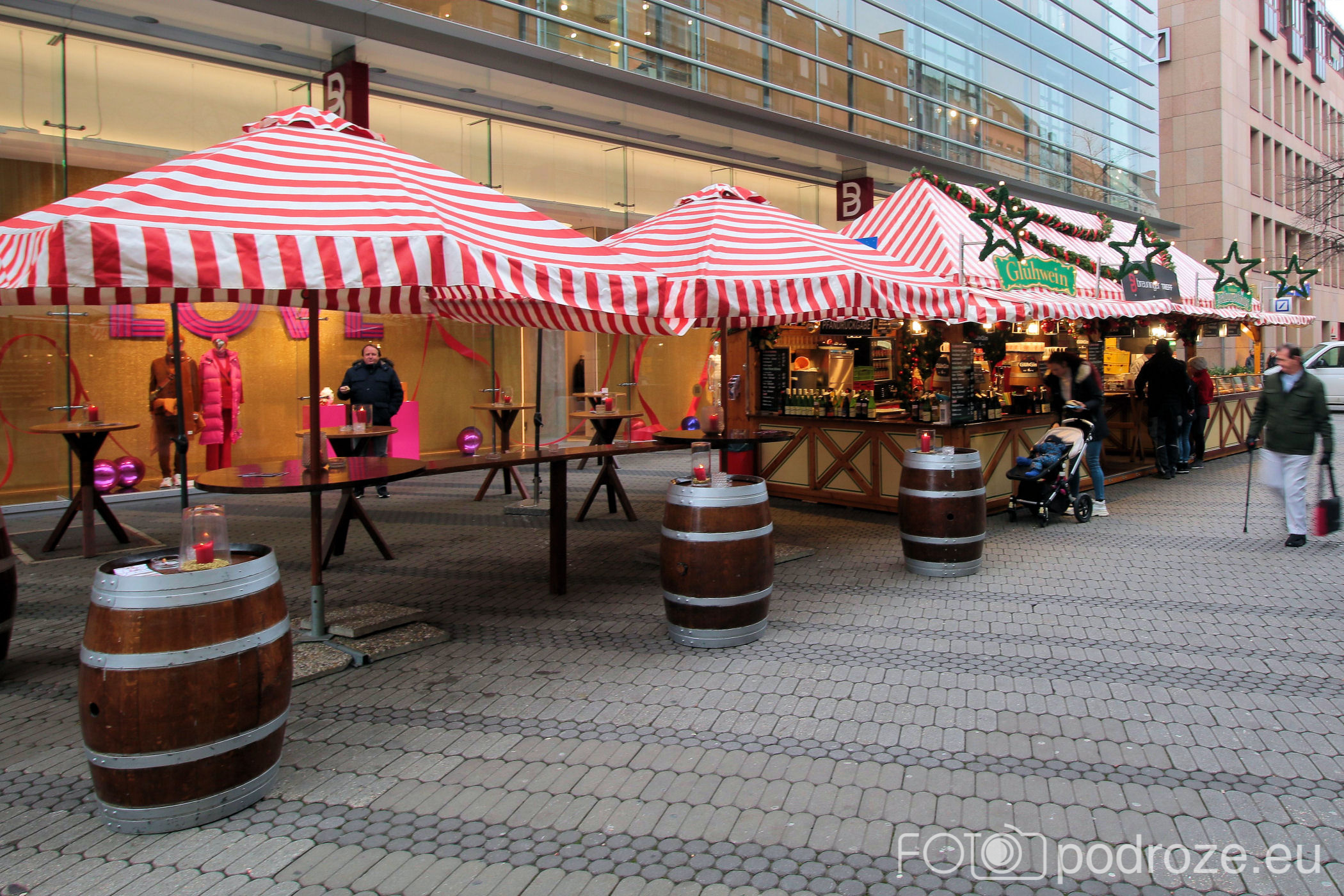 - Pechowo trafiliśmy na deszczową pogodę, to nam uświadomiło jak bardzo miasto to jest nieprzygotowane na taką aurę. Większość punktów gastronomicznych, czy podających grzane wino nie miało zadaszenia, a najlepiej zadaszonych stolików. Picie napoju na deszczu nie należy do przyjemności. Takie miejsca wspólnego biesiadowania były zarówno w DORTMUNDZIE , jak i FRANKFURCIE