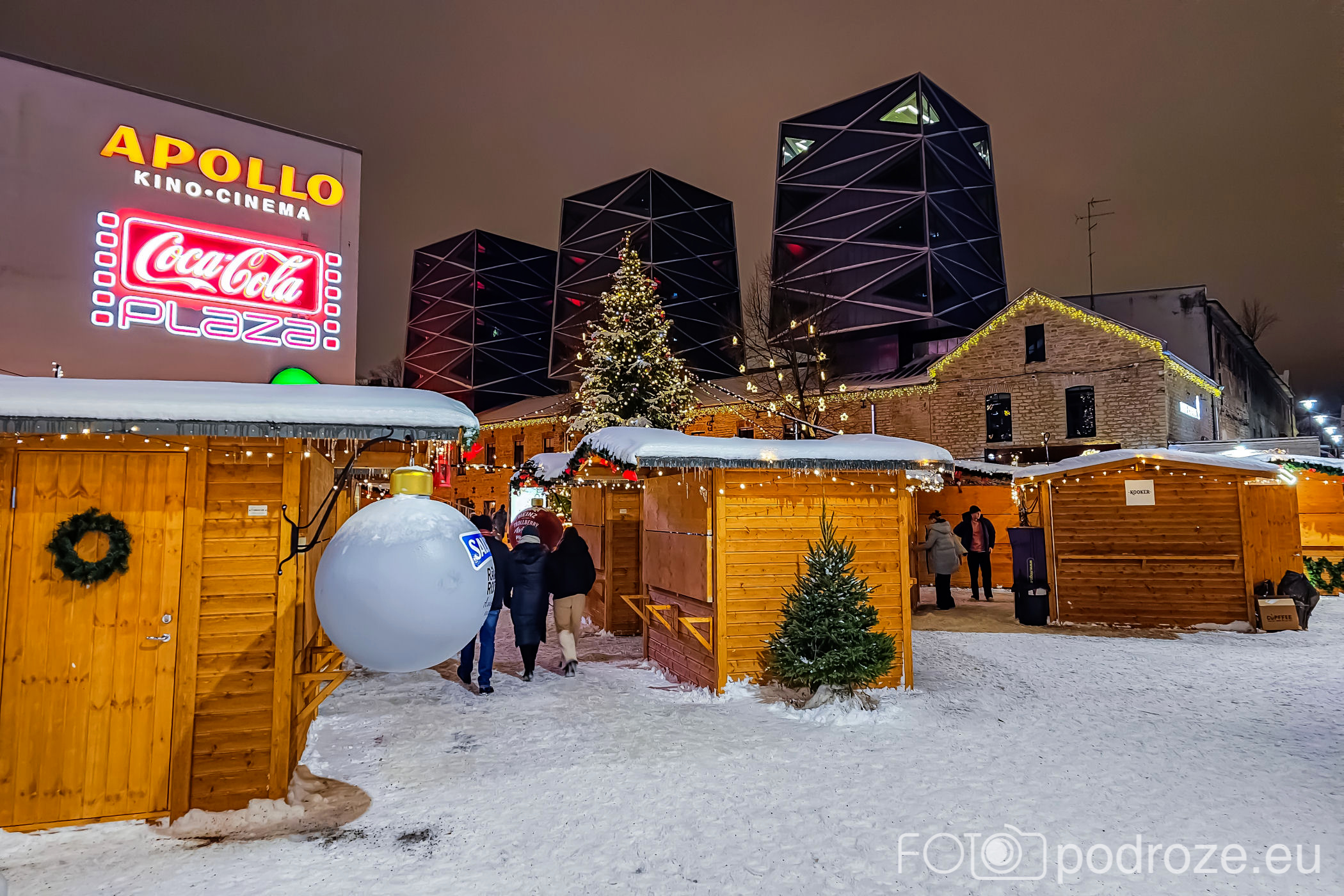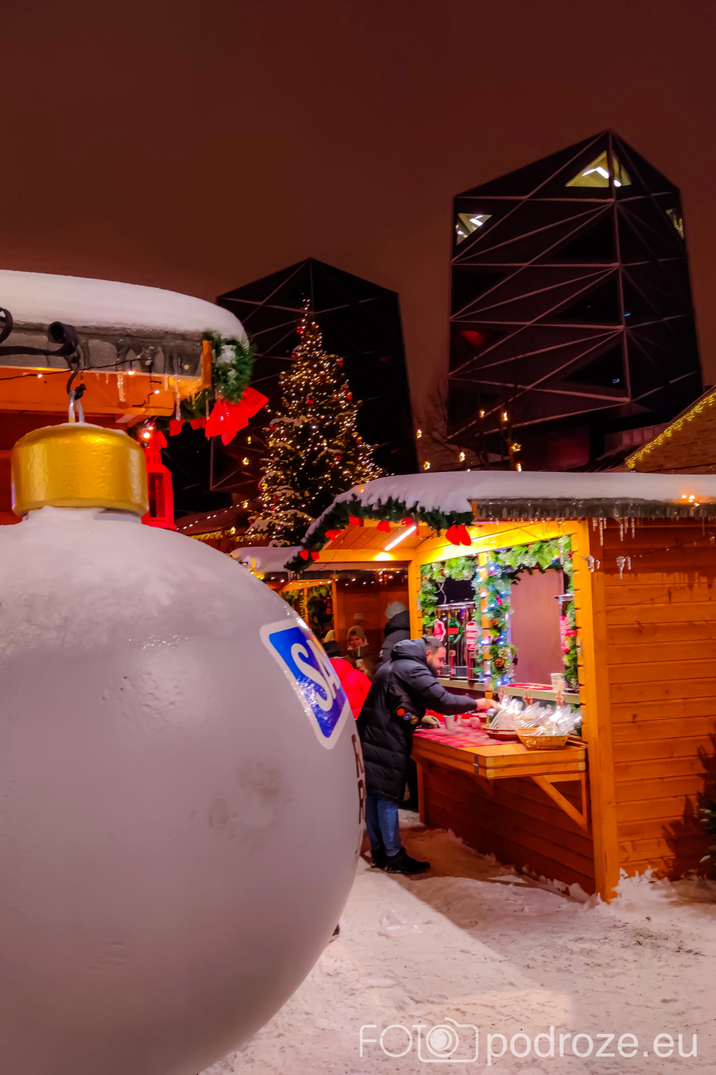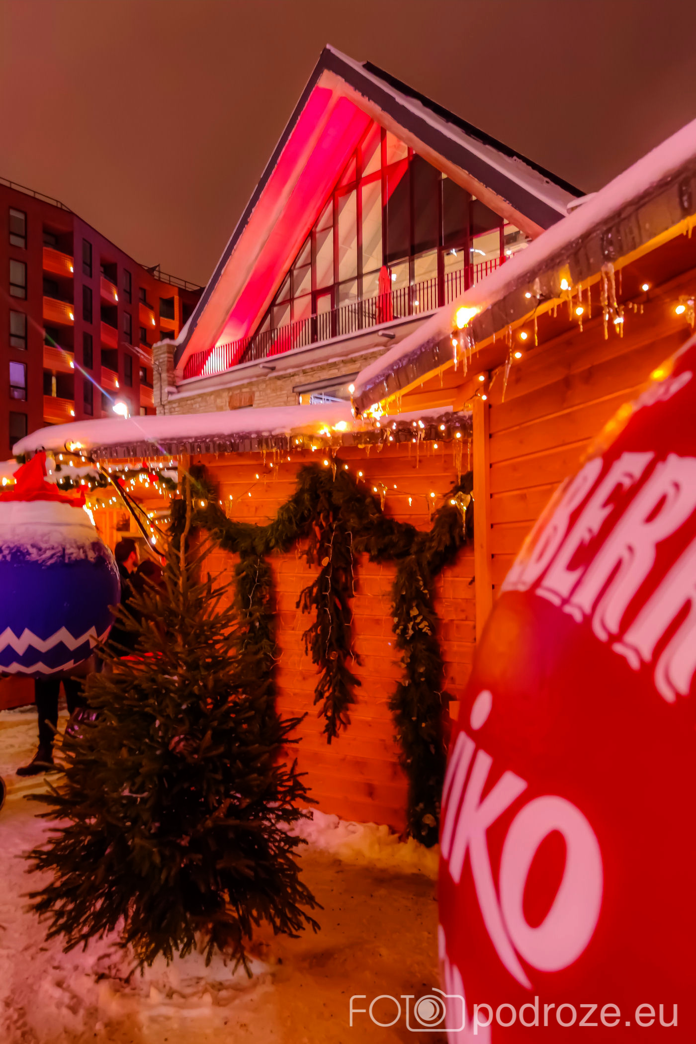 Jak się okazuje, jarmark na rynku nie jest jedynym jarmarkiem jaki odbywa się w Tallinie. Równolegle podobny, choć dużo mniejszy możemy odwiedzić w ciekawym Kwartale Rotermanna w DZIELNICY SADAMA. Tu na centralnym placu obok kina znajduje się kilkanaście budek ustrojonych ogromnymi bombkami, piękna choinka, scena na której odbywają się koncerty i oczywiście znowu muzyka i odpowiedni nastrój.