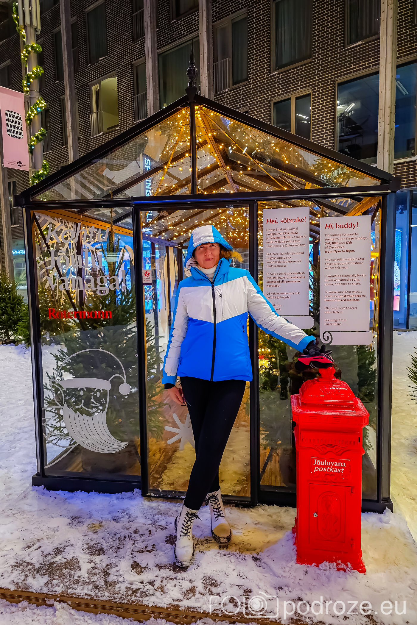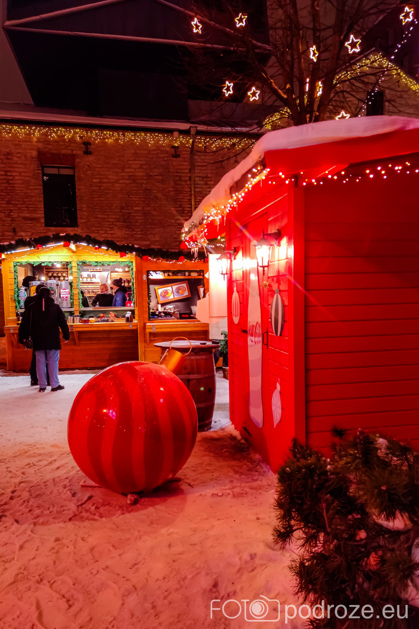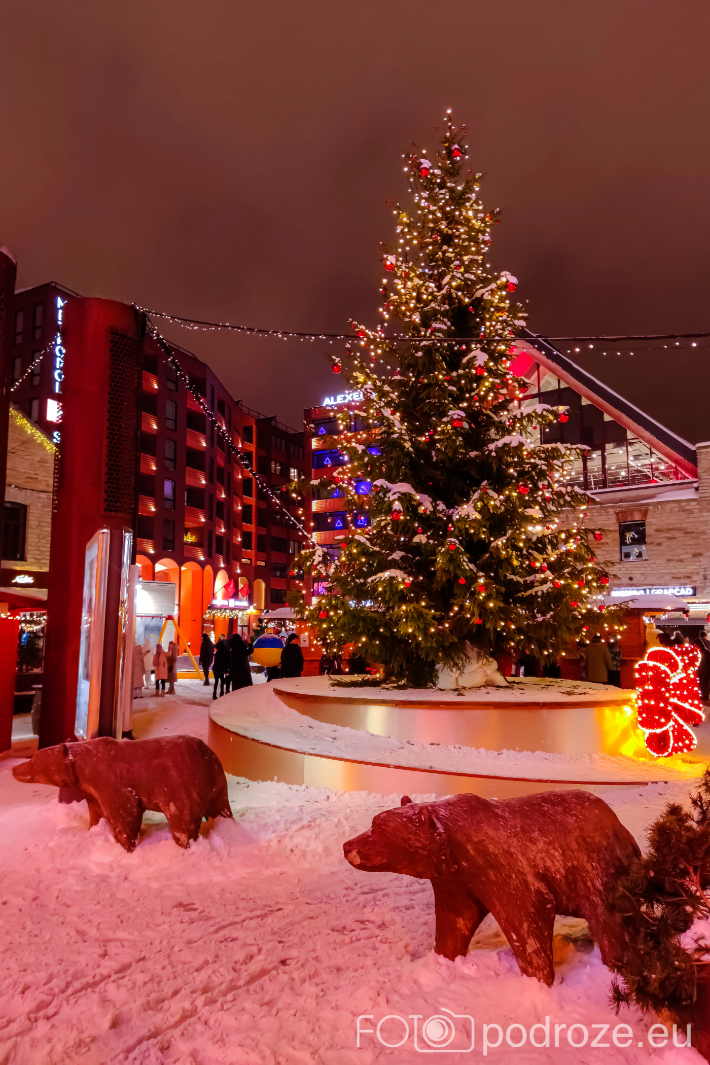Jak się okazuje, jarmark na rynku nie jest jedynym jarmarkiem jaki odbywa się w Tallinie. Równolegle podobny, choć dużo mniejszy możemy odwiedzić w ciekawym Kwartale Rotermanna w DZIELNICY SADAMA. Tu na centralnym placu obok kina znajduje się kilkanaście budek ustrojonych ogromnymi bombkami, piękna choinka, scena na której odbywają się koncerty i oczywiście znowu muzyka i odpowiedni nastrój.
