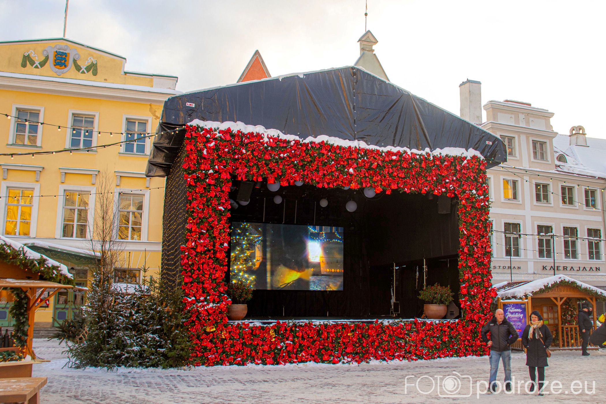 Po wschodniej stronie rynku ustawiona jest ogromna scena, pięknie przyozdobiona kokardkami. Odbywają się tu różne koncerty, ale jeśli akurat ich nie ma, to można obejrzeć na wielkim ekranie piękne filmy będące przewodnikami po Tallinie.