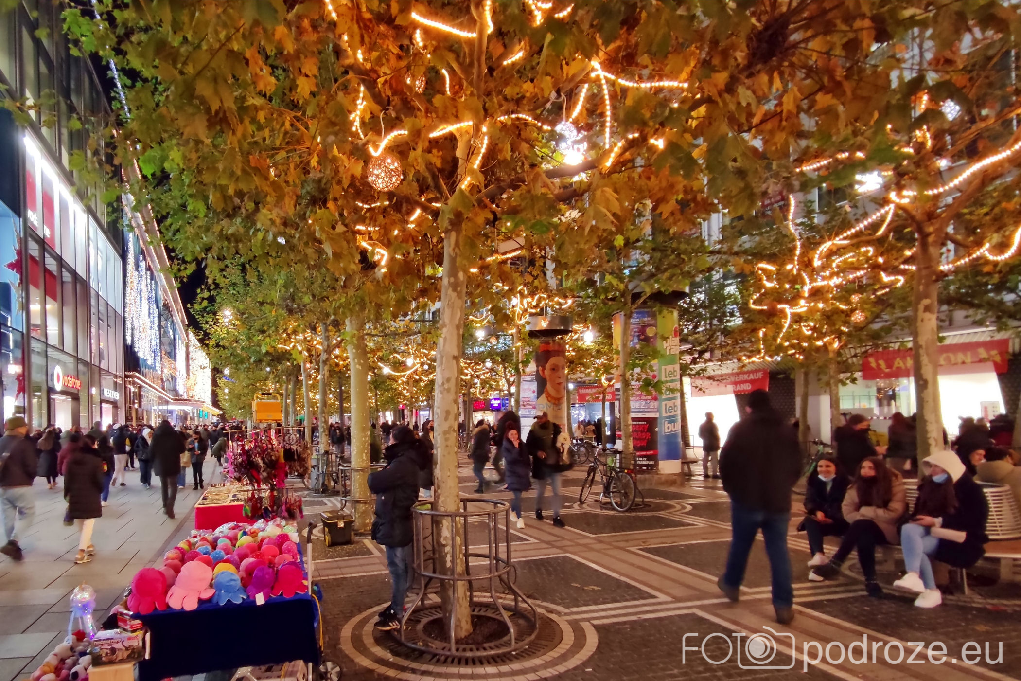 Jak każde miasto , nie tylko rejon w którym rozłożony jest jarmark przyozdobione jest światełkami. Frankfurt nie ma zbyt wielu takich miejsc, zauważyliśmy tylko główną handlową ulicę z dekoracjami. Ale może za dużo oczekujemy ?