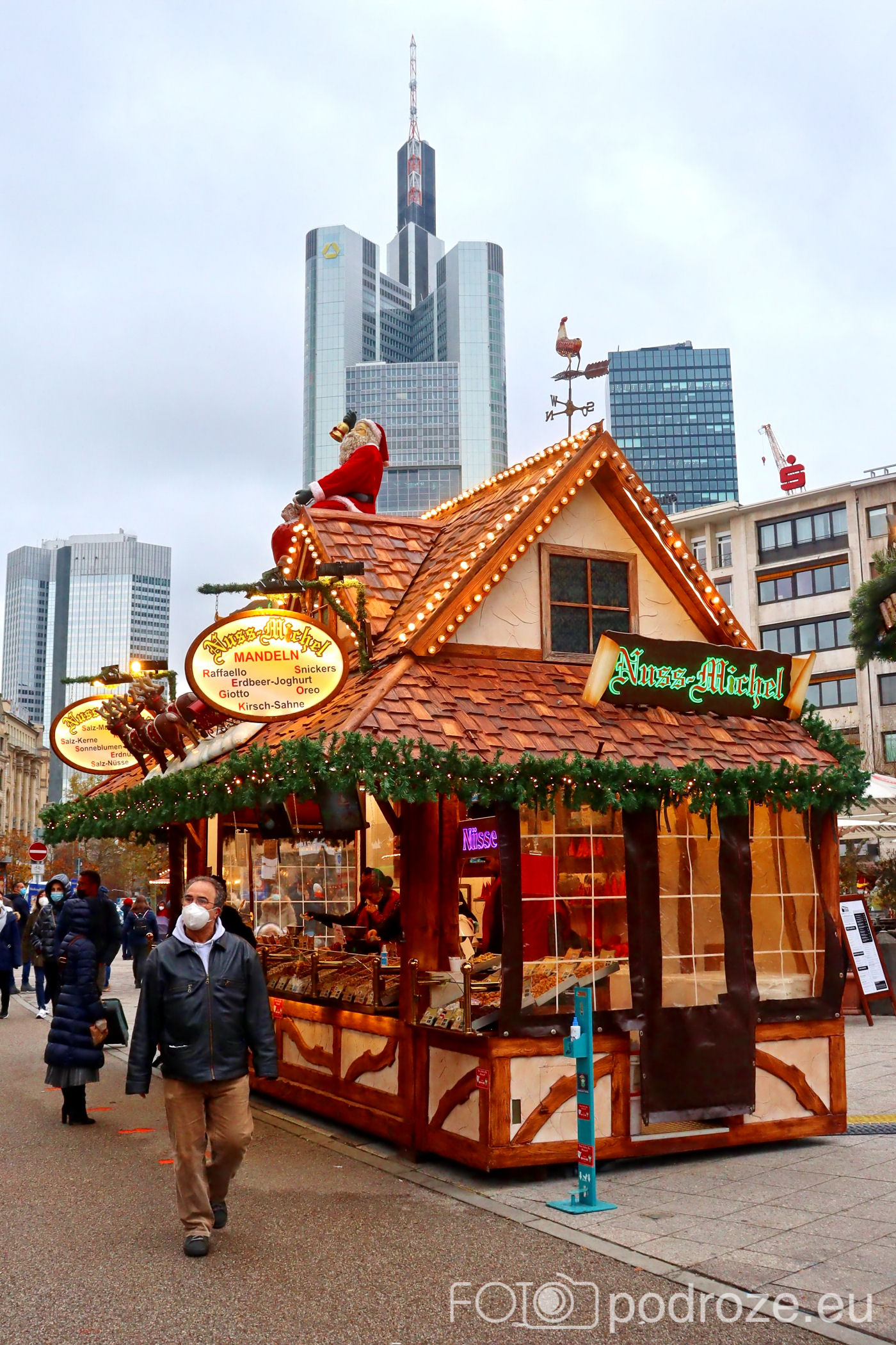 My przylecieliśmy do Frankfurtu na prawie 3 doby w 2021 roku. Mieliśmy ogromne szczęście, bo pandemia rozlała się kolejną falą po Europie i większość jarmarków zostało odwołanych. Ten na szczęście się odbył, ale przyszło nam się zmierzyć z masą ograniczeń jak całkowity nakaz noszenia maseczek na terenie jarmarku oraz okazywanie paszportów covidowych w II strefach.