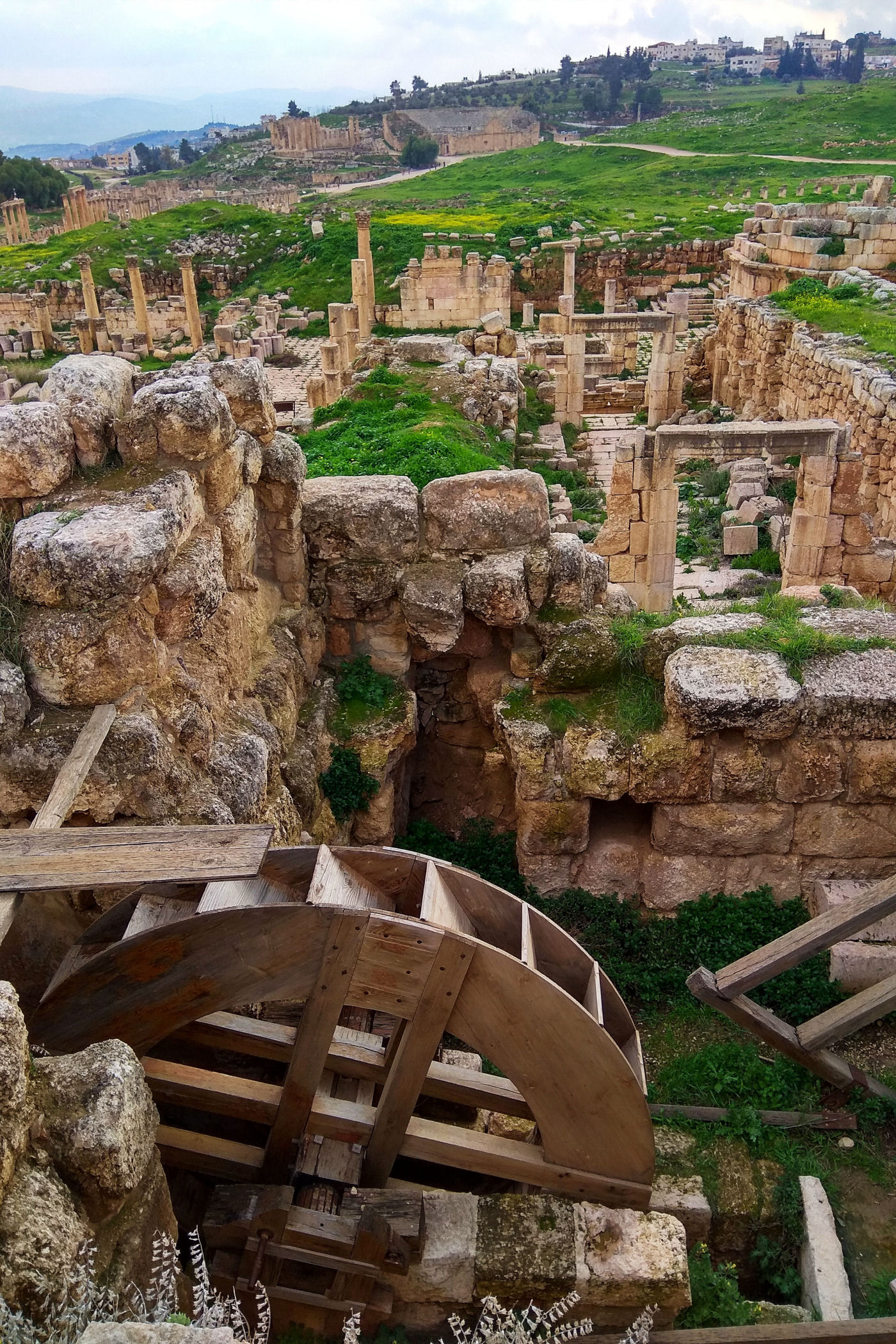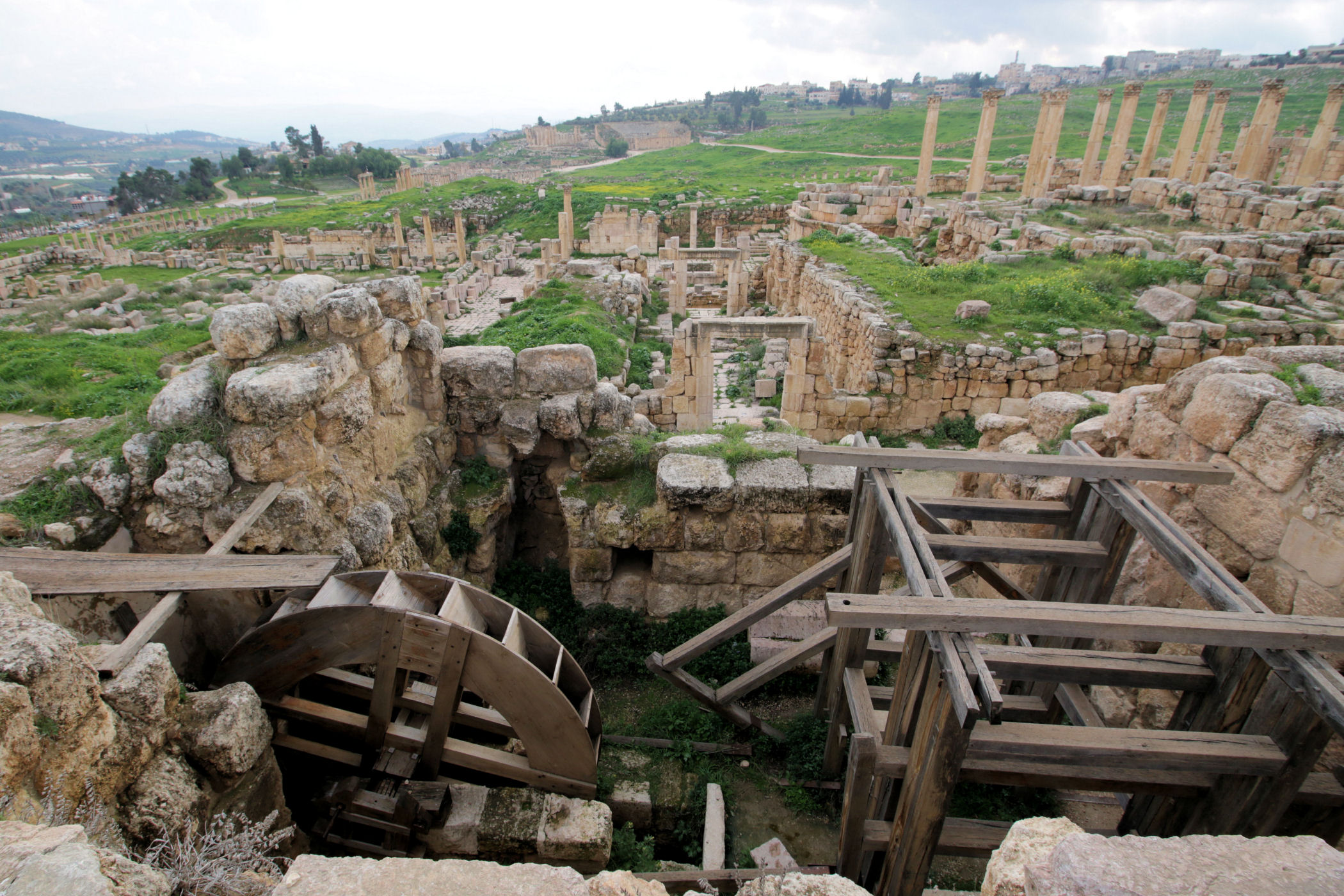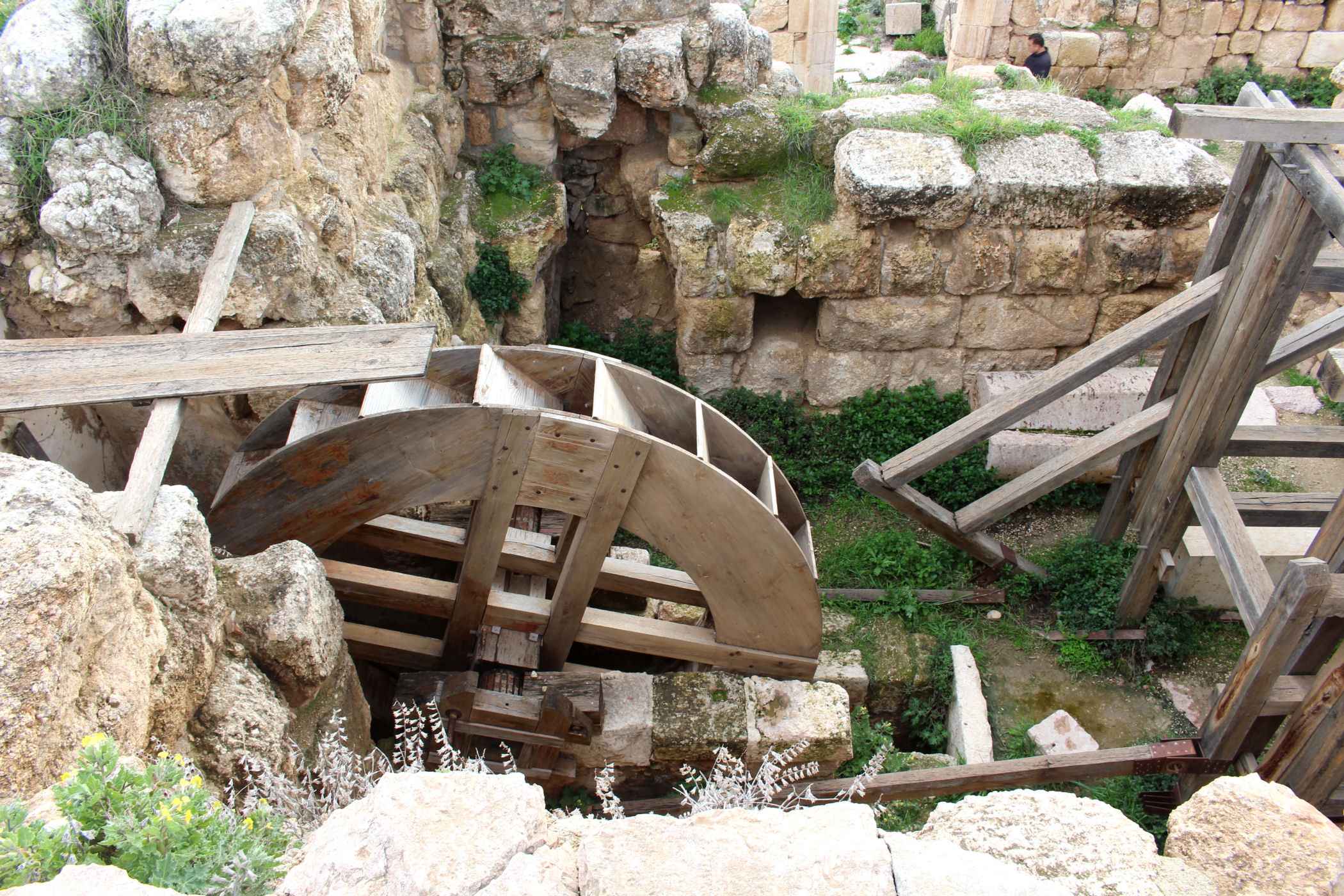 Tuż za Nimfeum znajduje się niezwykła rzecz. To piła kamienna z napędem wodnym uznawana za najstarszą maszynę tego typu na świecie z 550 roku. To, co można zobaczyć obecnie to replika przygotowana we Francji i zmontowana w Jerash.
