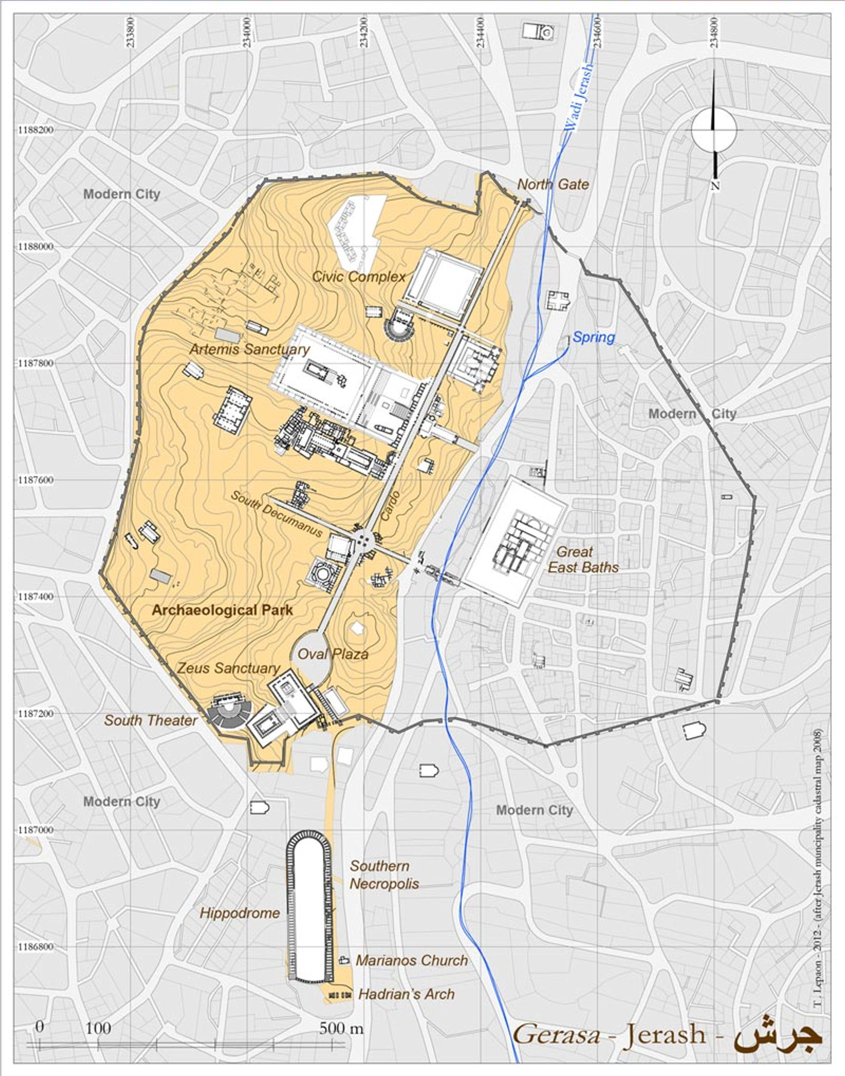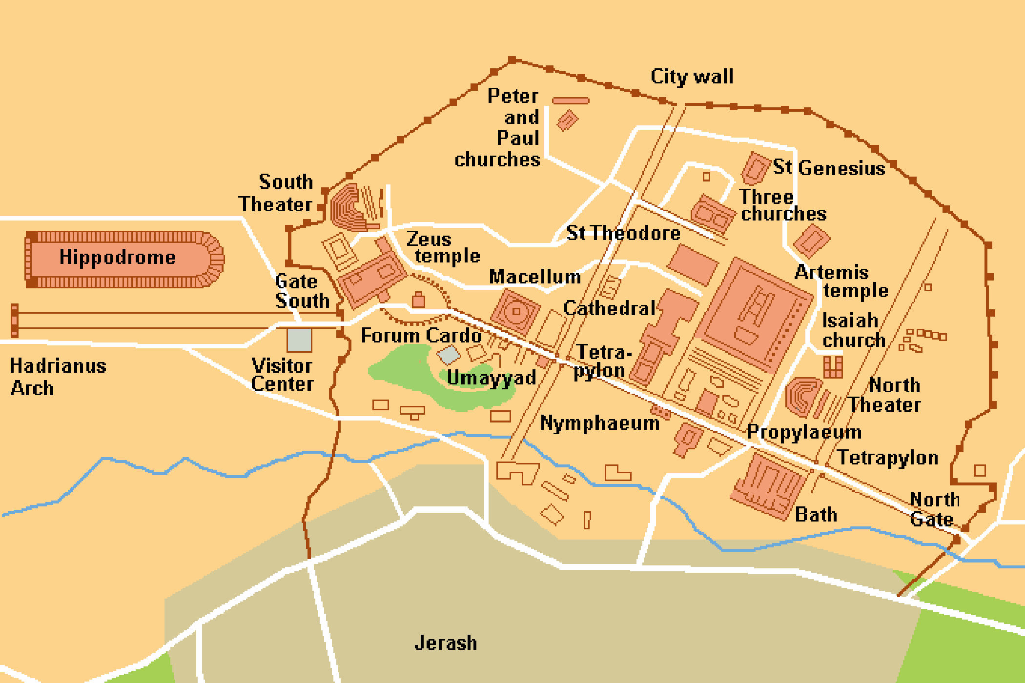 Jerash założone zostało w IV w. p.n.e. przez Aleksandra Wielkiego, ale dopiero za czasów panowania Rzymian przeżywało największy rozkwit. Wtedy też zbudowano wiele budowli, które przetrwały do dzisiaj. Ważnym elementem historii był okres panowania bizantyjskiego. Wiarą przodująca było wówczas chrześcijaństwo i w mieście zbudowanych zostało kilkanaście świątyń tego wyznania.