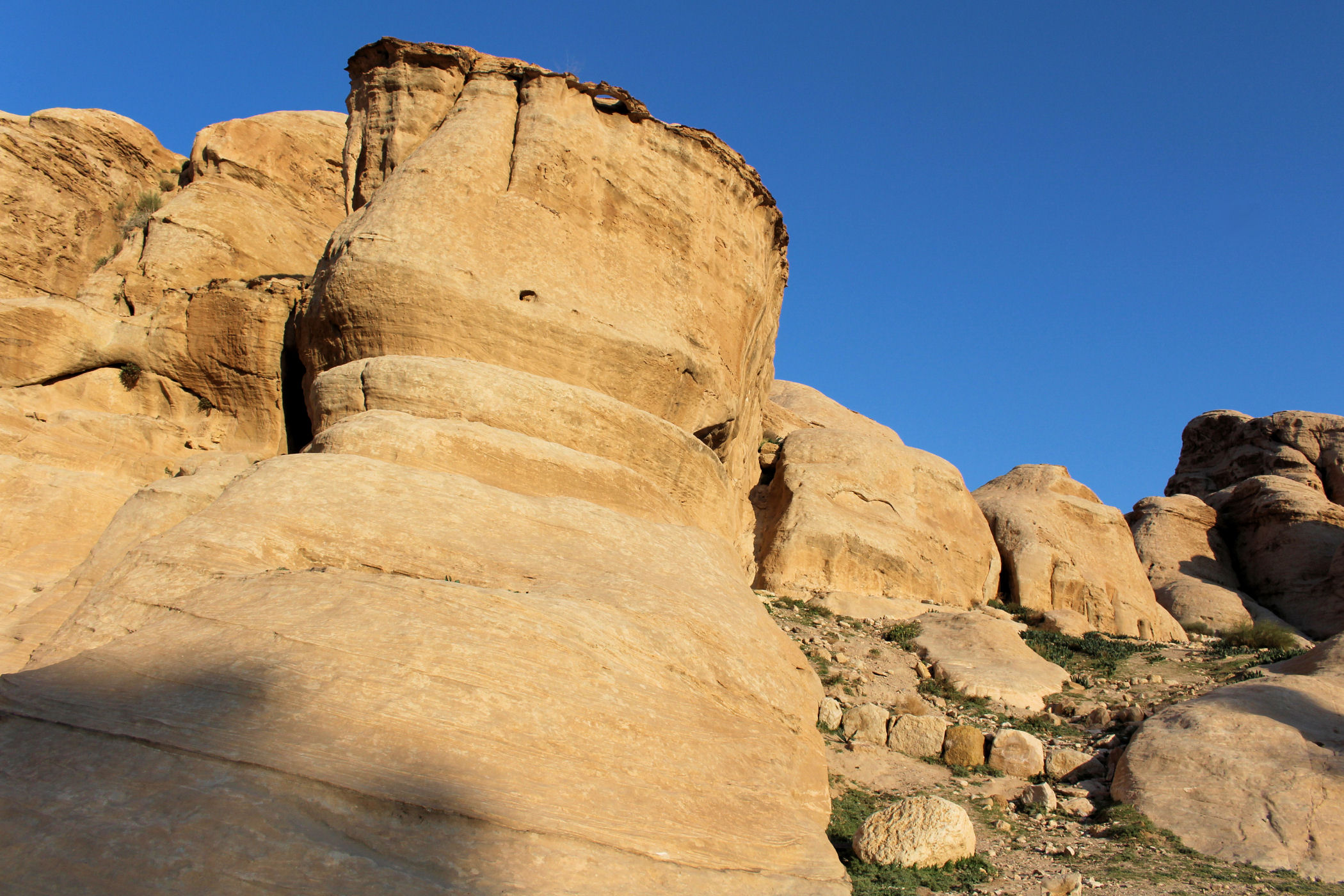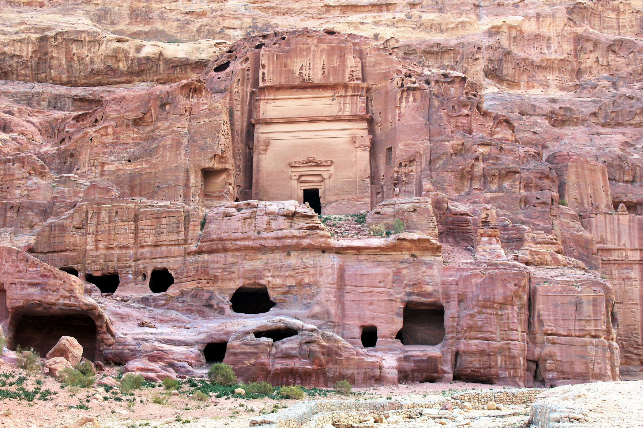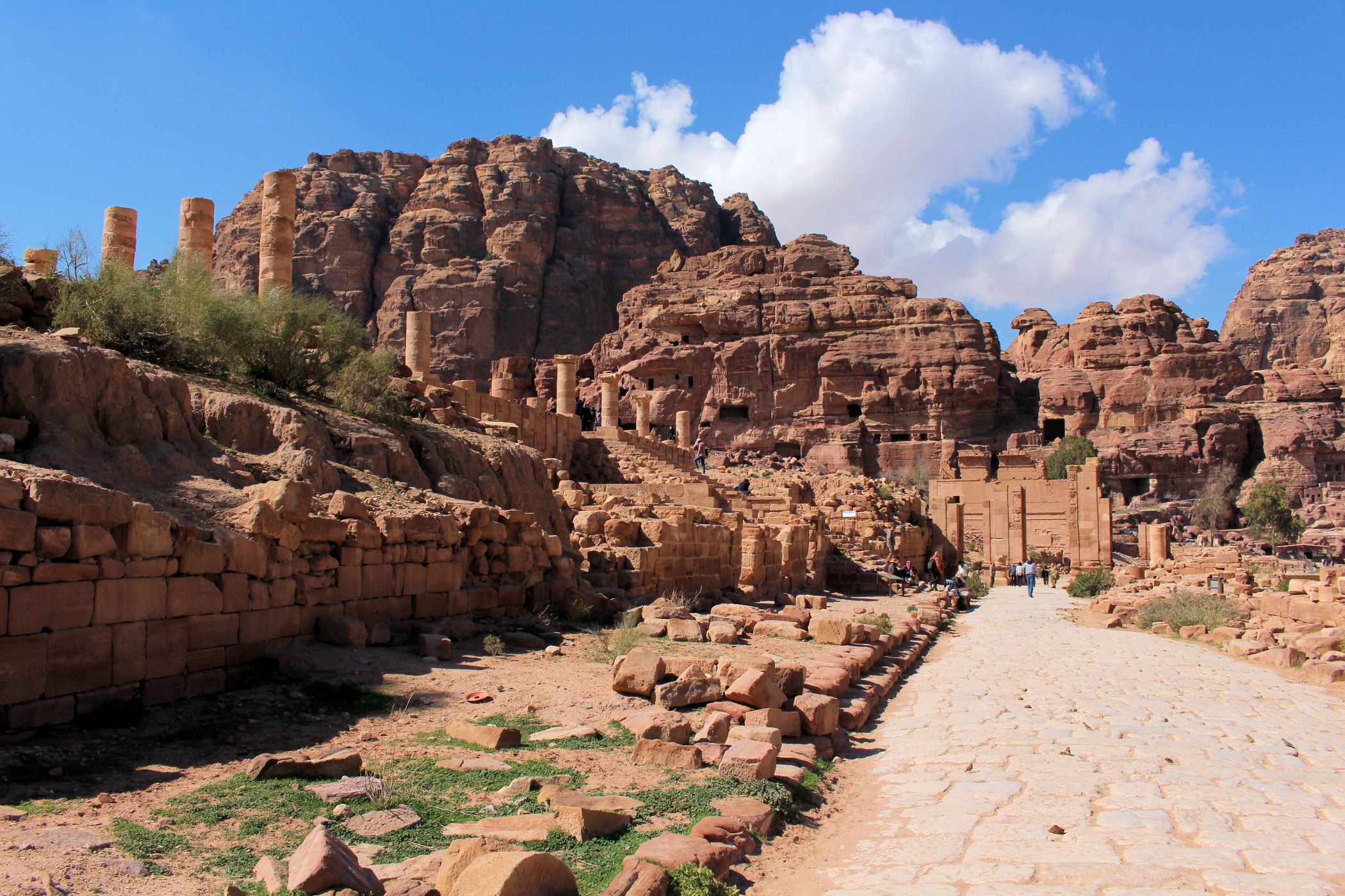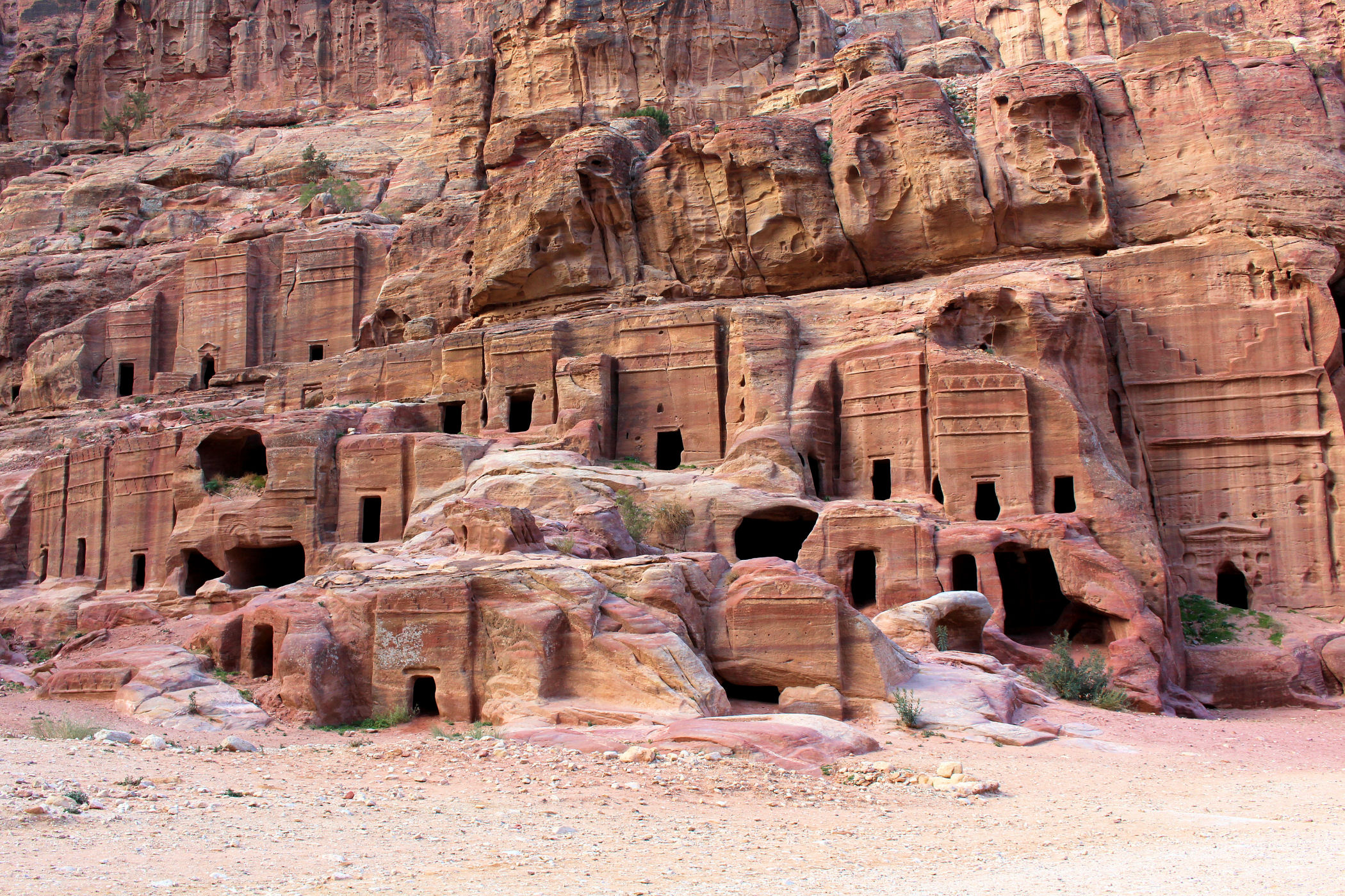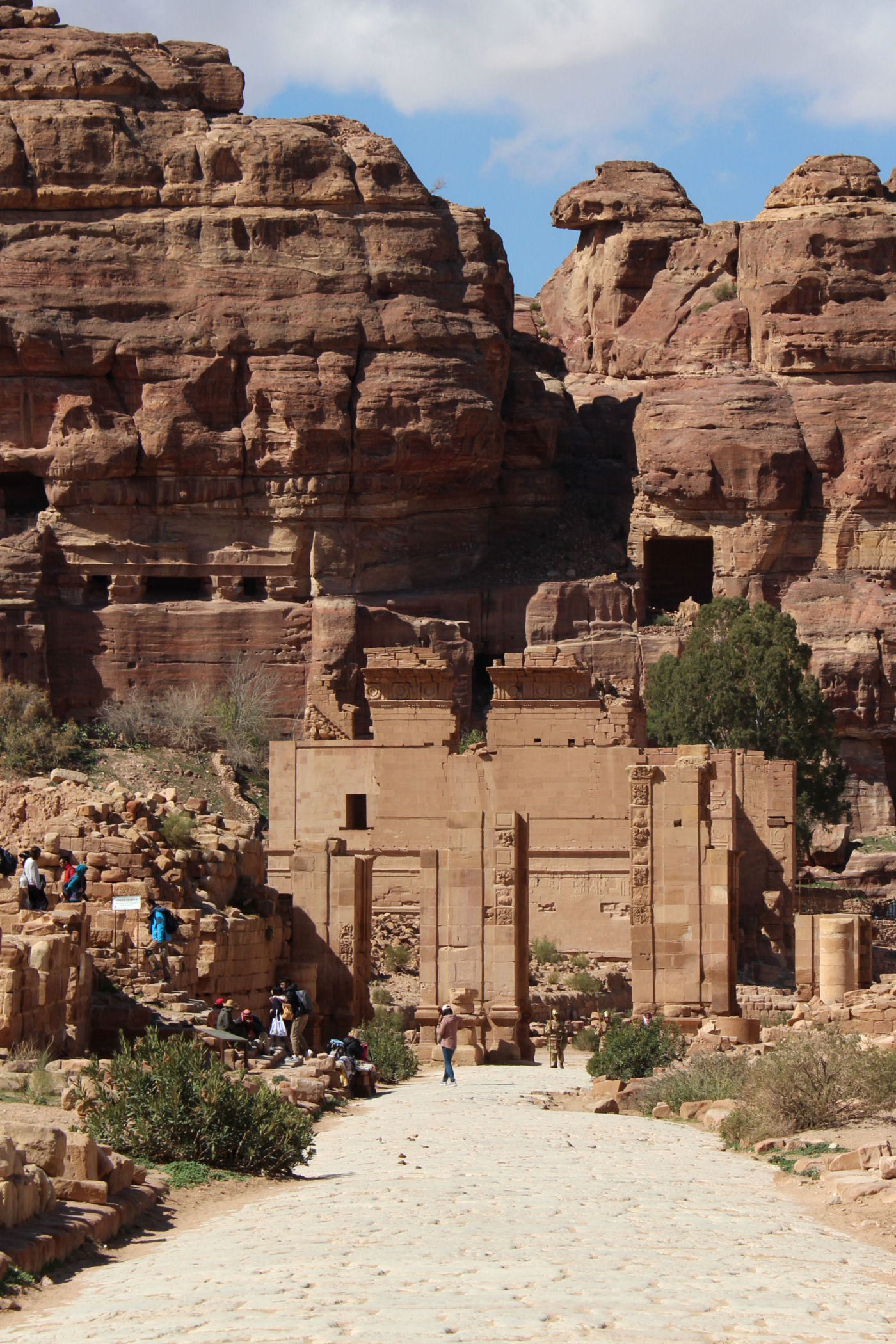 Tuż za Skarbcem skręcamy w Ulicę Fasad, która ciągnie się przez 0,5 km. Tu skalny wąwóz zupełnie się otwiera. Po lewej stronie zaczyna się (lub kończy) szlak prowadzący na szczyt Dżabal Madbah, który opisuję TUTAJ. Ulica fasad to 44 fasady grobowców, wykute w czterech rzędach. Grobowce pochodzą z początków świetności Petry. Najwięcej grobowców jest prostych, pylonowych z rzędami tzw. fryzu blankowego. Nieliczne są schodkowe oraz rzadko spotykane grobowce łukowe. Mają czyste nabatejskie formy, bez zapożyczeń z innych stylów. Kawałek dalej, znajduje się grupa kolejnych 31 grobowców, wykutych wzdłuż dwóch ciągów. Dla zainteresowanych tą częścią skalnego miasta – ciekawe opracowanie znalazłam TUTAJ .