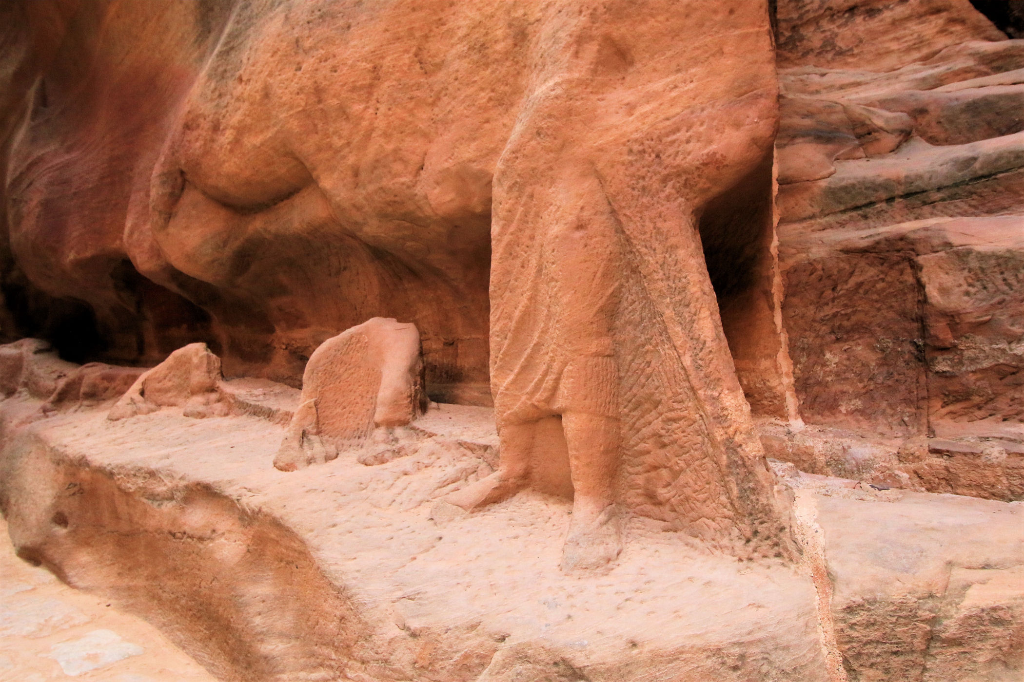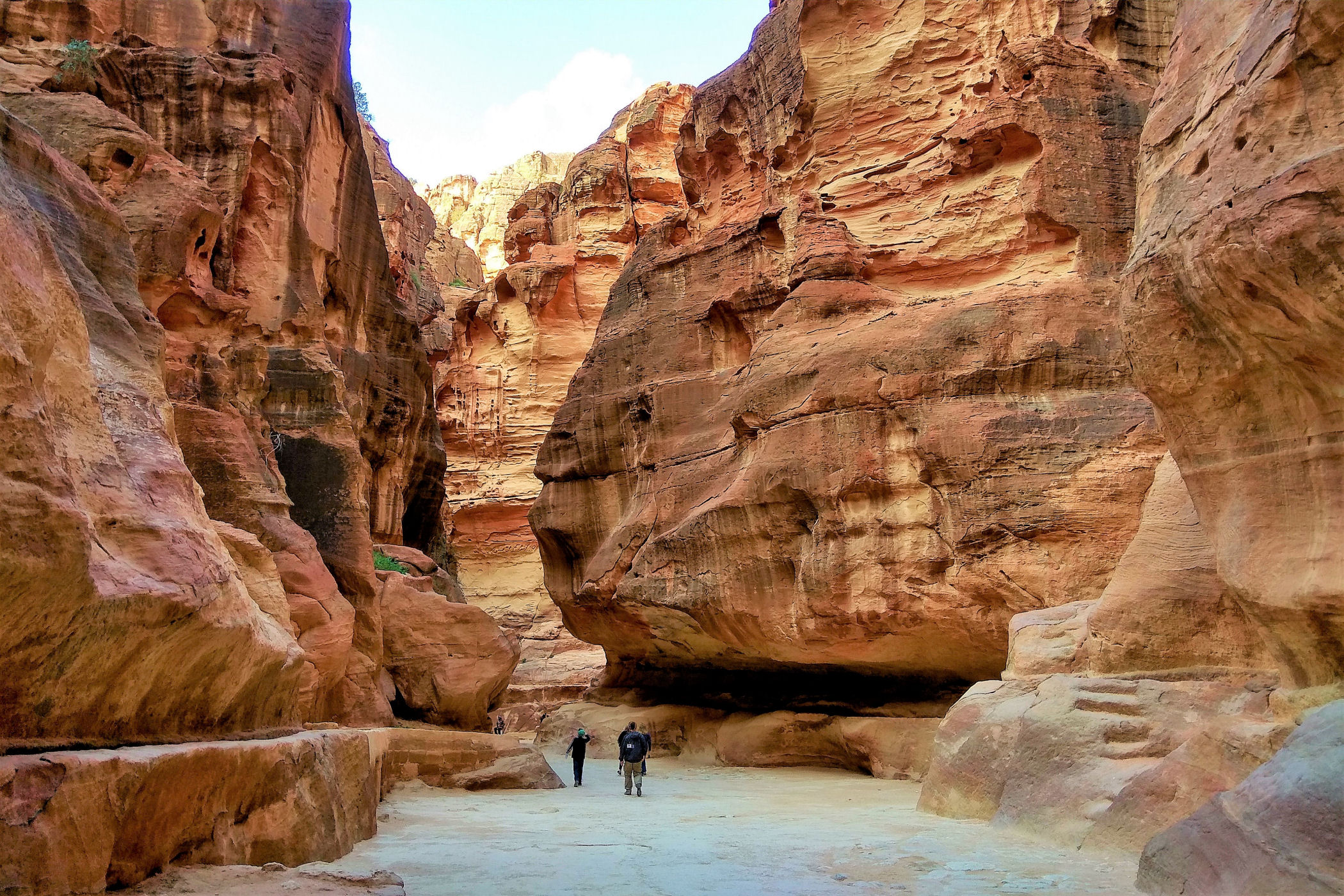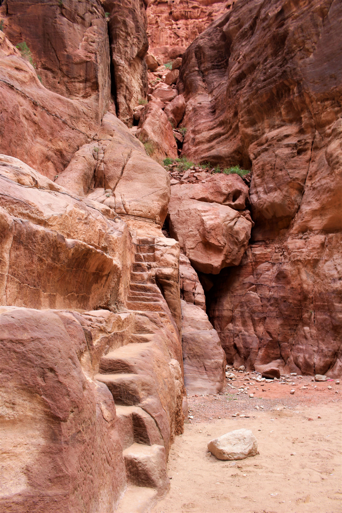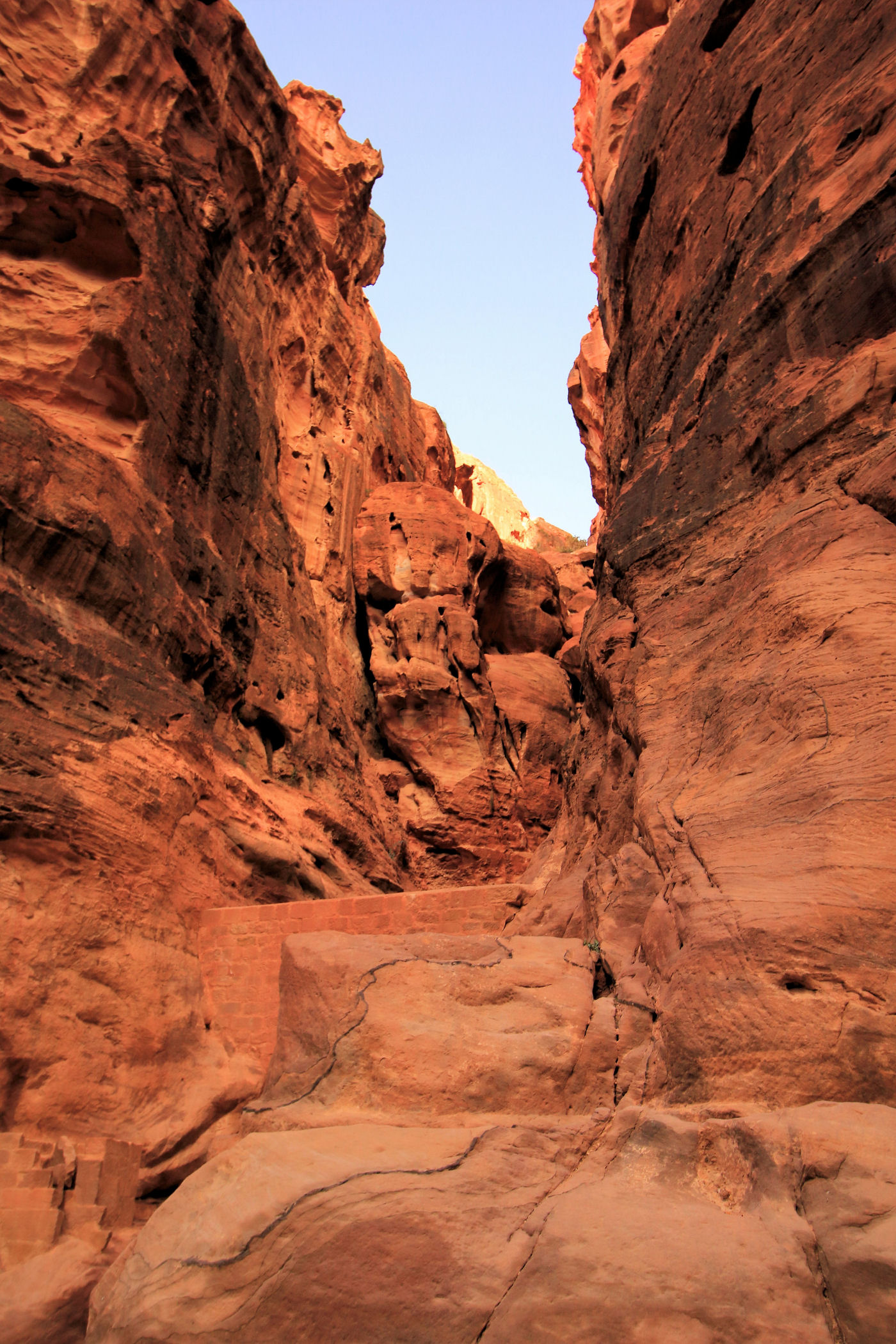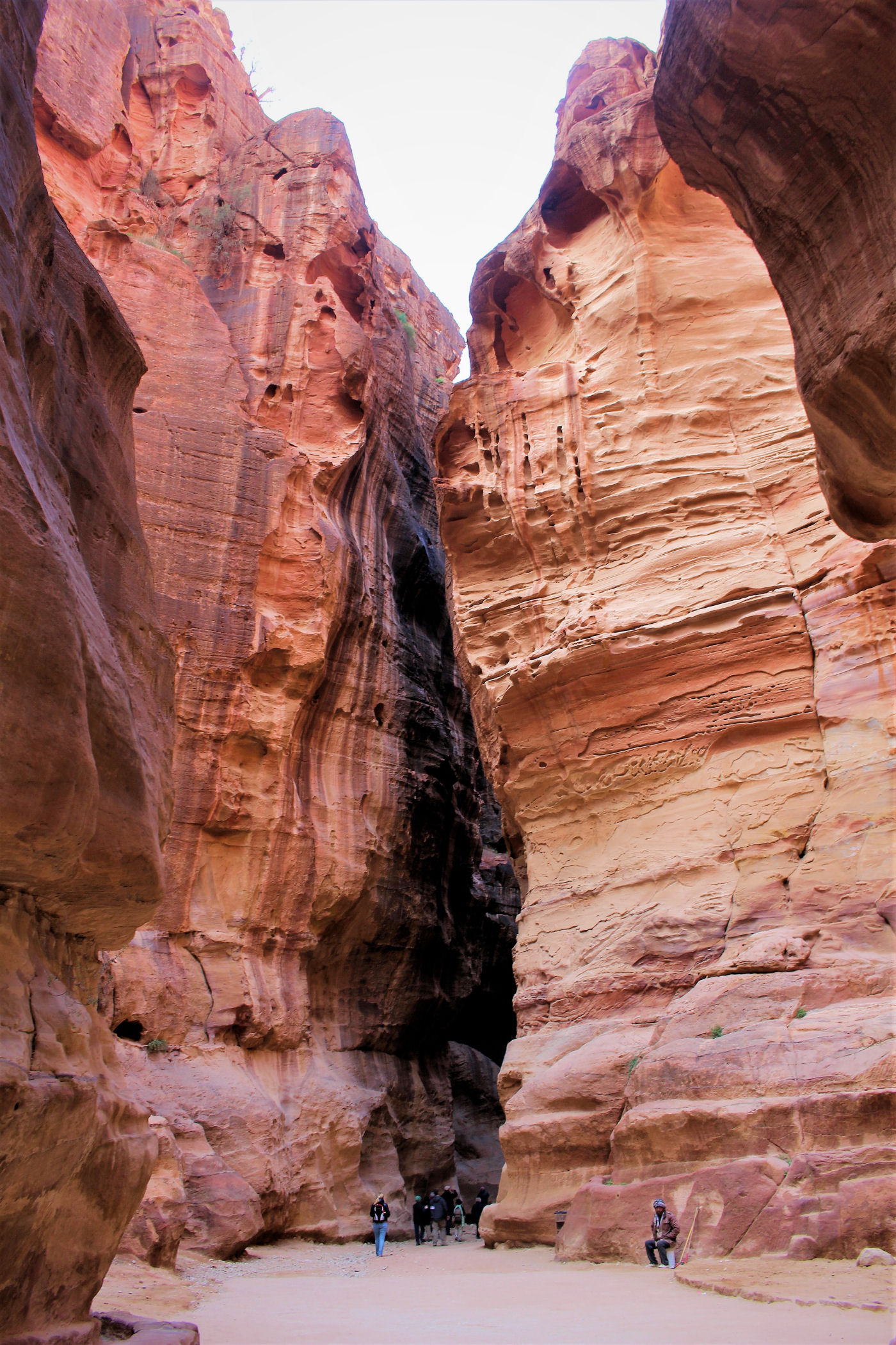 Mniej więcej 1,5 kilometra dalej droga nagle zwęża się i wchodzimy w krainę bajecznego czerwonego kanionu. Jego długość to około 1 km. Po obu stronach otoczony jest strzelistymi klifami o wysokości do 80 metrów. Kanion ma unikalny geologicznie krajobraz na świecie. Wyrzeźbiona z bladoczerwonego piaskowca wschodnia strona tego obszaru jest ograniczona murem królewskim. Gdy docieramy do końca Siq, przez wąską szczelinę ukazuje nam się słynny Skarbiec.