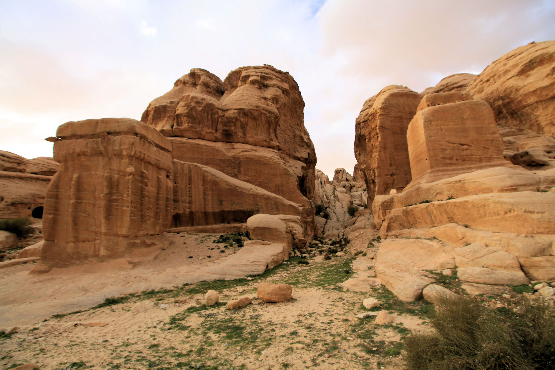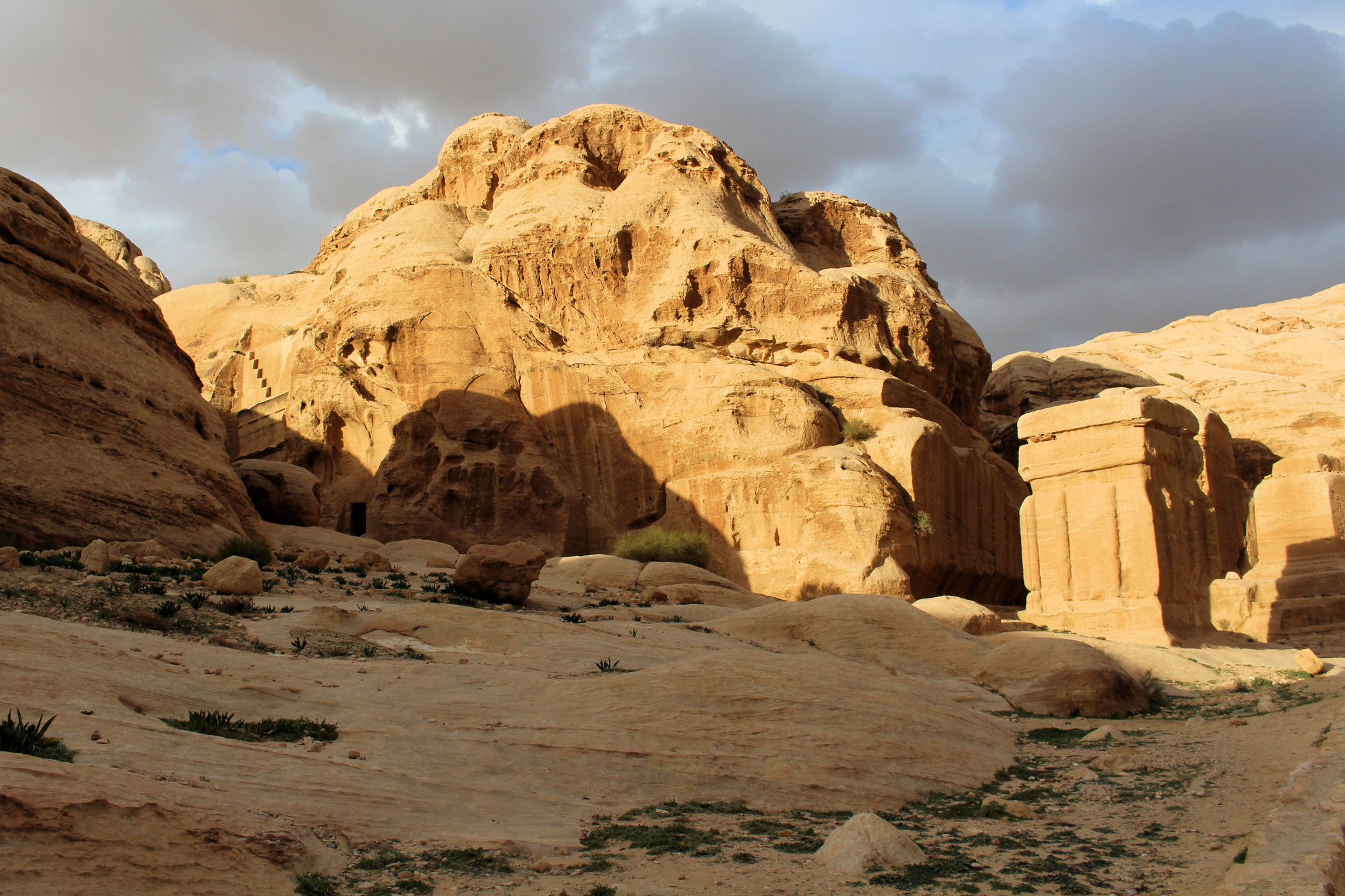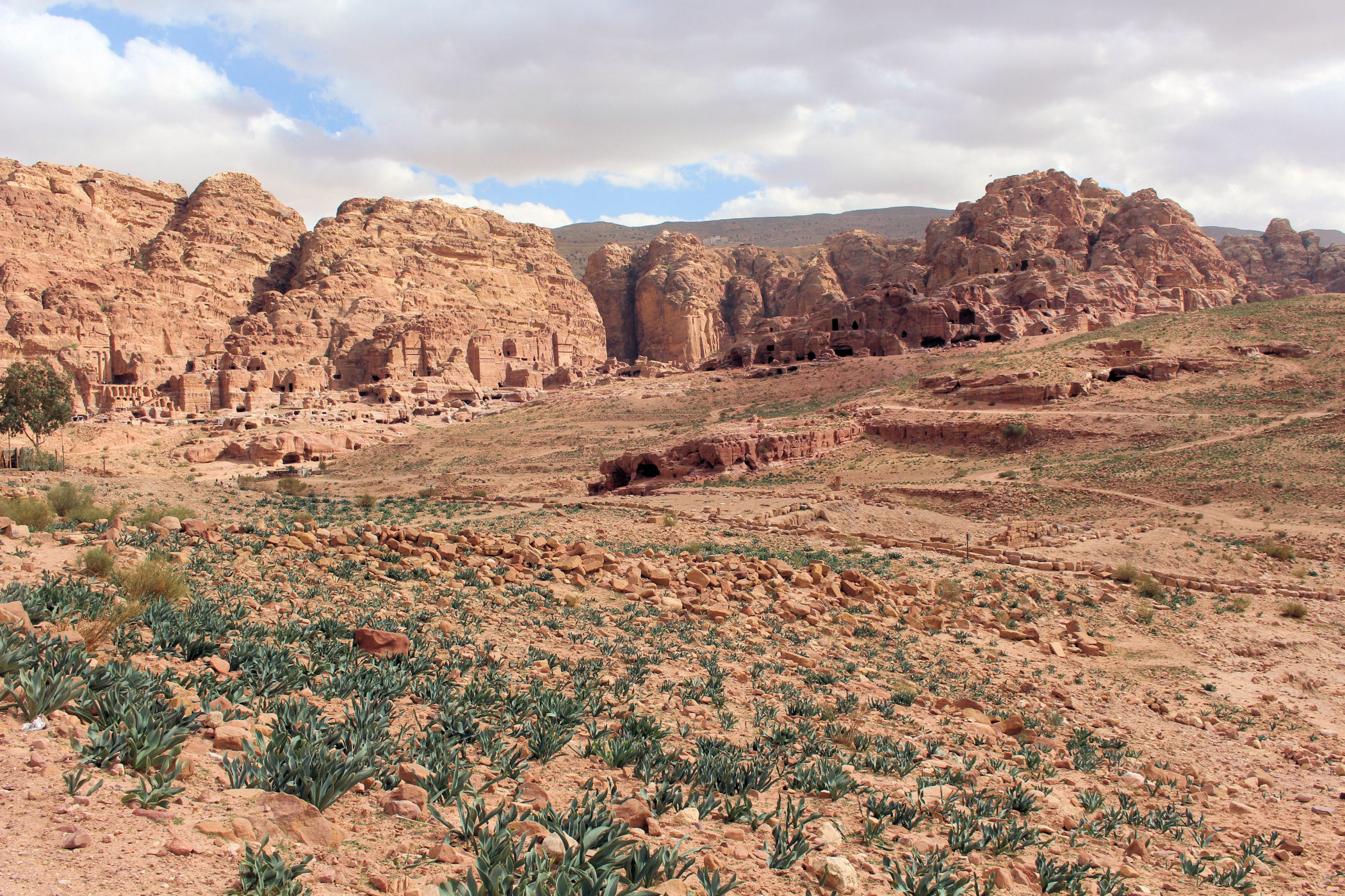 To jeszcze nie koniec ciekawych obiektów w Dolinie Petry. Po drugiej stronie koryta Wadi Musa , naprzeciwko Świątyni znajdują się jeszcze inne obiekty. Miejsce jest dość niepozorne, wszystkie obiekty wznoszą się na zboczu niewielkiego wzgórza. Nie poświęcamy na nie zbyt wiele czasu. Na naszych zdjęciach nie ma więc wszystkich obiektów. Za to fantastyczne są stąd widoki na całą Dolinę Petry. Mamy tu kolejno: