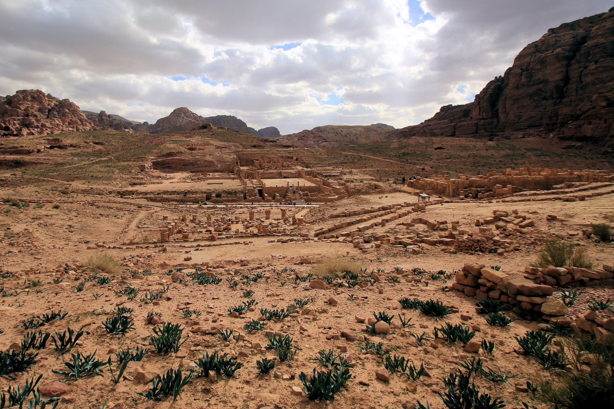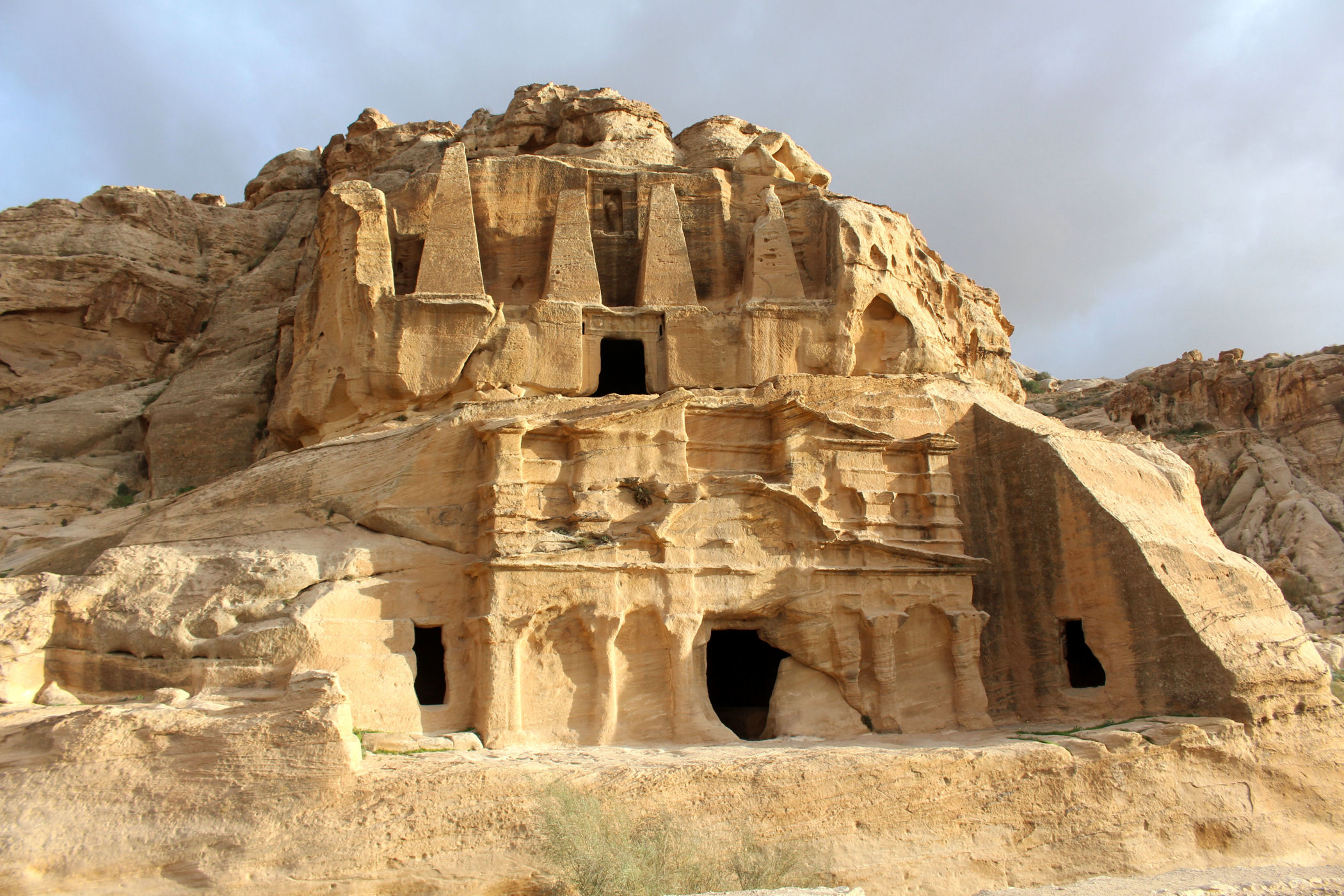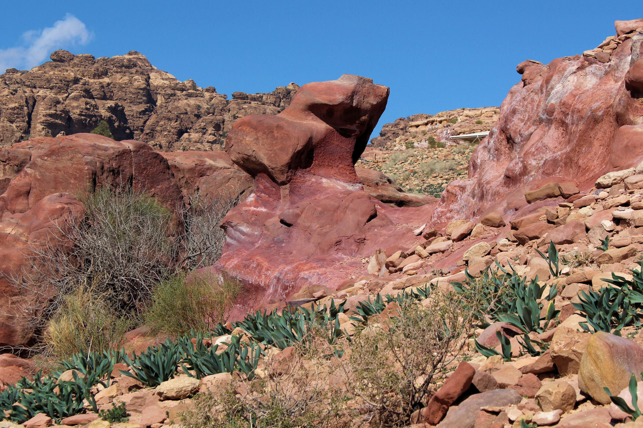 To jeszcze nie koniec ciekawych obiektów w Dolinie Petry. Po drugiej stronie koryta Wadi Musa , naprzeciwko Świątyni znajdują się jeszcze inne obiekty. Miejsce jest dość niepozorne, wszystkie obiekty wznoszą się na zboczu niewielkiego wzgórza. Nie poświęcamy na nie zbyt wiele czasu. Na naszych zdjęciach nie ma więc wszystkich obiektów. Za to fantastyczne są stąd widoki na całą Dolinę Petry. Mamy tu kolejno: