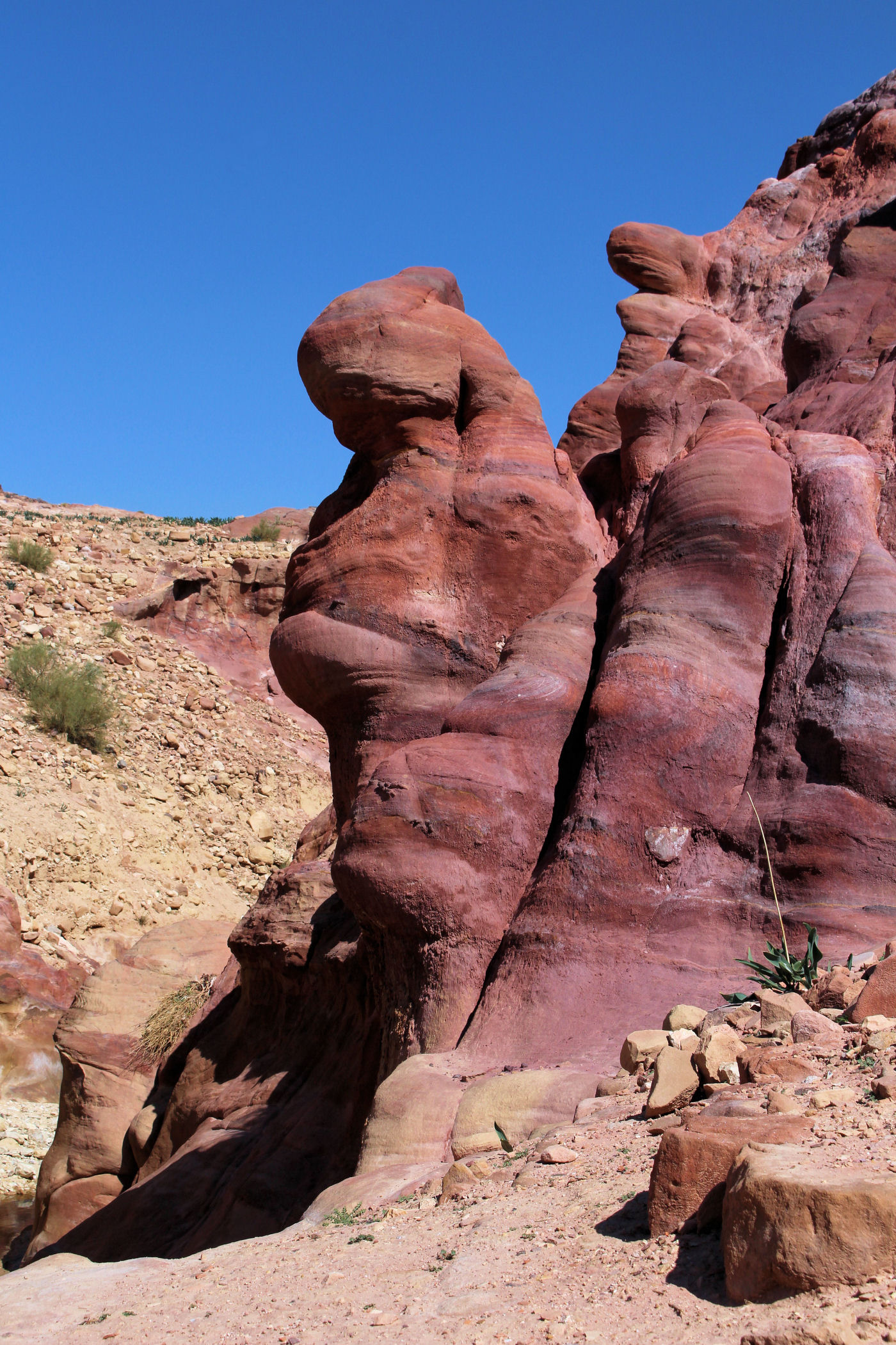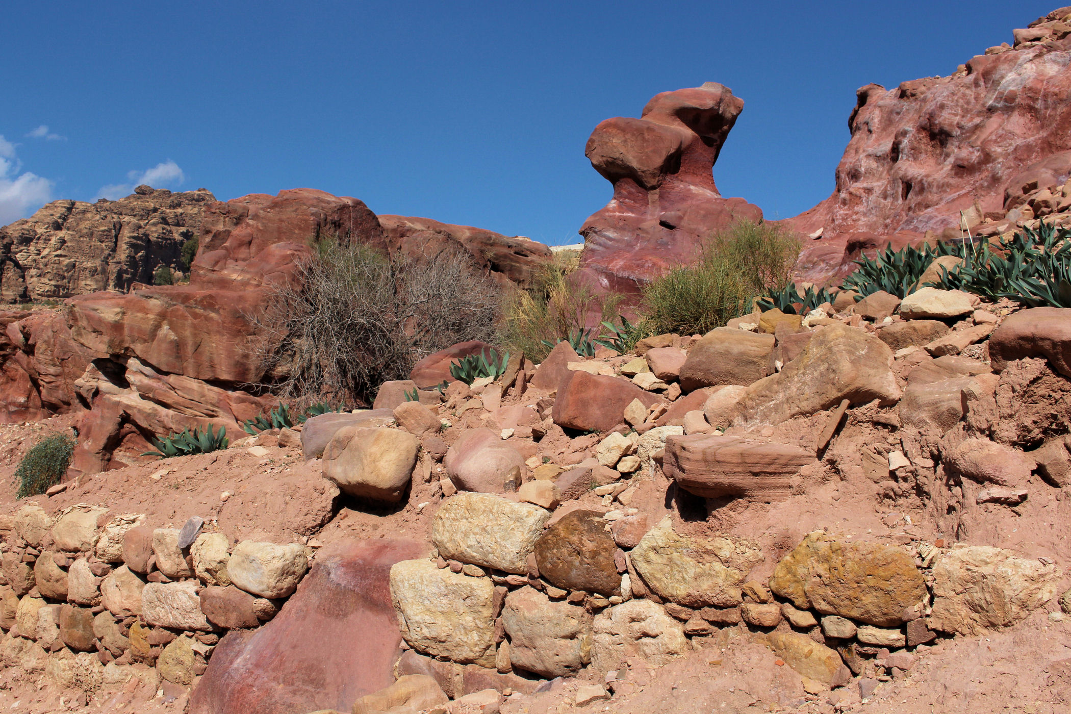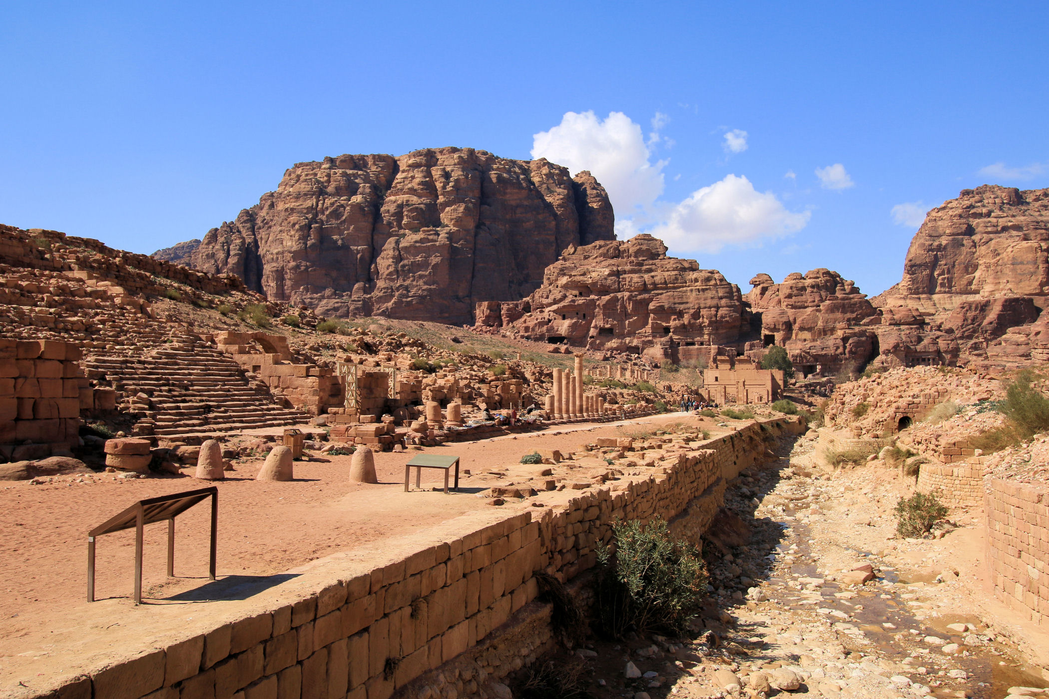 Ulicę Fasad kończy niepozorna budowla – Nymphaeum, a właściwie ruiny po dość ciekawym budynku. Znajdował się on u zbiegu dwóch cieków wodnych i jest pozostałością po rzymskiej aneksji. Była to półkolista fontanna publiczna, z której praktycznie nic nie pozostało. Za to skały tuż za nią są najbardziej kolorowym miejscem w całej Petrze.