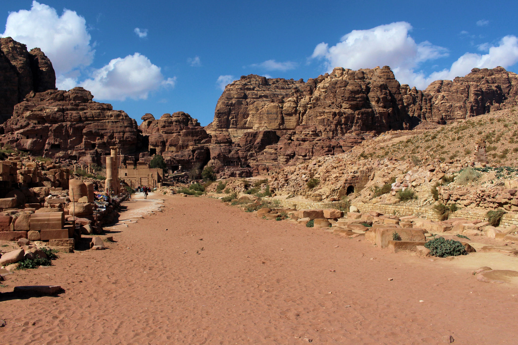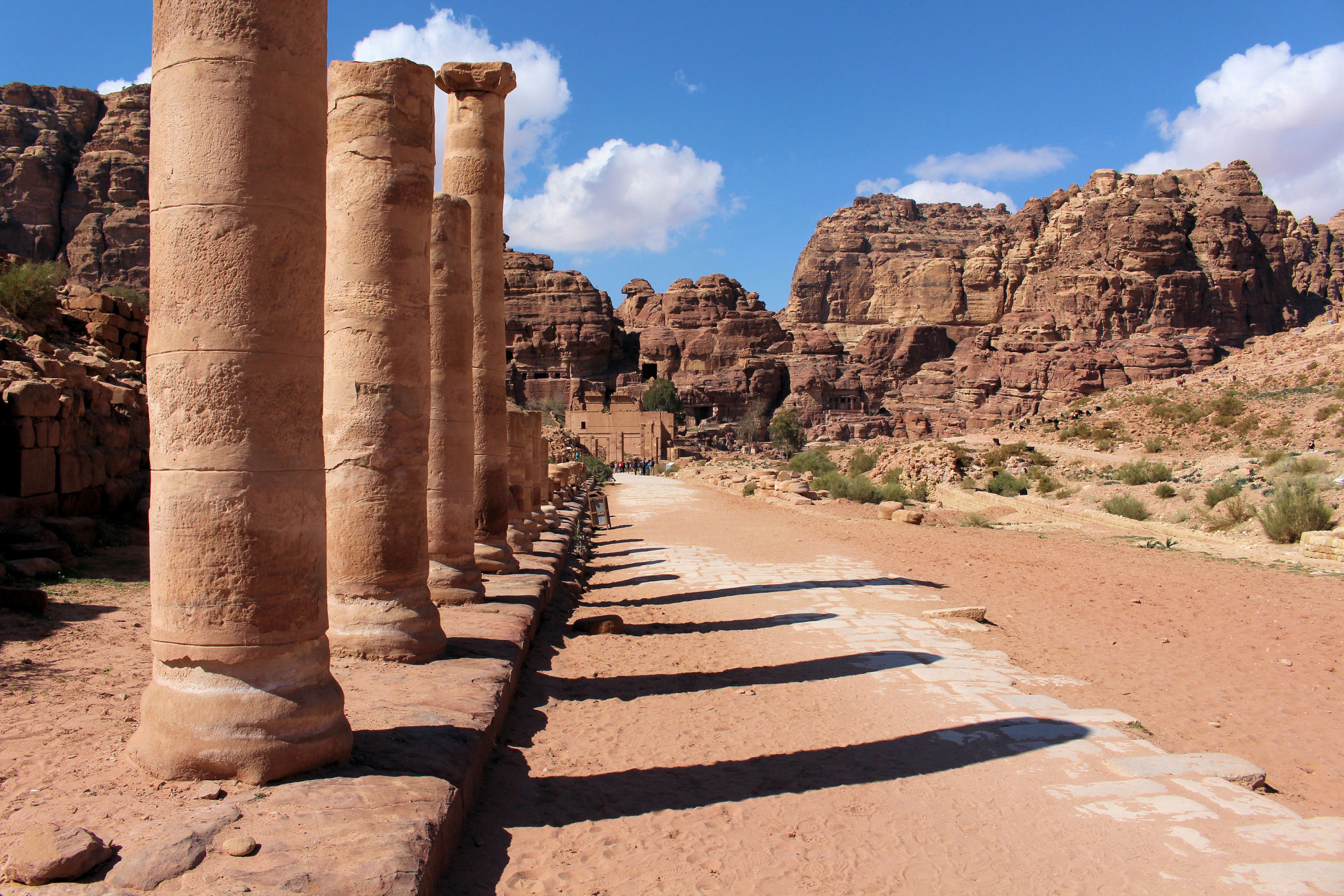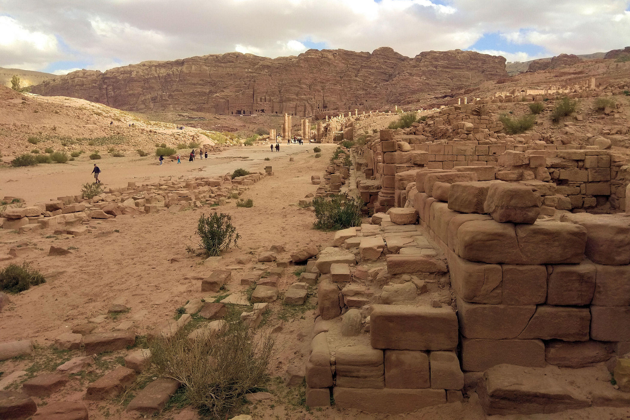 Tuż za Nymphaeum zaczyna się Ulica Kolumnowa. Ma 6 m szerokości i ok. 250 m długości. Ta główna ulica (inaczej Cardo) była wybrukowana płytami kamiennymi i pochodzi z I w. Po obu stronach ulicy zaprojektowane były chodniki, a na nich kolumny . Te, które widzimy obecnie to rekonstrukcja. Przy ulicy znajdują się schody prowadzace na Górny Rynek, a przy schodach zabudowania, które prawdopodobnie były sklepami. Naprzeciwko nich (wzdłuż drogi) znajduje się uregulowane koryto okresowej rzeki Wadi Musa, Tuż za korytem znajdują się ruiny bizantyńskiej twierdzy. Przechodzimy przez bramę, którą strzeże dwóch uzbrojonych strażników ( nie wyobrażam sobie ich latem na tej „patelni” w pełnym słońcu ) i tu kończy się Ulica Kolumnowa.