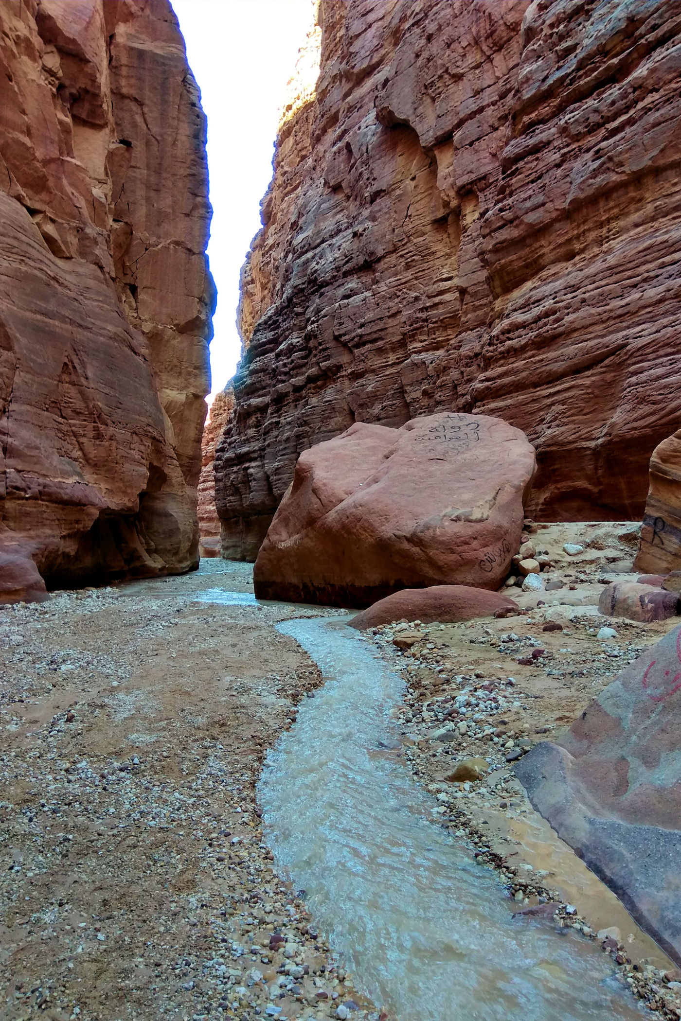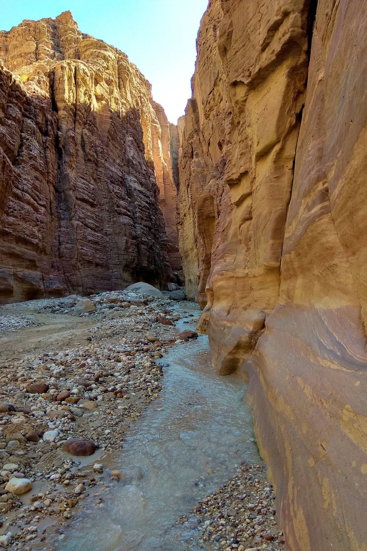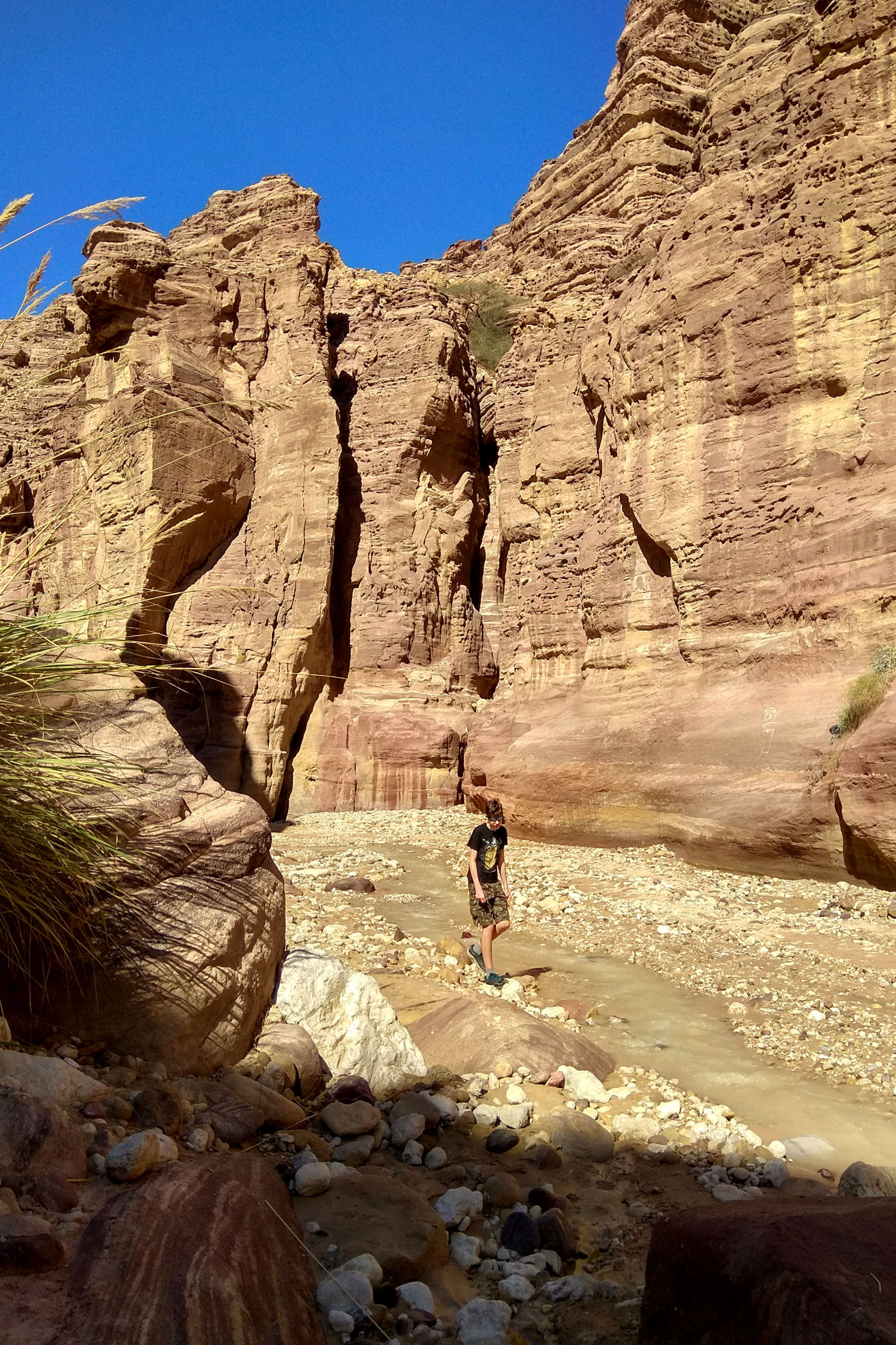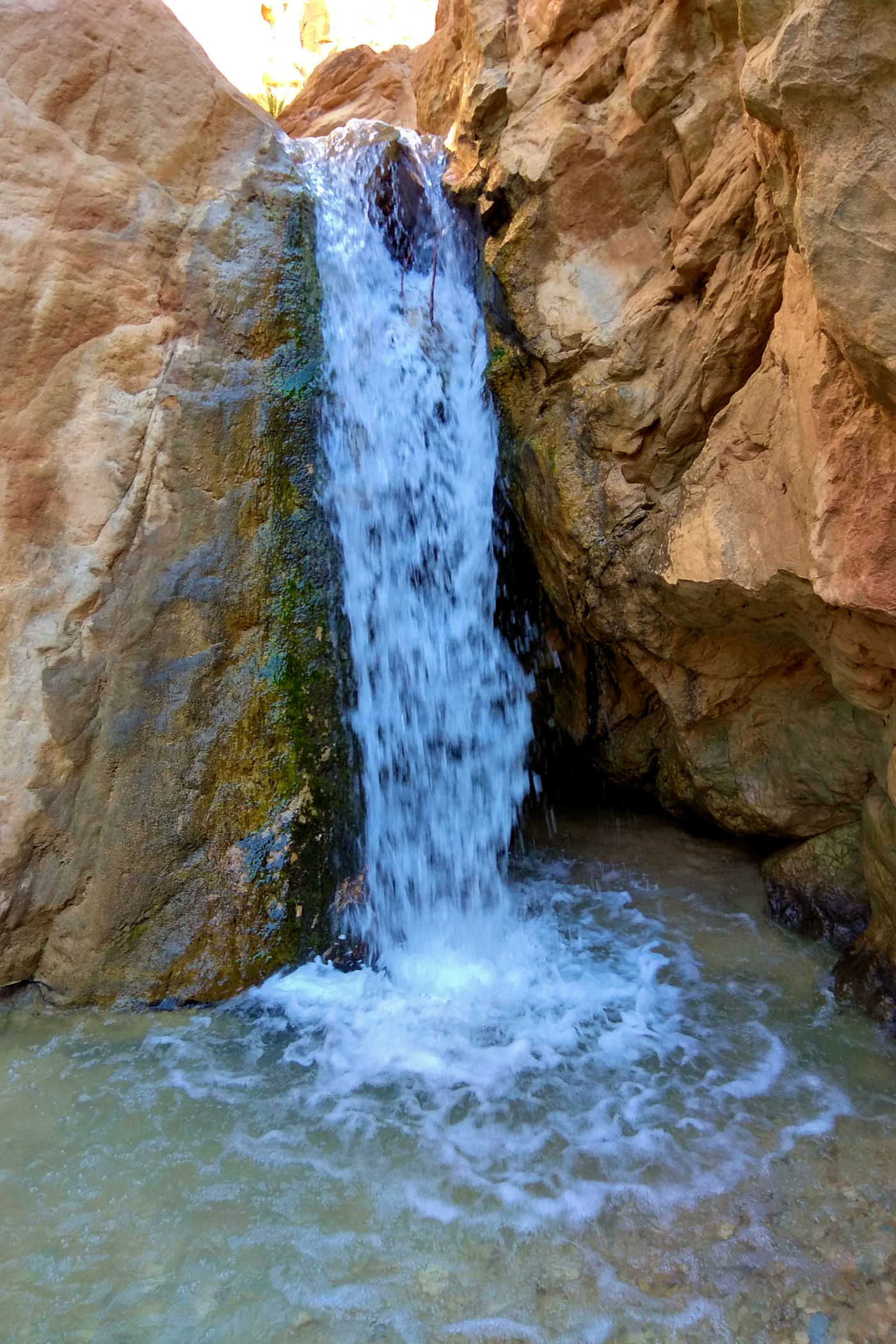 To kanion o którym wie pewnie mała garstka osób, nie jest zaznaczony na mapie google , ani w żadnym opisie. Dzięki bardzo dokładnemu przeanalizowaniu mapy trekkingowej pewnych podróżników z Jordanii udało mi się odnaleźć ten i inny kanion. Jak już znajdziemy odpowiednie miejsce, czyli most, tuż przed nim należy pozostawić auto na małym placu i dalej ruszyć już na piechotę. Sam kanion nie jest zbyt spektakularny, kończy się małym wodospadem. Co zaskakujące nawet w zimie woda w nim jest bardzo ciepła. Przejście do wodospadu to niecały kilometr ( w jedną stronę ). Dla zainteresowanych jego dokładną lokalizacją – oto MIEJSCE początku kanionu.