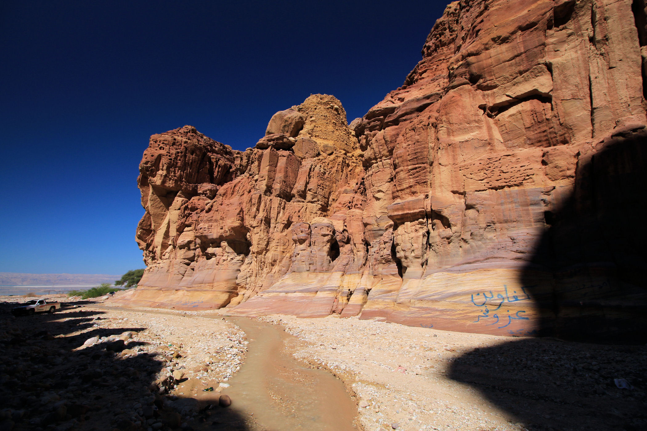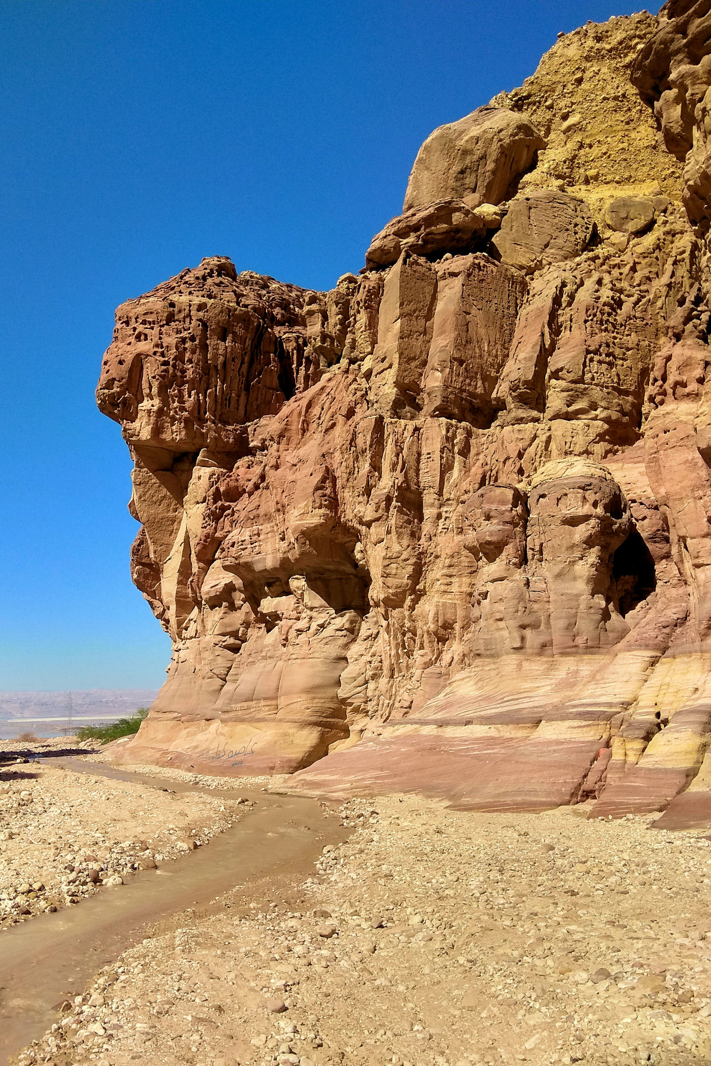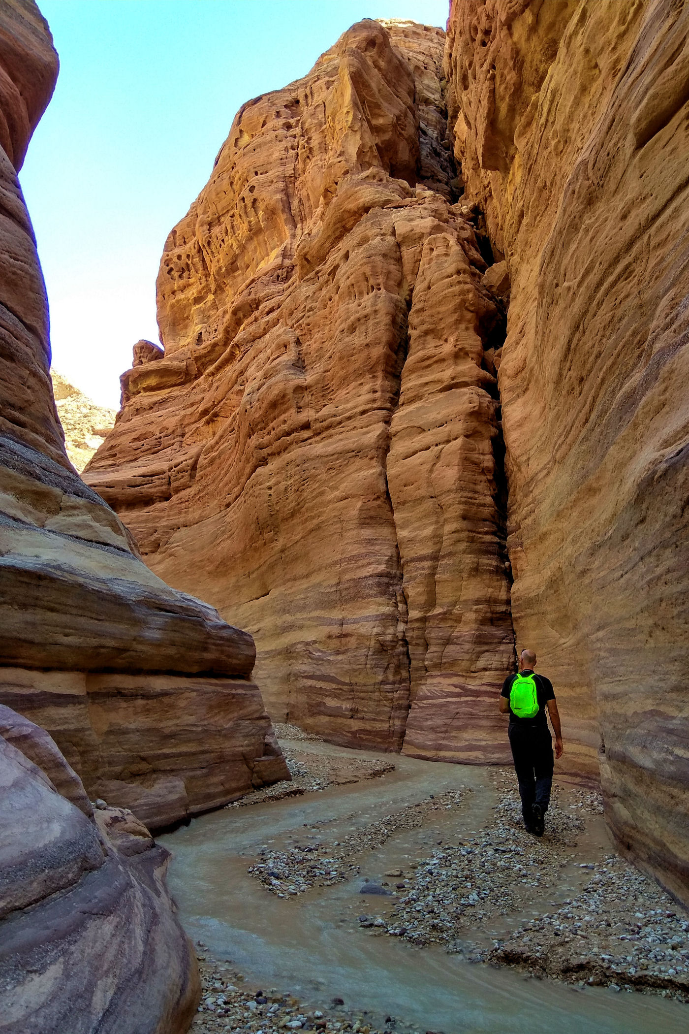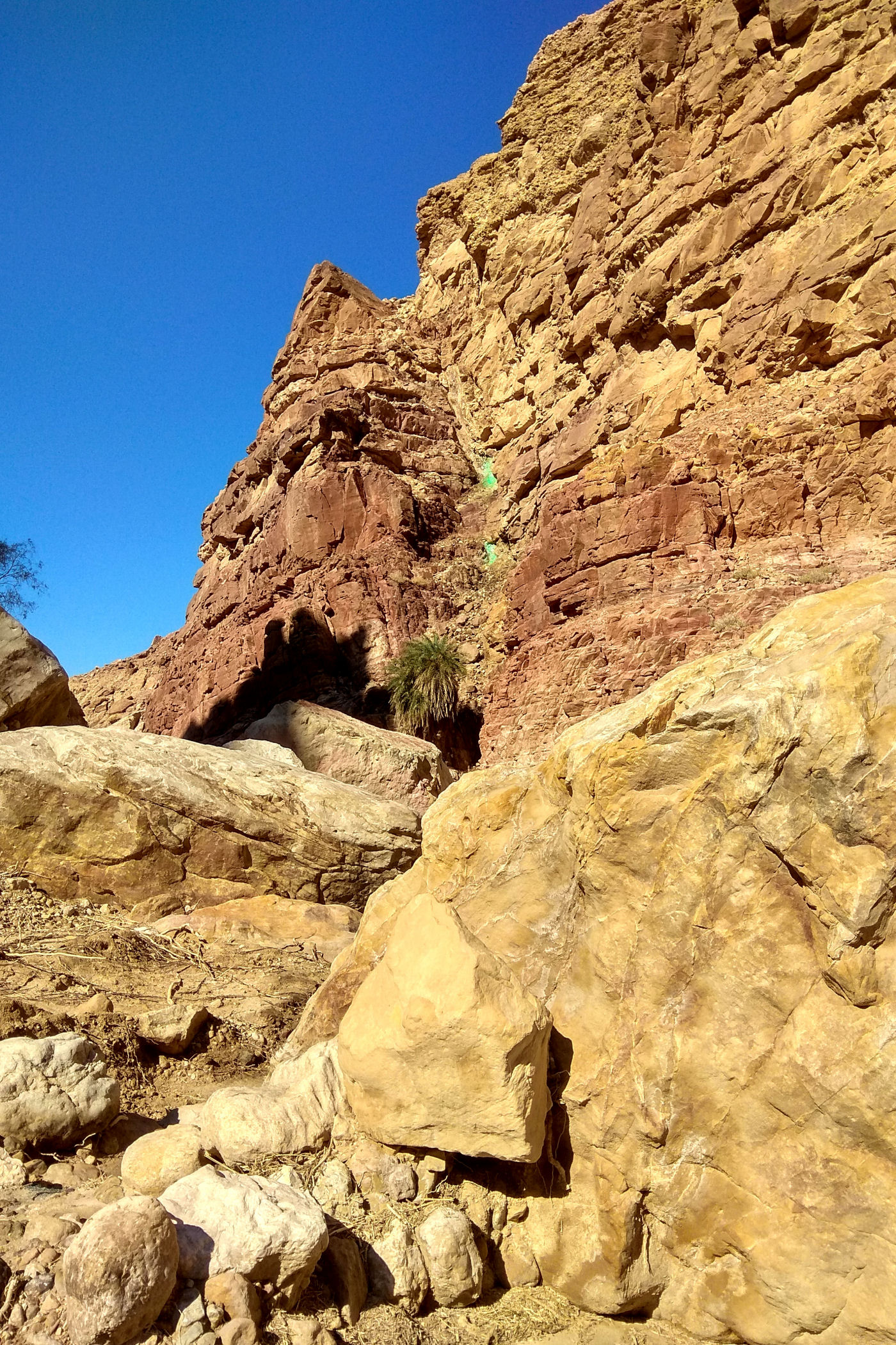 To kanion o którym wie pewnie mała garstka osób, nie jest zaznaczony na mapie google , ani w żadnym opisie. Dzięki bardzo dokładnemu przeanalizowaniu mapy trekkingowej pewnych podróżników z Jordanii udało mi się odnaleźć ten i inny kanion. Jak już znajdziemy odpowiednie miejsce, czyli most, tuż przed nim należy pozostawić auto na małym placu i dalej ruszyć już na piechotę. Sam kanion nie jest zbyt spektakularny, kończy się małym wodospadem. Co zaskakujące nawet w zimie woda w nim jest bardzo ciepła. Przejście do wodospadu to niecały kilometr ( w jedną stronę ). Dla zainteresowanych jego dokładną lokalizacją – oto MIEJSCE początku kanionu.