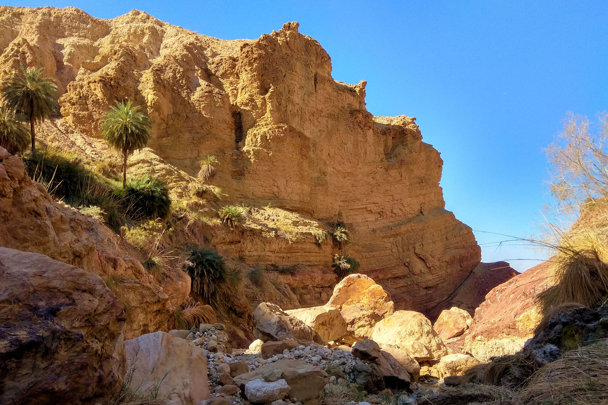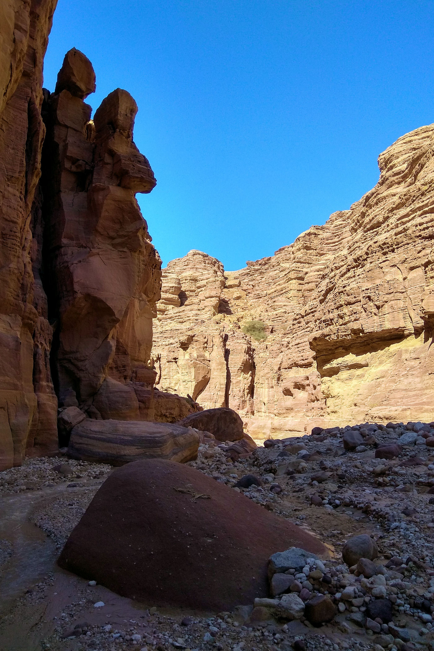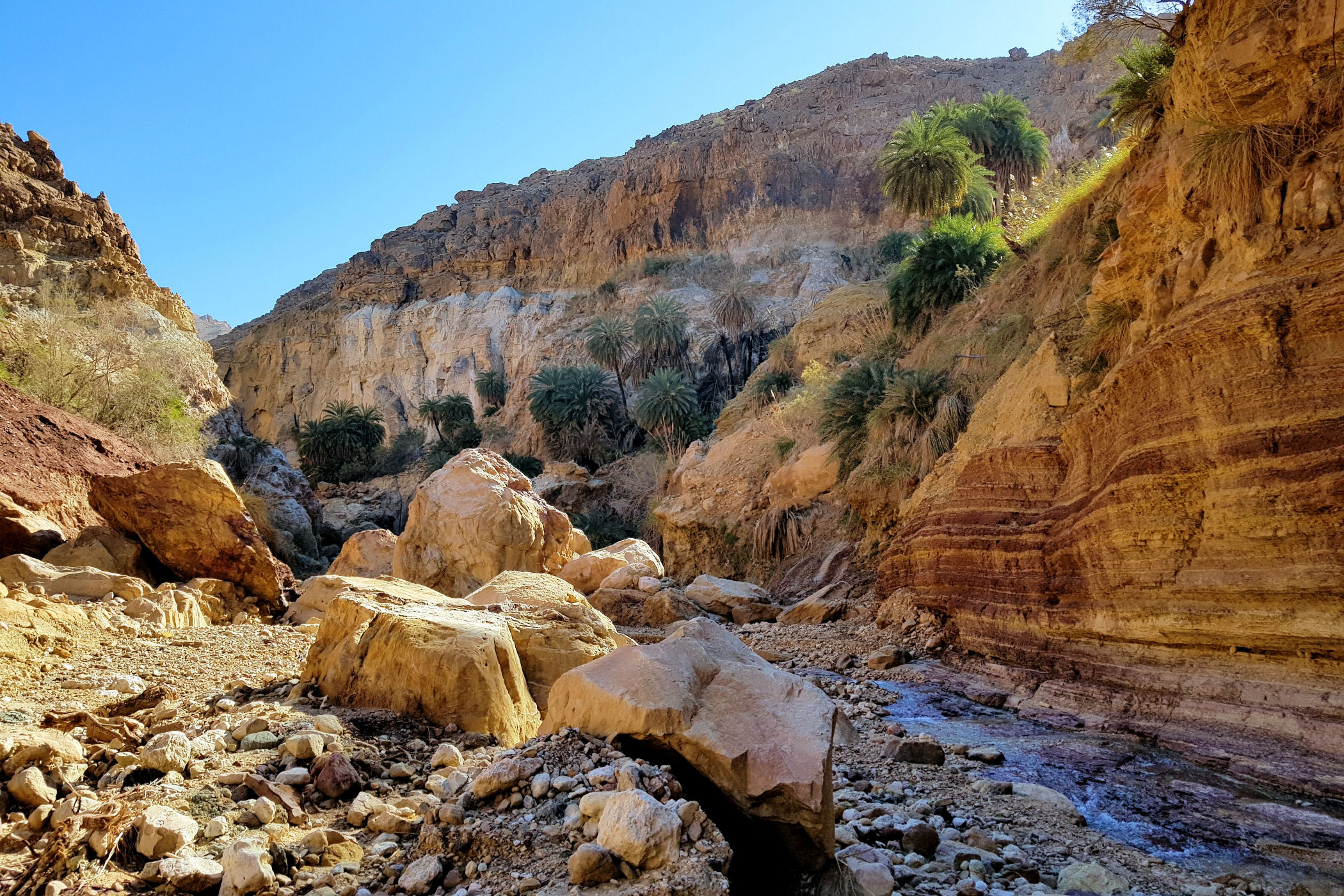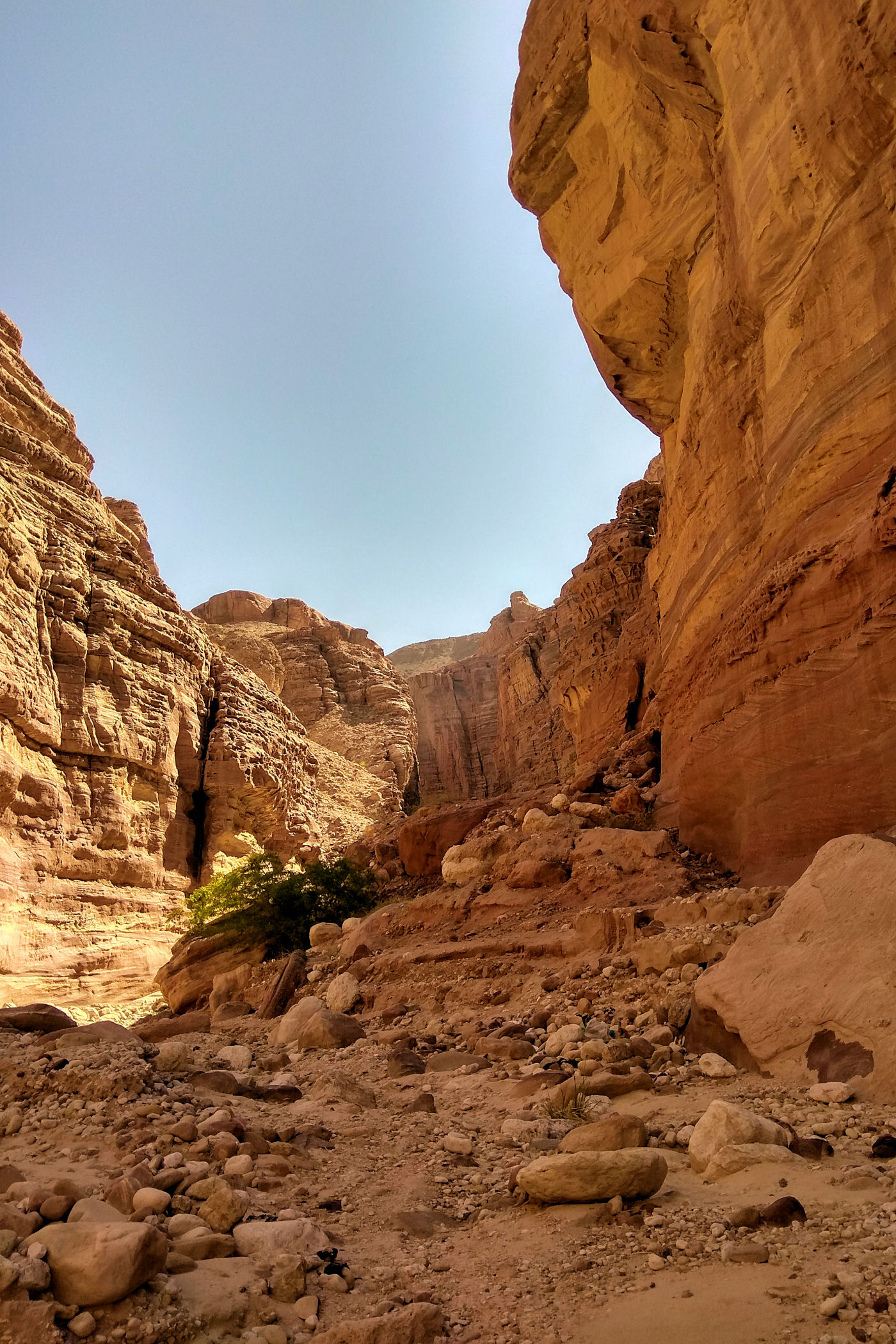 To kanion o którym wie pewnie mała garstka osób, nie jest zaznaczony na mapie google , ani w żadnym opisie. Dzięki bardzo dokładnemu przeanalizowaniu mapy trekkingowej pewnych podróżników z Jordanii udało mi się odnaleźć ten i inny kanion. Jak już znajdziemy odpowiednie miejsce, czyli most, tuż przed nim należy pozostawić auto na małym placu i dalej ruszyć już na piechotę. Sam kanion nie jest zbyt spektakularny, kończy się małym wodospadem. Co zaskakujące nawet w zimie woda w nim jest bardzo ciepła. Przejście do wodospadu to niecały kilometr ( w jedną stronę ). Dla zainteresowanych jego dokładną lokalizacją – oto MIEJSCE początku kanionu.
