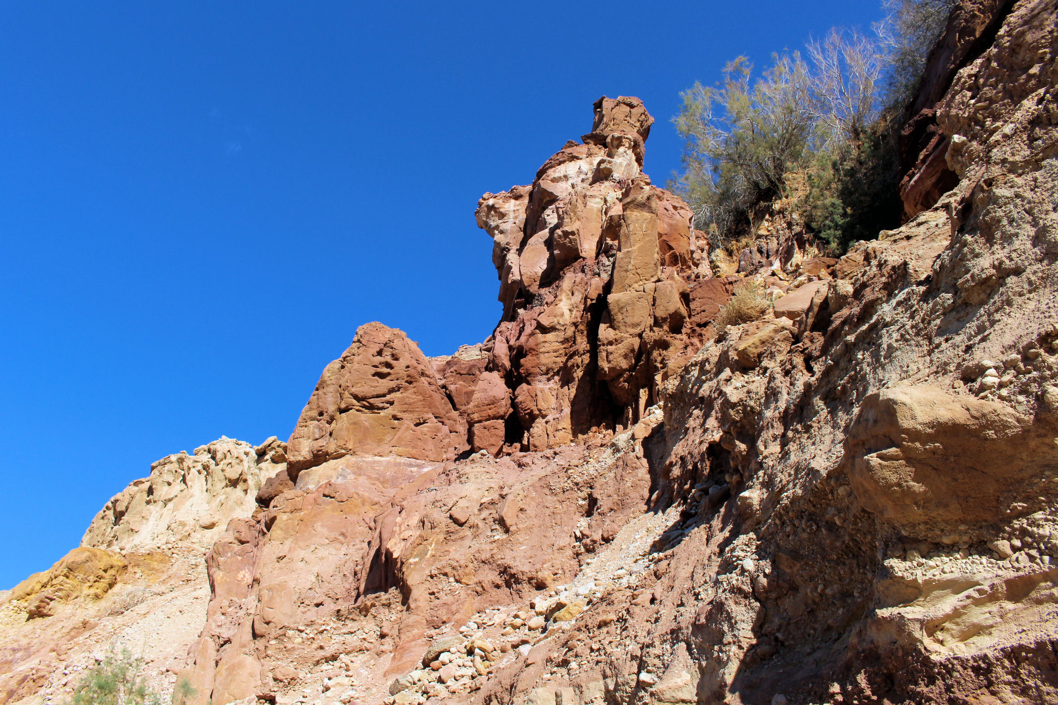To kanion od strony morza Martwego obecnie niedostępny, trwają tam prace budowlane nad jakimiś umocnieniami brzegów, może to budowa chodników. Przejeżdżamy bez żalu obok, przed nami kawałek dalej …