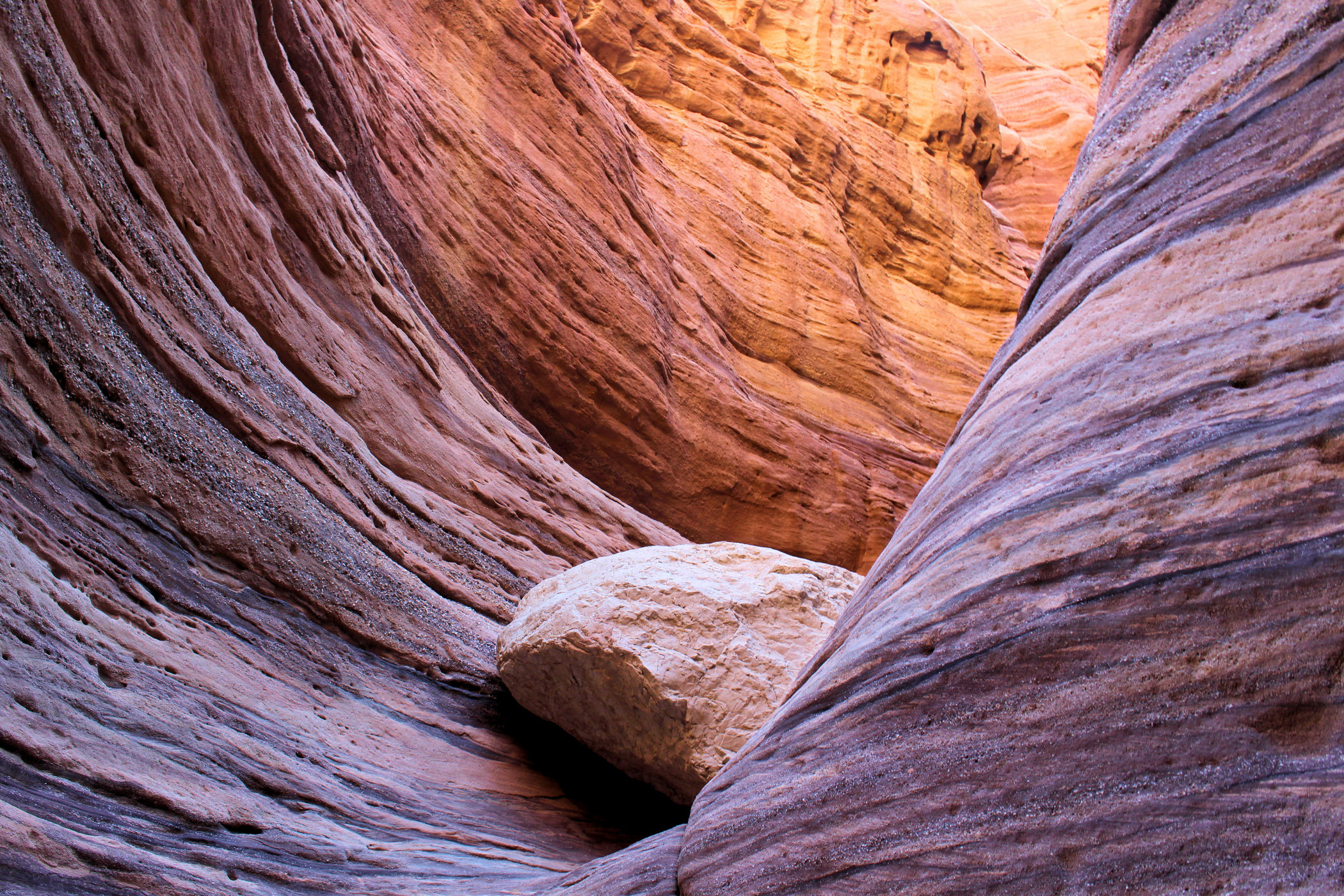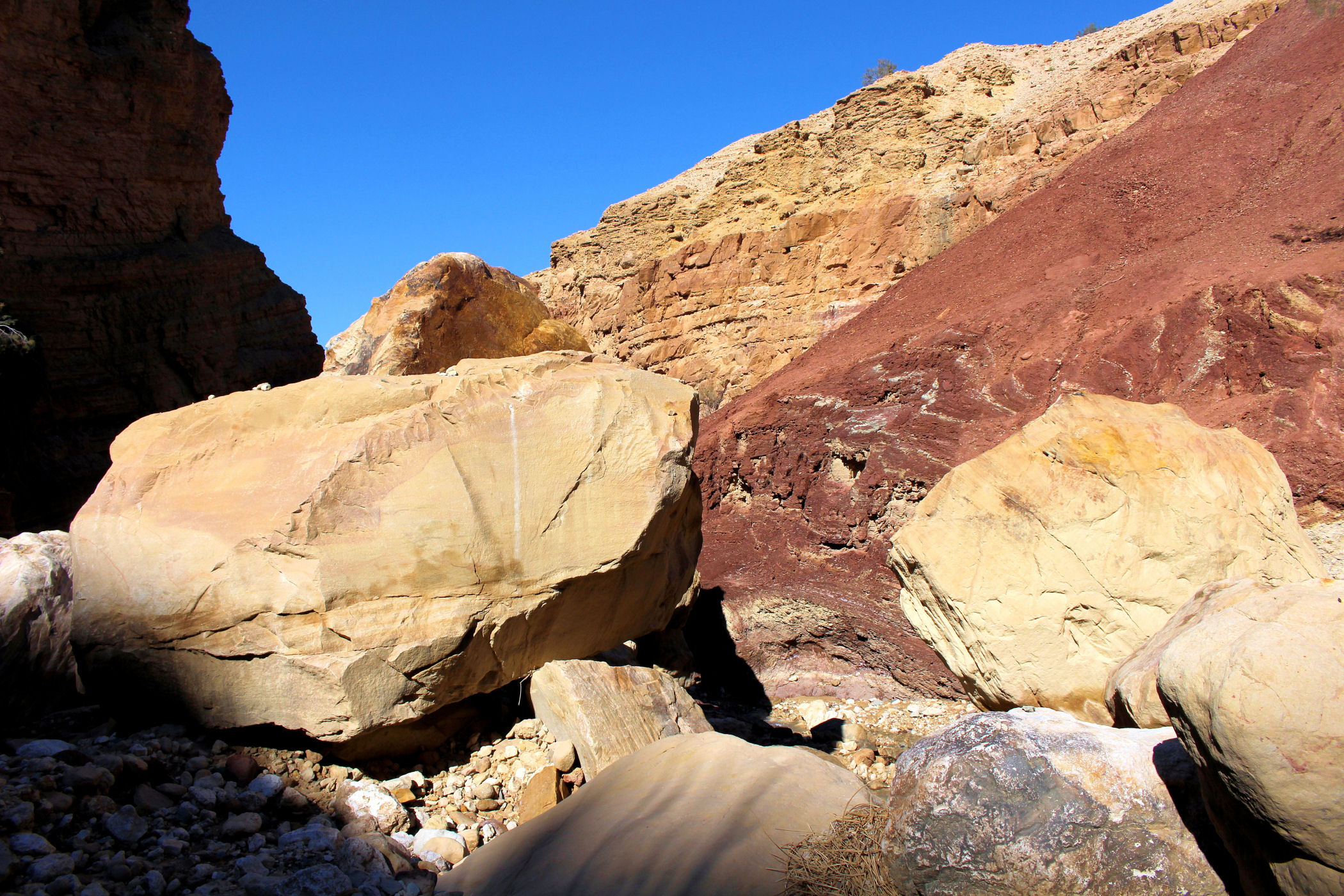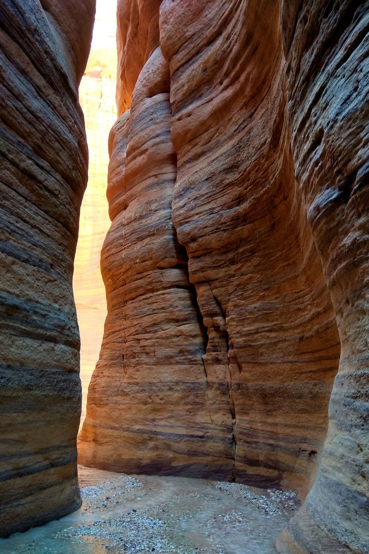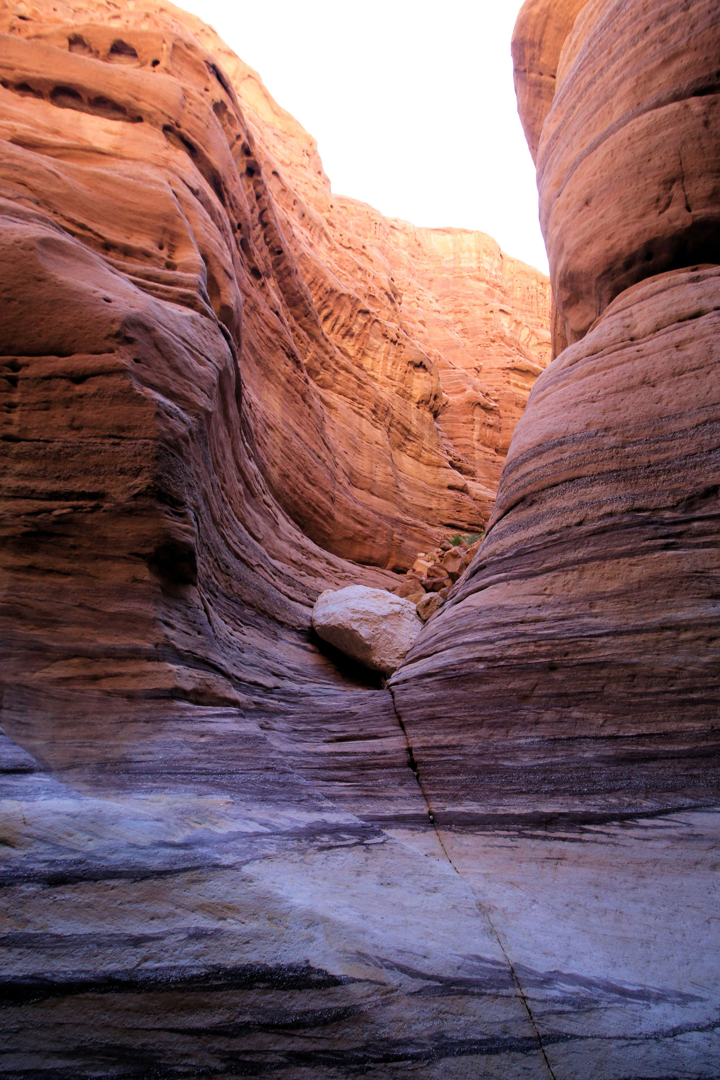 Mniej więcej po około 2km zaczyna się prawdziwa bajkowa kraina, kanion zamienia się w bardzo wąski, a wyżłobione przez wodę ściany przypominają kolorowy tort. Tu już jest na tyle wąsko, ze woda wypełnia prawie całą szerokość. Dochodzimy więc do miejsca, gdzie woda powoli zaczyna wlewać się do butów i zawracamy.