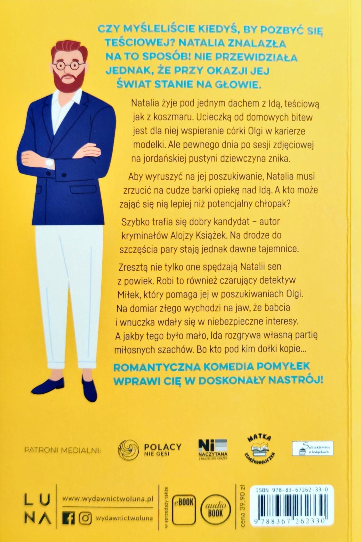 Natalia żyje pod jednym dachem z Idą, teściową jak z koszmaru. Ucieczką od domowych bitew jest dla niej wspieranie córki Olgi w karierze modelki. Ale pewnego dnia po sesji zdjęciowej na jordańskiej pustyni dziewczyna znika. Aby wyruszyć na jej poszukiwanie, Natalia musi zrzucić na cudze barki opiekę nad Idą. A kto może zająć się nią lepiej niż potencjalny chłopak? Szybko trafia się dobry kandydat – autor kryminałów Alojzy Książek. Na drodze do szczęścia pary stają jednak dawne tajemnice.