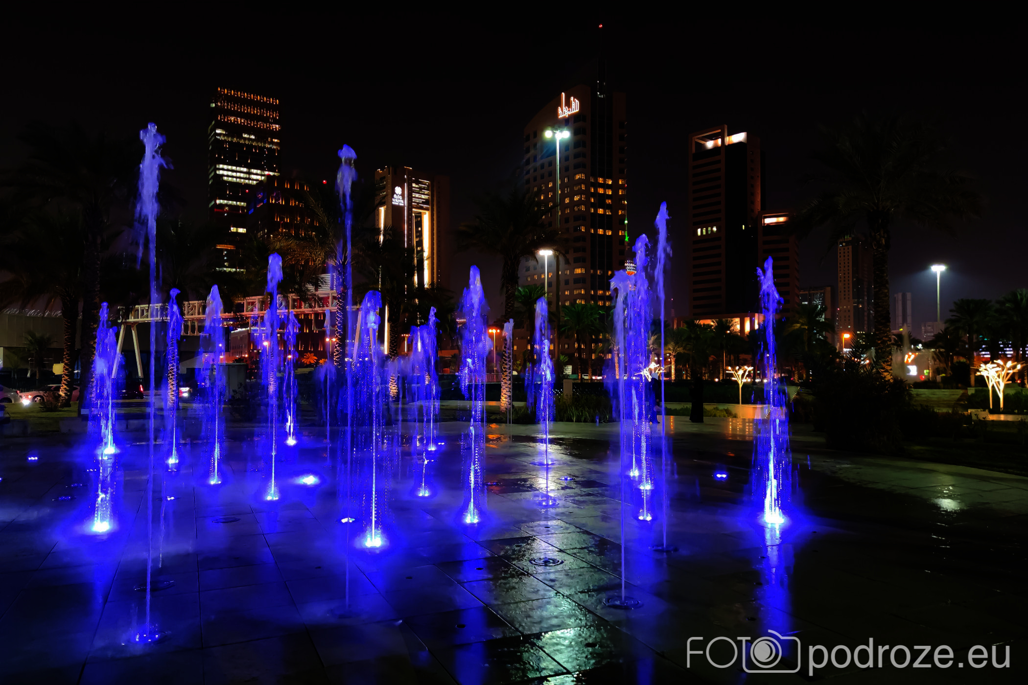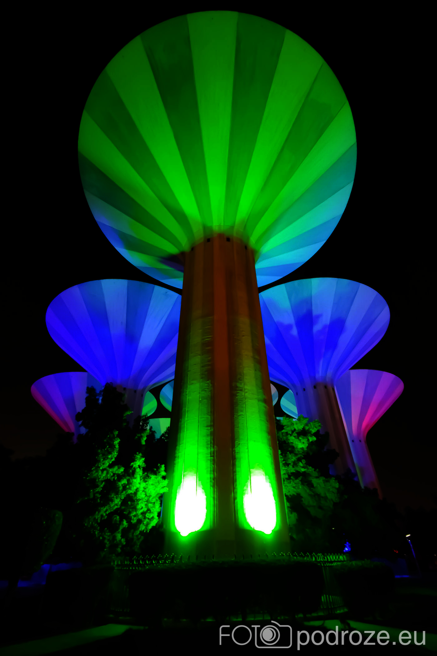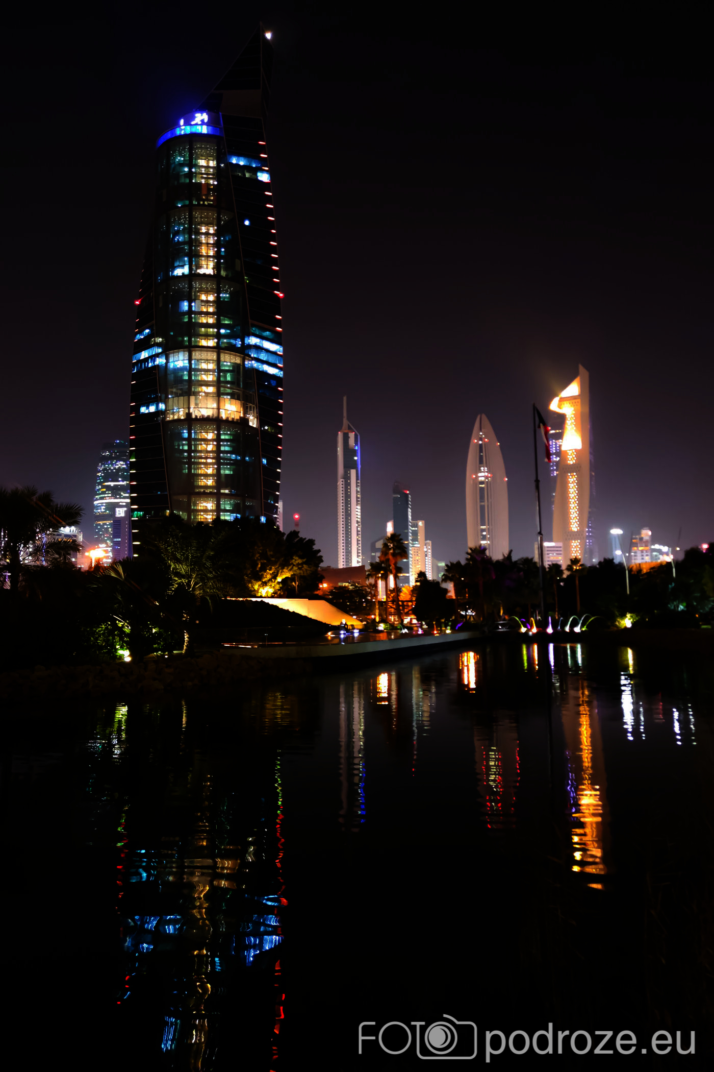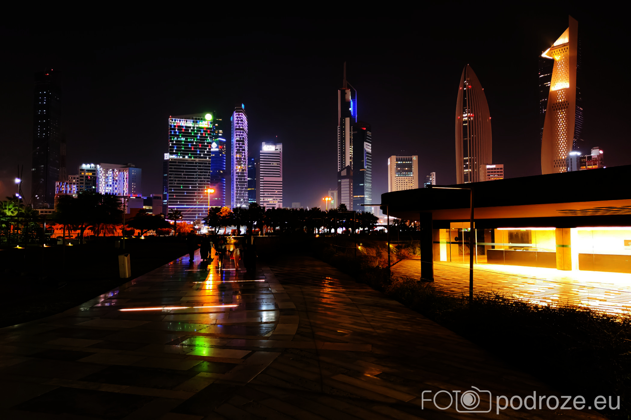 Abraj Park to najbardziej kolorowy park jaki widzieliśmy w życiu, a to wszystko przez bajecznie podświetlone wieże ciśnień. Jest ich w całym Kuwejcie kilka zespołów, ale tylko tu utworzono pod nimi park i podświetlono w ten, a nie inny sposób. Całość wygląda jak z bajki, ale oczywiście tylko po zmroku.