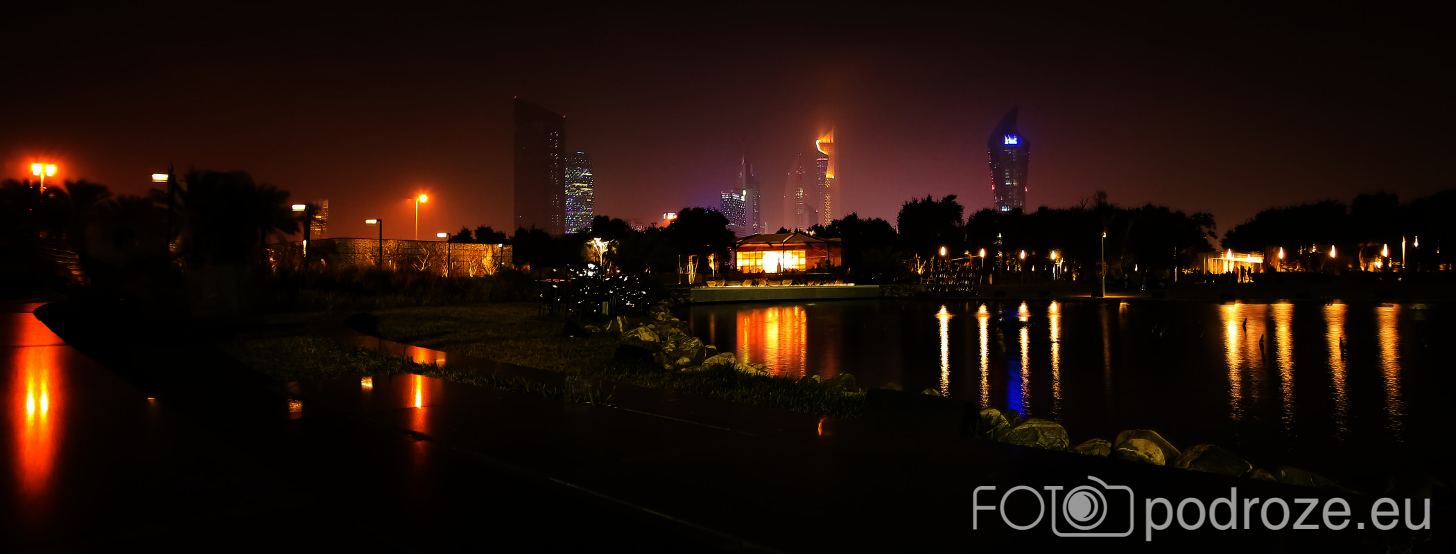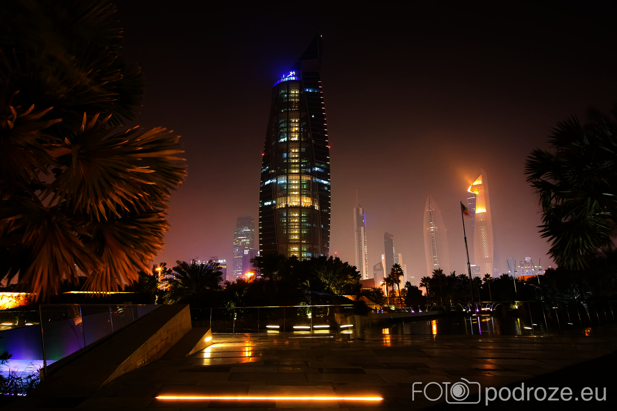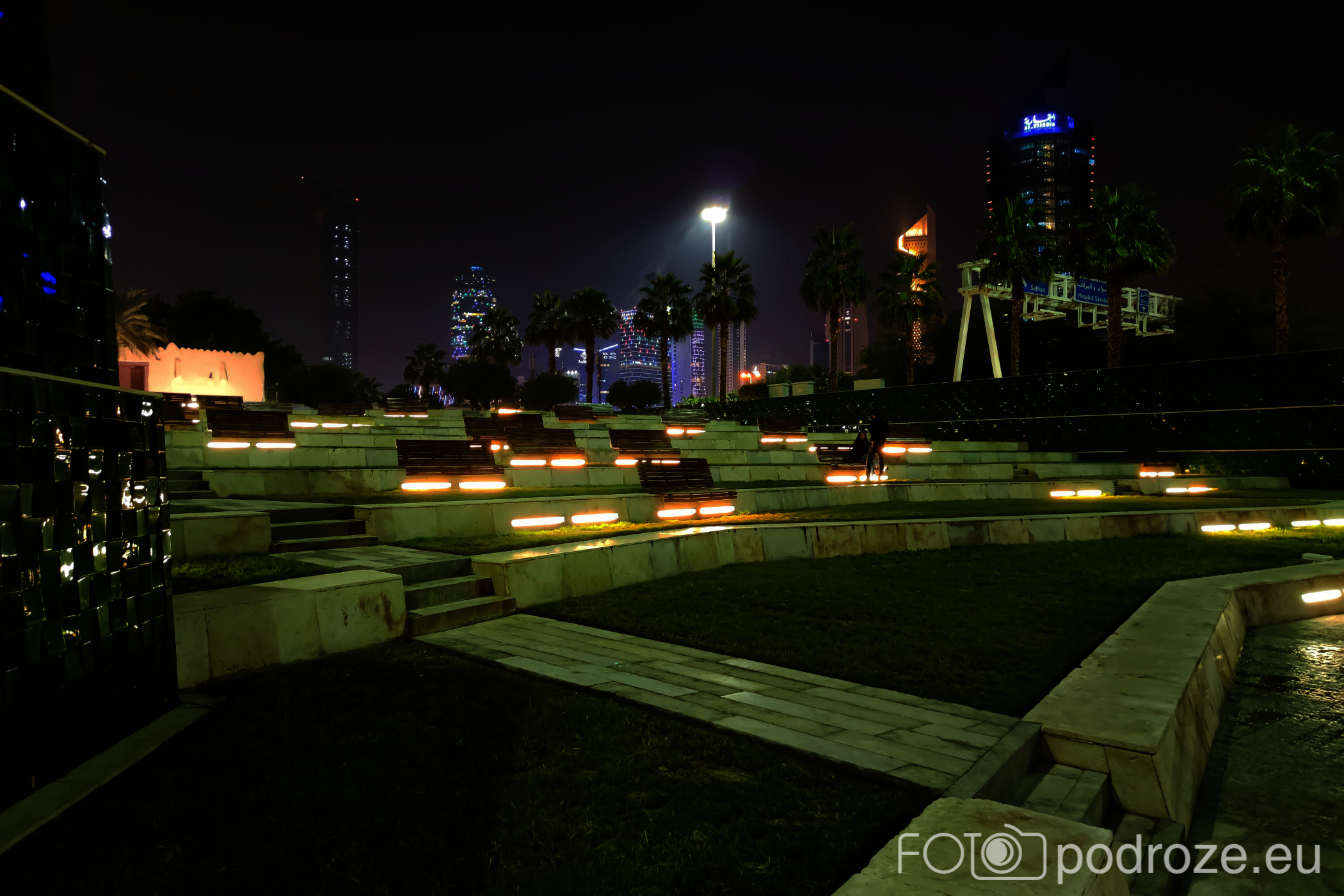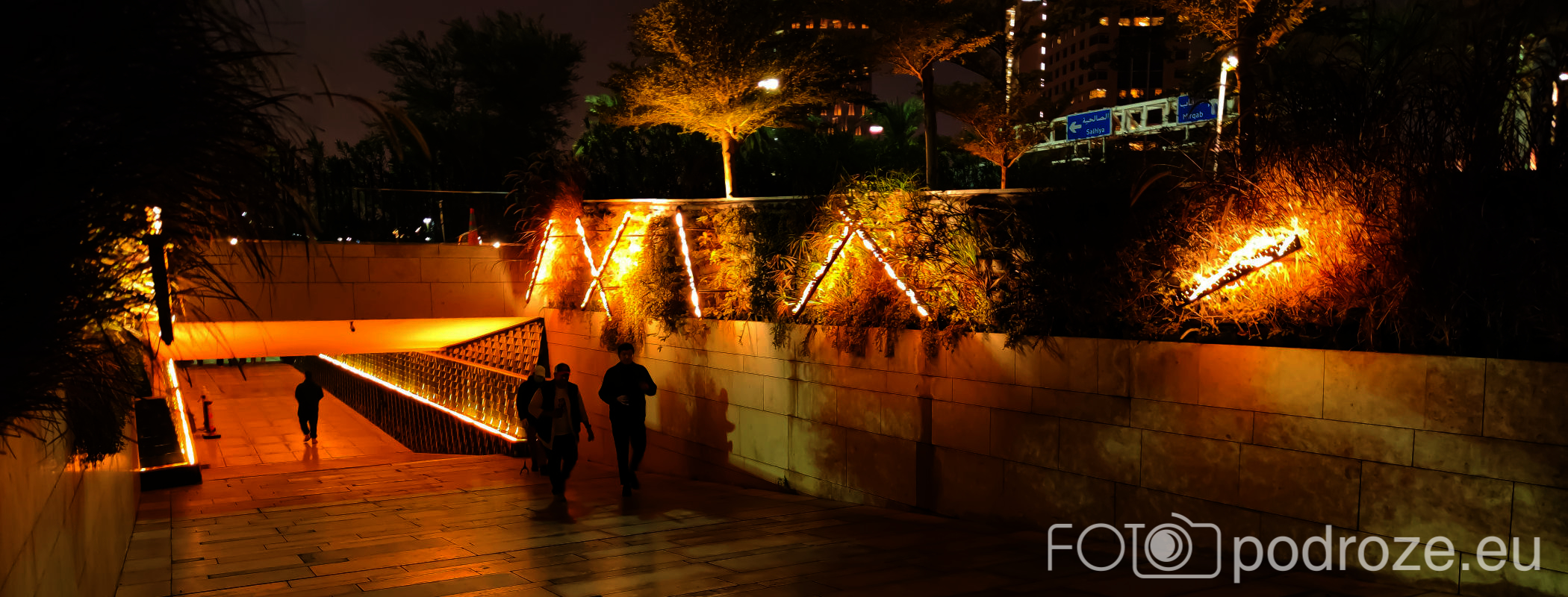 Abraj Park to najbardziej kolorowy park jaki widzieliśmy w życiu, a to wszystko przez bajecznie podświetlone wieże ciśnień. Jest ich w całym Kuwejcie kilka zespołów, ale tylko tu utworzono pod nimi park i podświetlono w ten, a nie inny sposób. Całość wygląda jak z bajki, ale oczywiście tylko po zmroku.