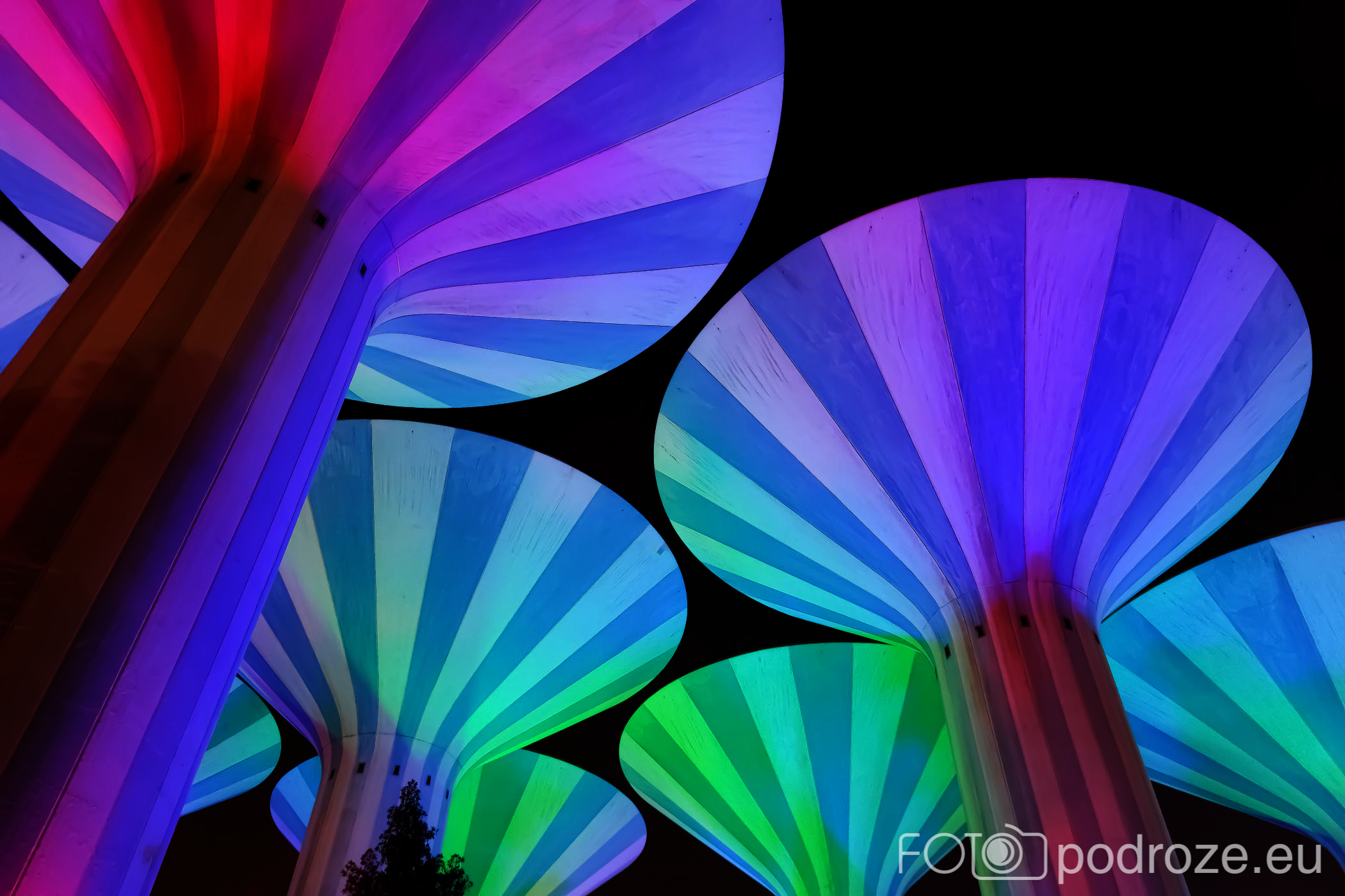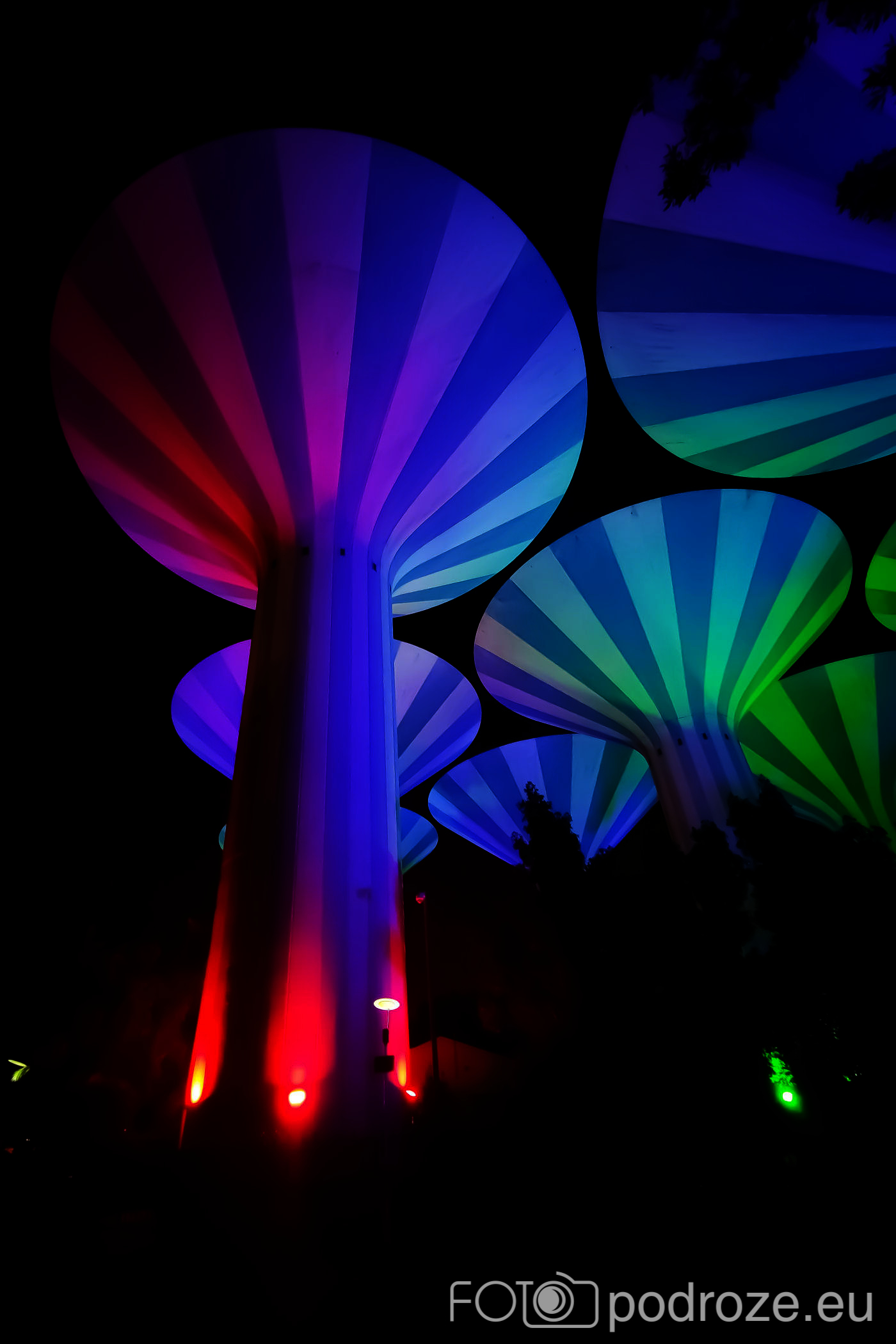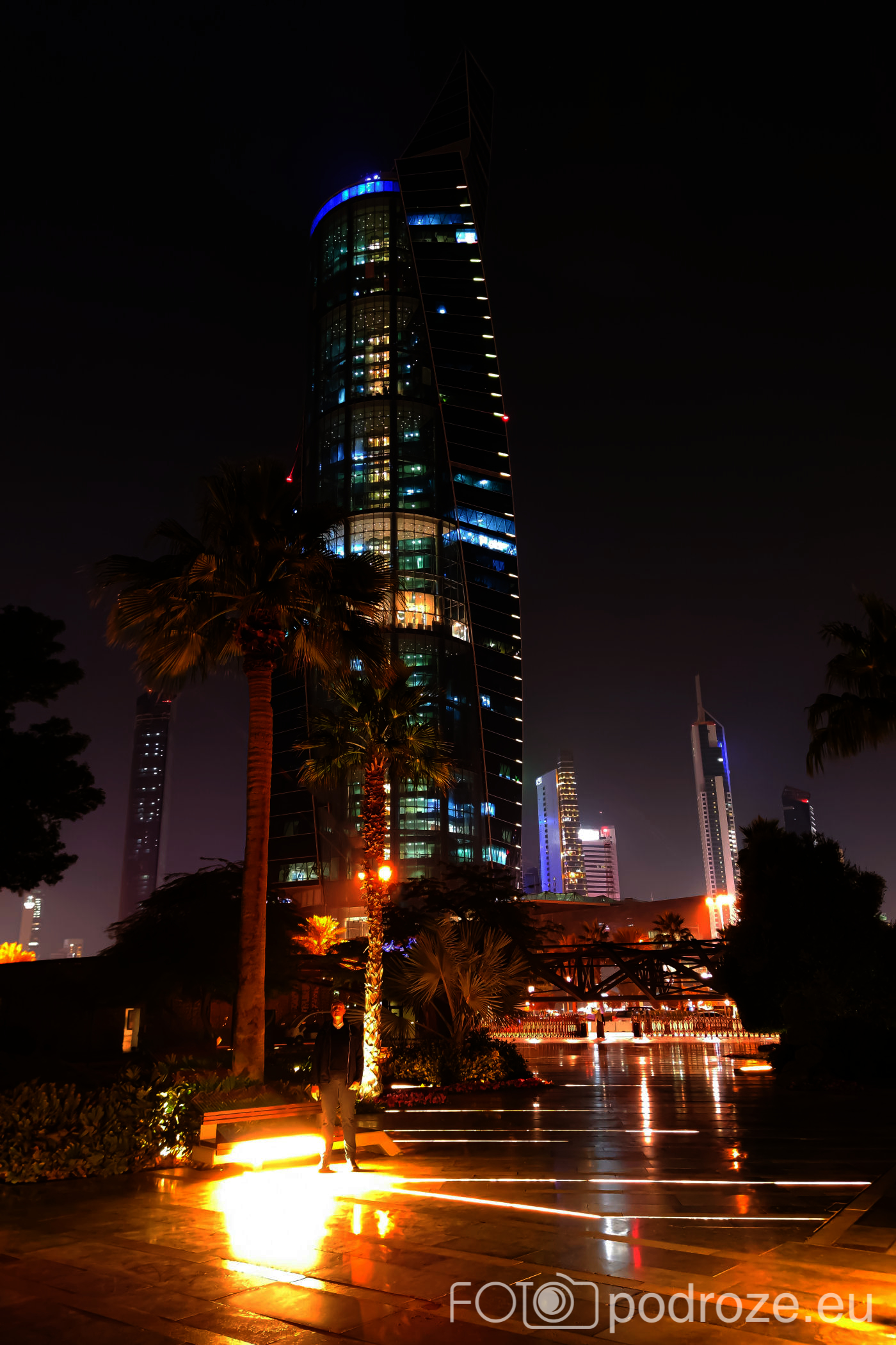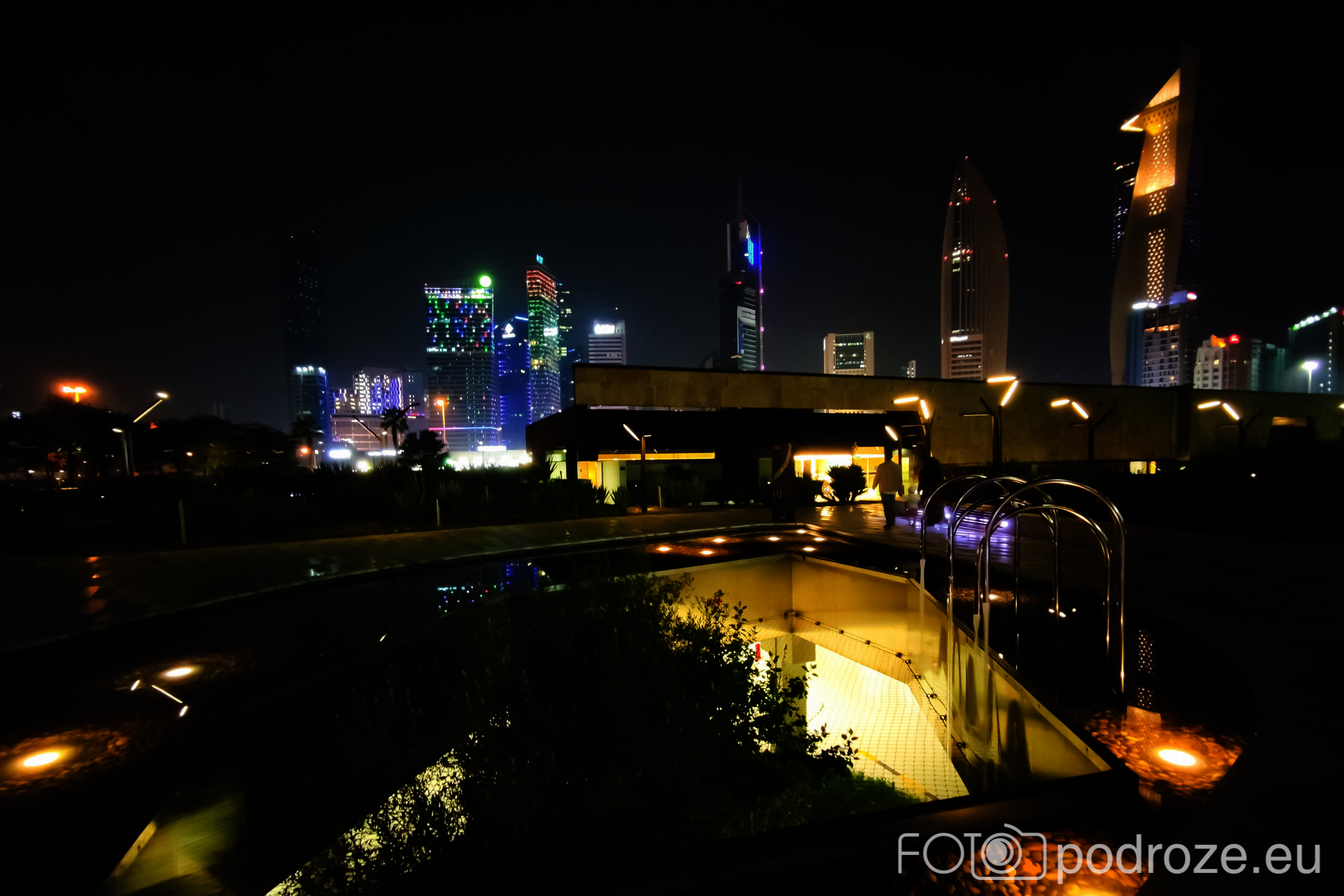 Abraj Park to najbardziej kolorowy park jaki widzieliśmy w życiu, a to wszystko przez bajecznie podświetlone wieże ciśnień. Jest ich w całym Kuwejcie kilka zespołów, ale tylko tu utworzono pod nimi park i podświetlono w ten, a nie inny sposób. Całość wygląda jak z bajki, ale oczywiście tylko po zmroku.
