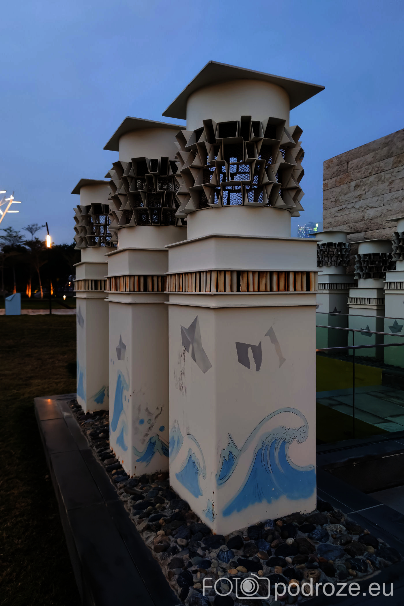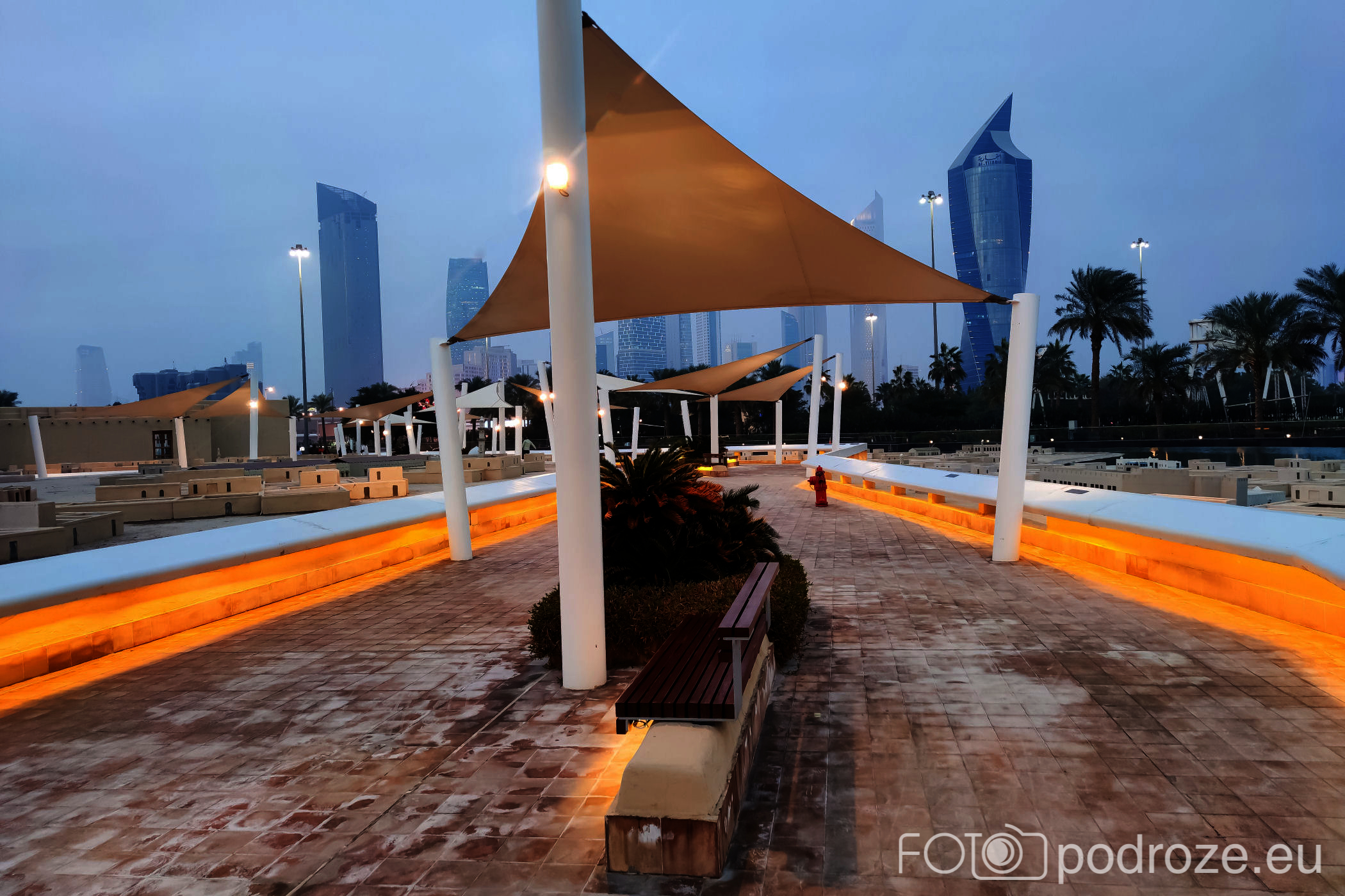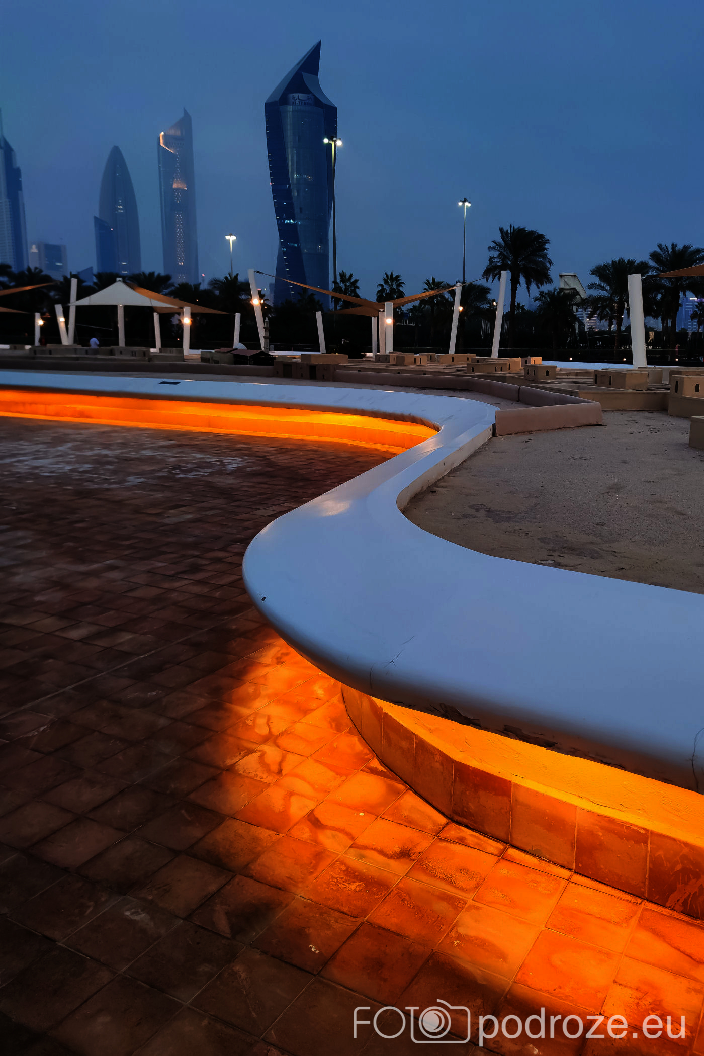 II najciekawszy park znajduje się przy kompleksie obiektów kulturalnych Sheikh Jaber Al-Ahmad Cultural Centre. Do samych obiektów się nie dostaliśmy, można je było obejrzeć jedynie zza płotu w zachodniej części parku. Nikt po prostu nie zauważył, że skończyła się pandemia i nadal obowiązuje zakaz wstępu na ich teren po za wydarzeniami kulturalnymi.