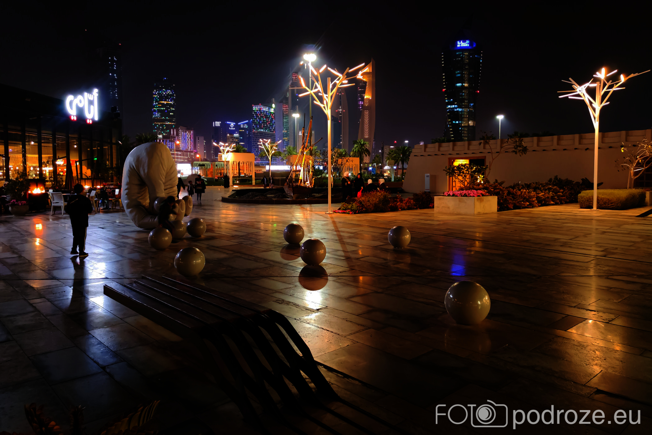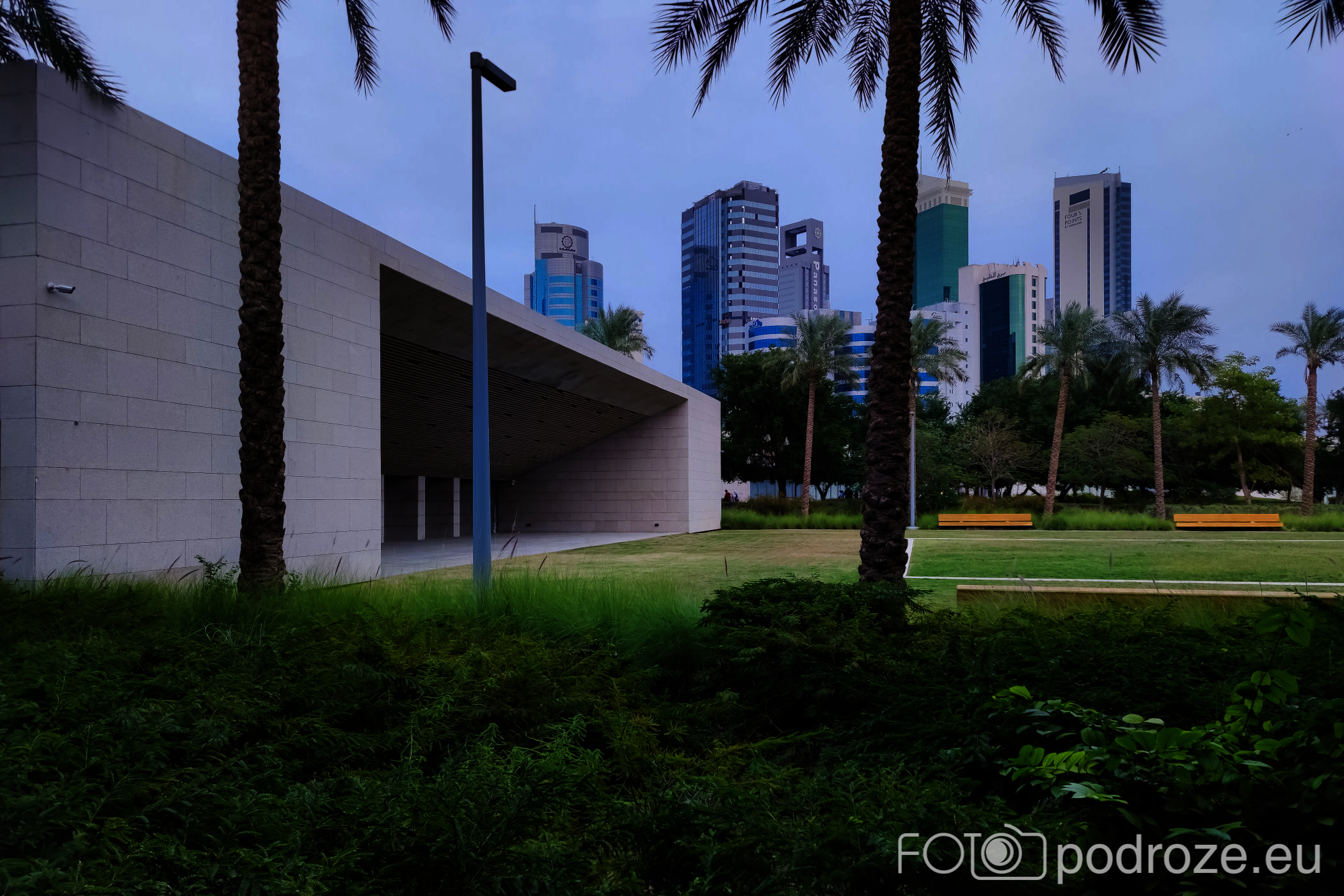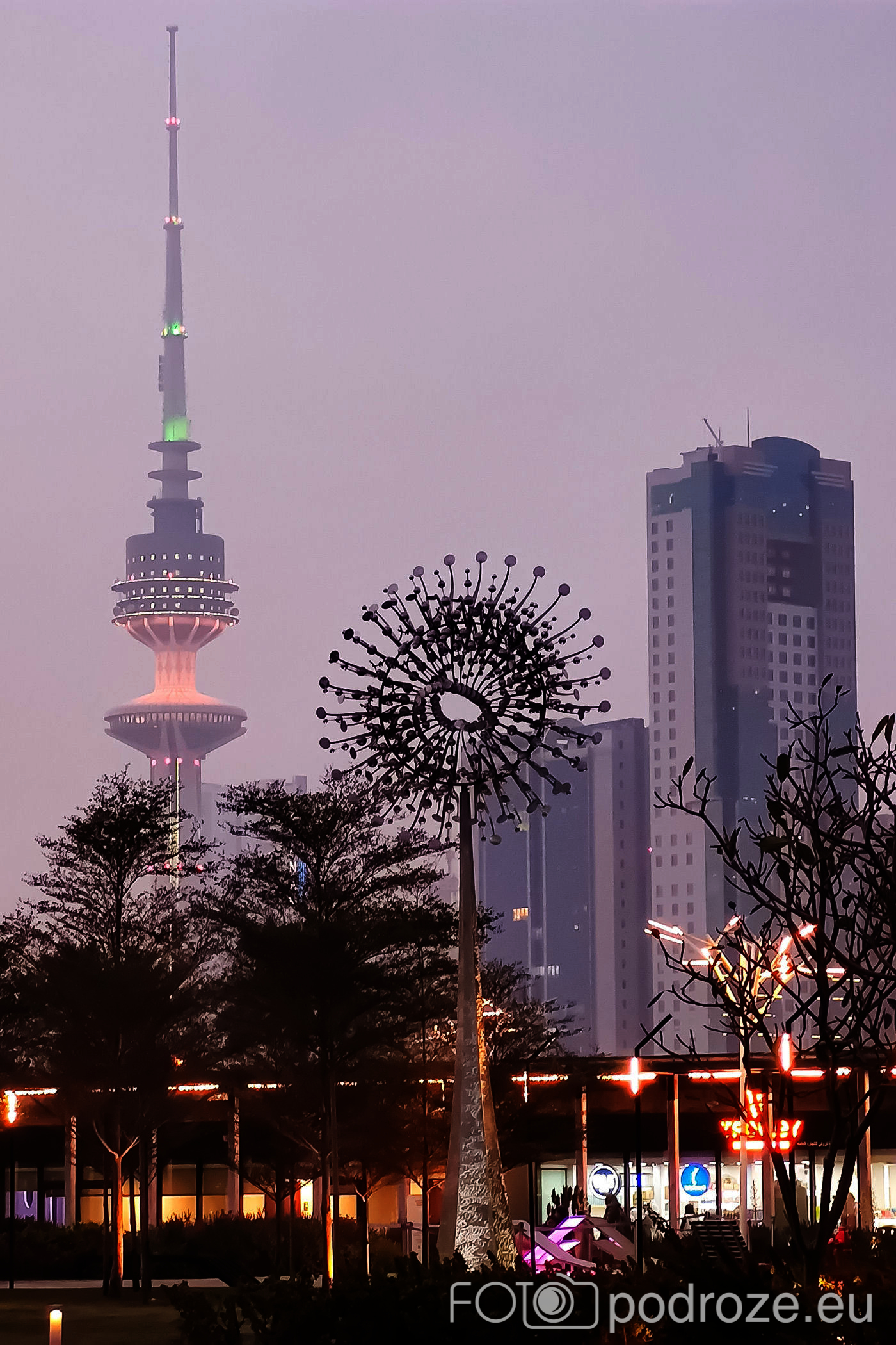 II najciekawszy park znajduje się przy kompleksie obiektów kulturalnych Sheikh Jaber Al-Ahmad Cultural Centre. Do samych obiektów się nie dostaliśmy, można je było obejrzeć jedynie zza płotu w zachodniej części parku. Nikt po prostu nie zauważył, że skończyła się pandemia i nadal obowiązuje zakaz wstępu na ich teren po za wydarzeniami kulturalnymi.