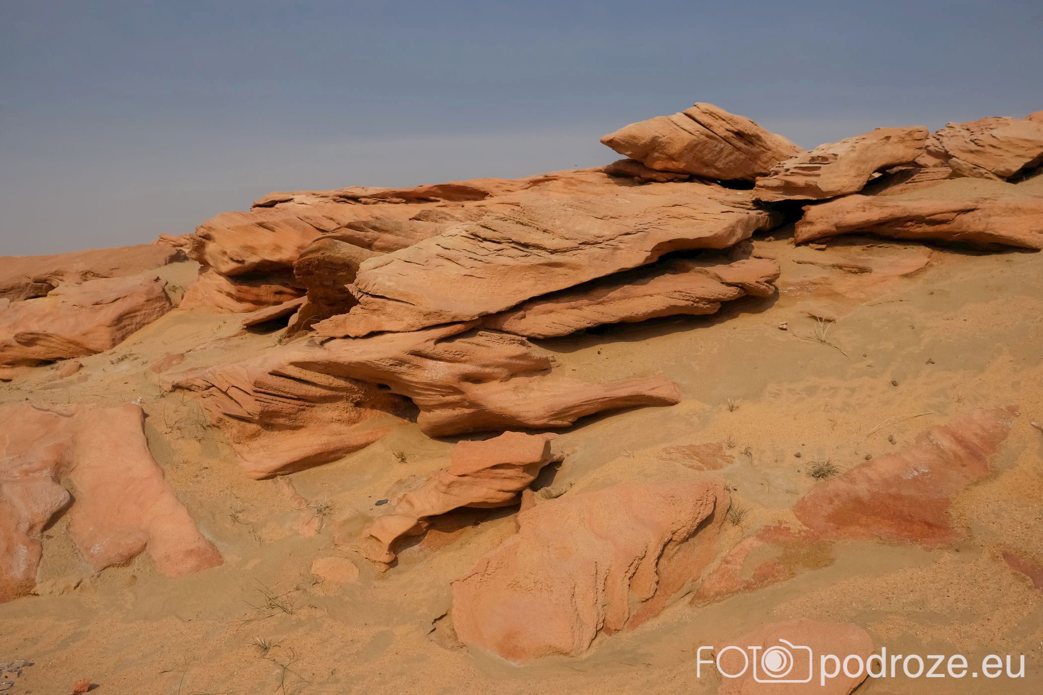 Powyżej skały znajduje się szczyt Mutla Hill, kolejne potwornie zaśmiecone miejsce. Generalnie pustynia to niesamowity kontrast dla bogatej i miejscami klinicznie czystej stolicy . Ale tu na pustyni nie ma ludzi do sprzątania, a Kuwejtczycy niestety do czystych nie należą .