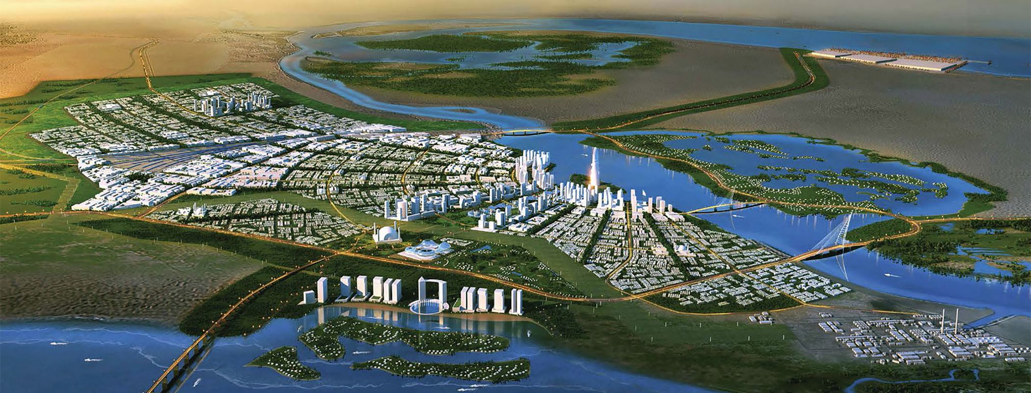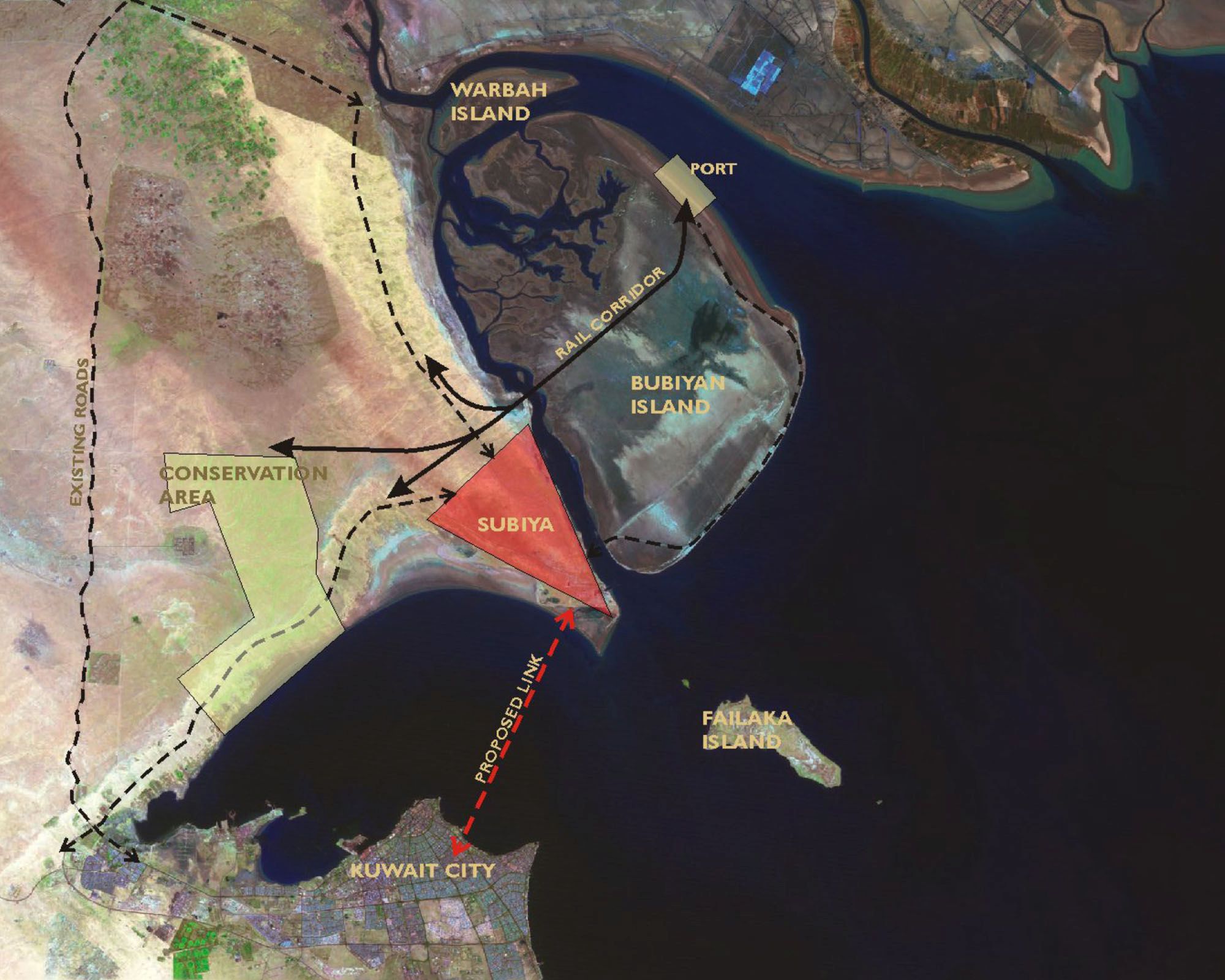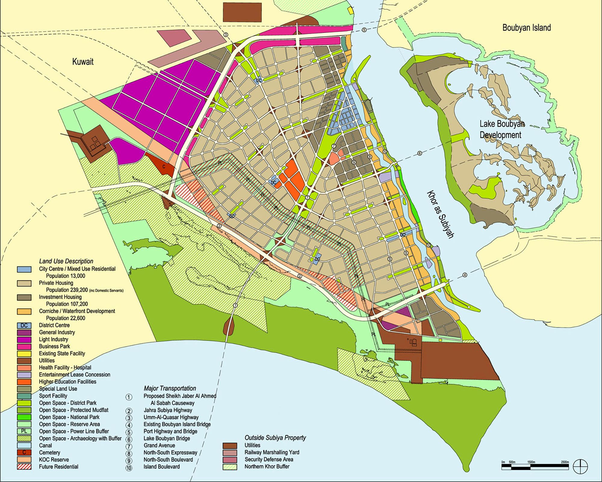 Otóż ciekawostka, bo to co teraz jest jednym wielkim płaskim i pokrytym szaro – burym piachem terenem docelowo ma być wielkim miastem przyszłości na wzór tych które powstają w Arabii Saudyjskiej. Subiya New Town Development , czyli Jedwabne Miasto to szalona wizja, choć przy tym co od lat obserwujemy na Bliskim Wschodzie, już nie tak szokująca. Wizualizacje ze strony Gulf Consult