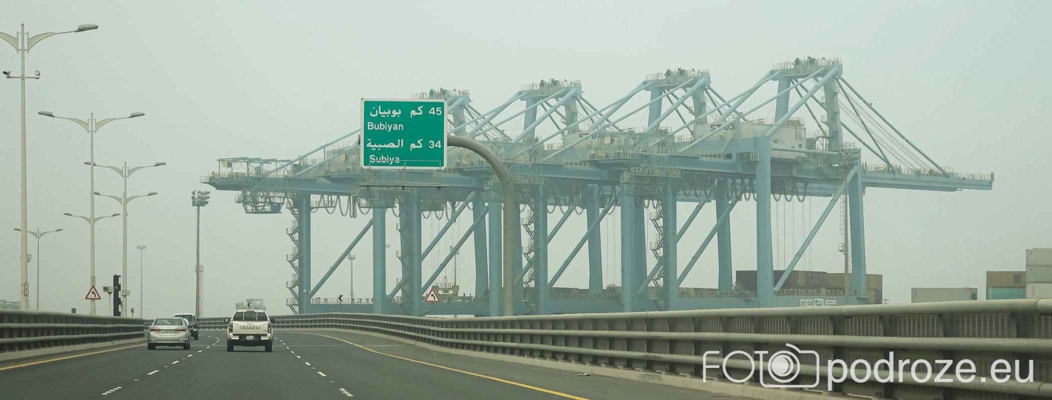Na północ Kuwejtu mozna dostać się dwoma drogami : tradycyjną i przez morze, jednym z najdłuższych mostów świata. Zanim wjedziemy na most mijamy po prawej stronie wielki port .