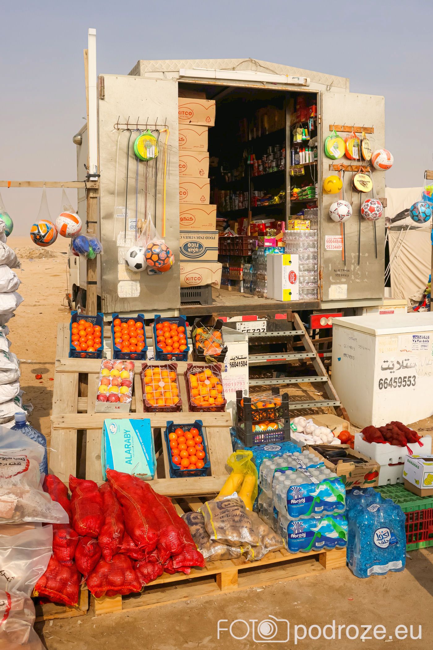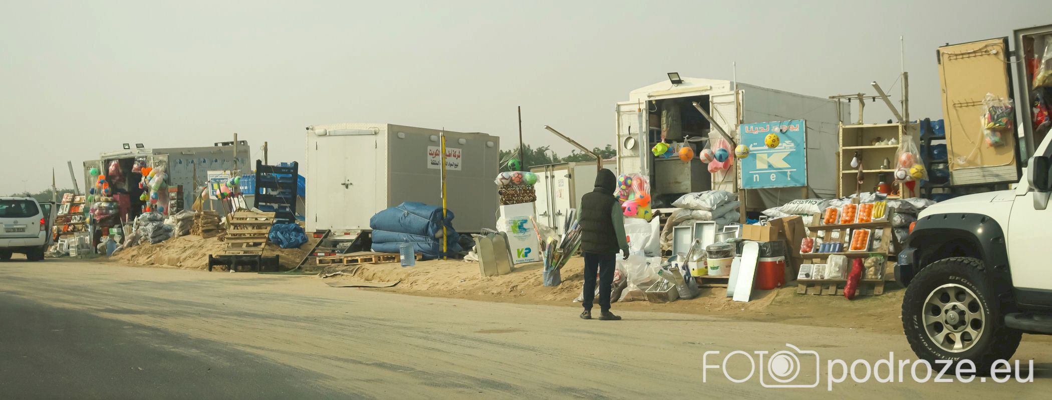 Patrząc na zasypane piachem autostrady aż trudno wyobrazić sobie jak ma tu być w przyszłości. Na pustyni zlokalizowanych jest setki campów w których Kuwejtczycy spędzają wolny czas, mus więc być handel towarów pierwszej potrzeby. Mijamy co jakiś czas takie ciężarówki.
