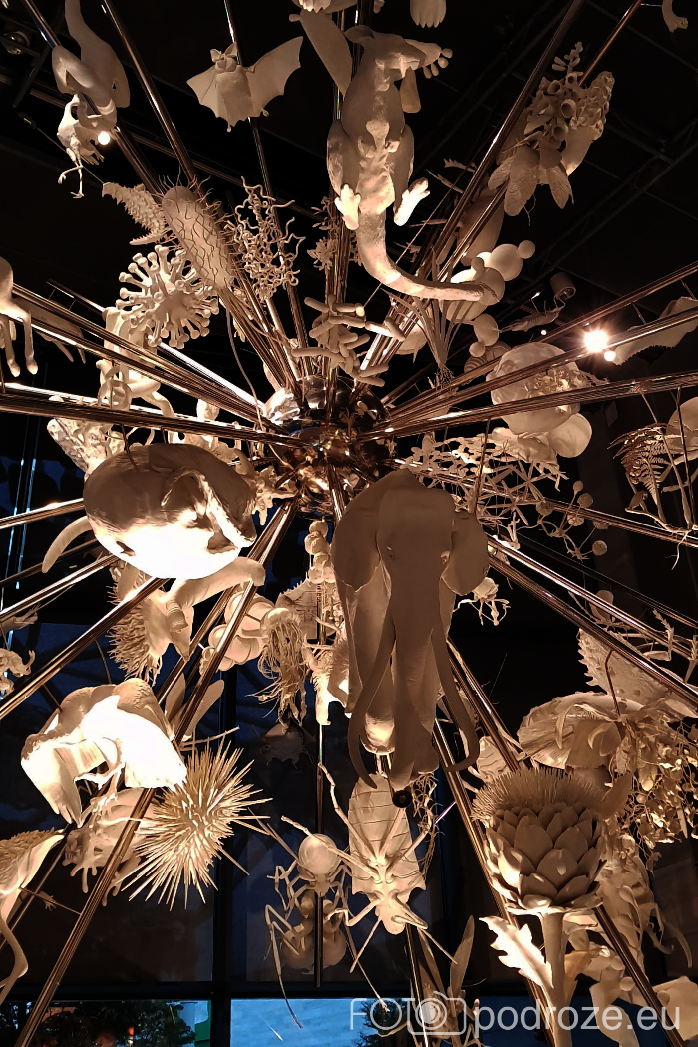 Teraz schody ruchome zabierają nas pod ziemię. Wkraczamy w podwodną krainę gdzie stajemy twarzą w twarz z dziką przyrodą przed ogromnym akwarium. Edukacyjna część pokazuje związek między handlem a naturalnym środowiskiem.