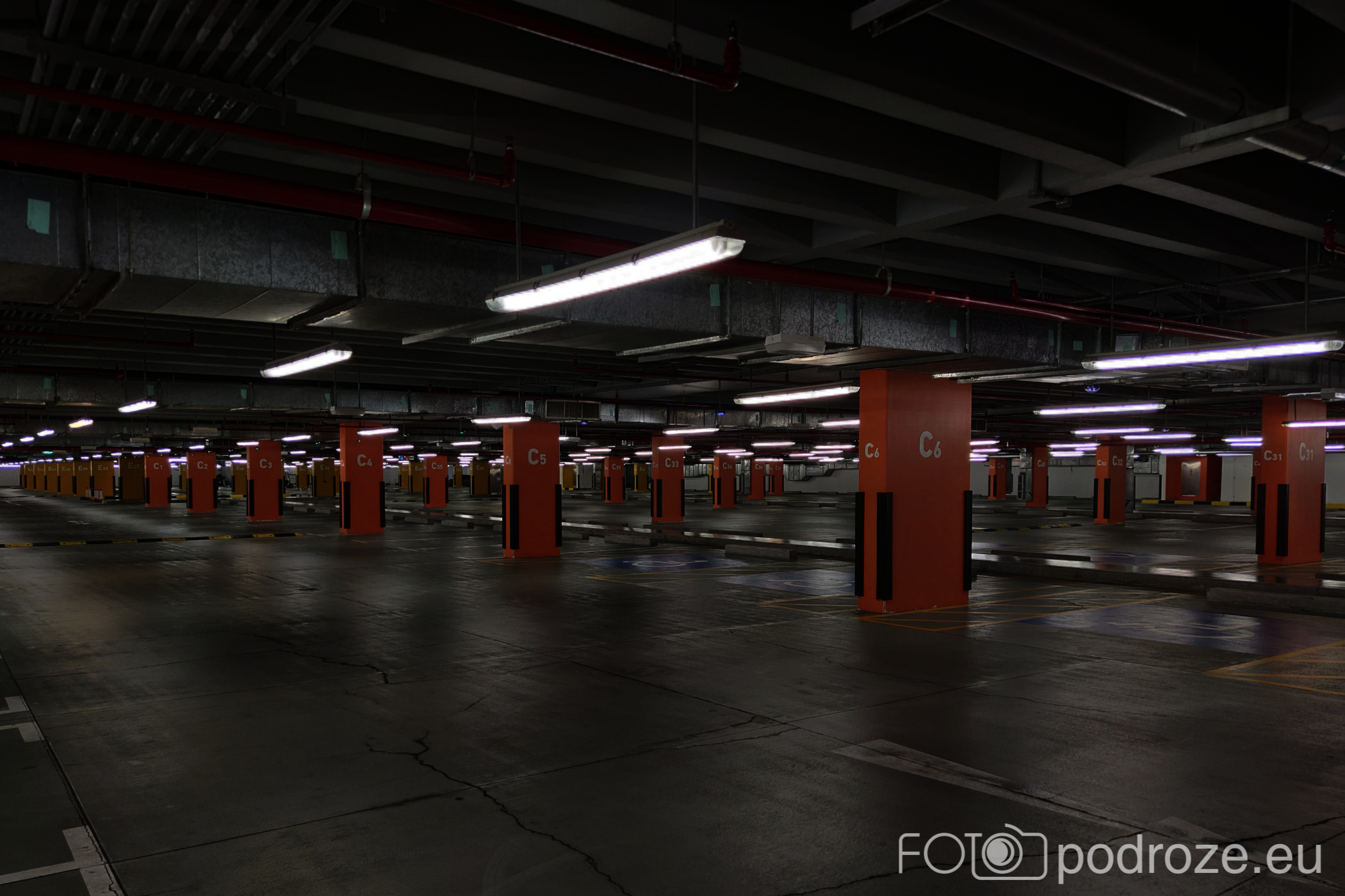 W podziemiach jest tu darmowy parking na ponad 11 tys. samochodów. Długie rampy ruchome wywożą zwiedzających na poziom zero skąd zaczynamy zwiedzanie poszczególnych obiektów.